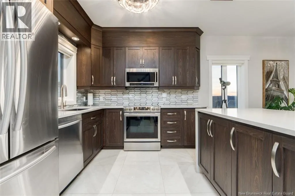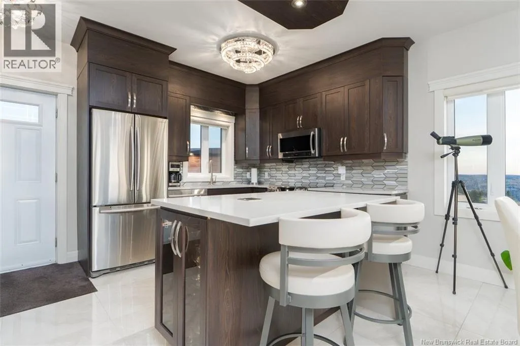 112, De La Falaise Street, Unit 201, Edmundston, NB, E3V 0C4 Welcome to 112 Falaise Street, Unit 201. Here is your chance to own this rare condo in the Le Montagnard development, located at the highest point in Edmundston, offering breathtaking views of the city, the Madawaska River valley, and the surrounding mountains. This luxurious open-concept condo features ceramic floors with radiant heating on the first floor, a kitchen with granite countertops and high-end appliances, a spacious living room with a custom marble TV wall, a balcony with exceptional views, and a half bathroom on the main level. On the second floor, the master bedroom includes a custom headboard and nightstands, as well as a balcony with a stunning view. There is a second bedroom with a custom Murphy bed, a home office, a laundry area, and a large, ultra-luxurious full bathroom. Outside, you will find a heated private garage measuring 11 x 23 along with shared common areas. Condo fees are $260.00 per month. Opportunity not to be missed! Call for more information. (id:27476)