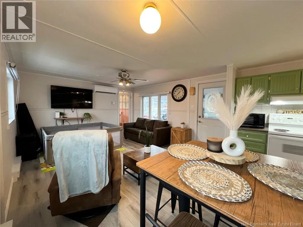 1, P'tiso Park Street, Edmundston, NB, E3V 3X7 Charming mini-home style property, tastefully decorated and ready to welcome its new owners! It offers two bedrooms, a full bathroom with laundry area, and an open-concept space combining the kitchen, dining room, and family room. Youll also enjoy a private entrance, a detached garage with an epoxy-coated floor, a paved front yard, a large patio perfect for beautiful summer days, and a fully fenced backyard providing great privacy. Call today to schedule a visit! Leased land $256.13/month (id:27476)