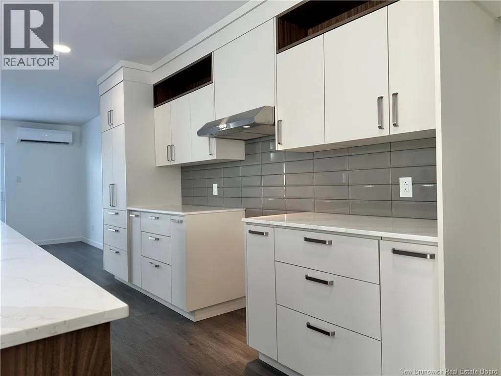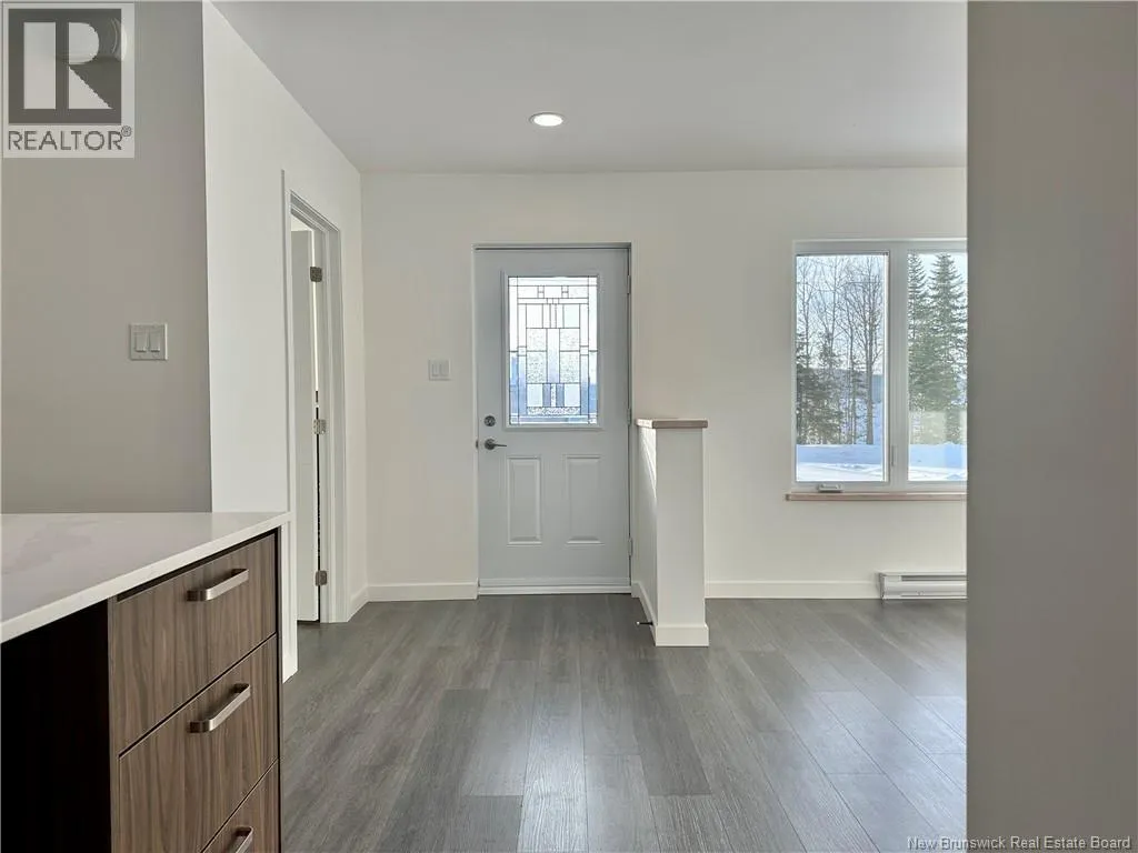 à partir du chemin Olivier Boucher, tournez à droite sur rue des cèdres, puis à gauche sur rue des ormes, puis à droite sur rue des mélèzes. La propriété est au bout de la rue à gauche. / From Chemin Olivier Boucher, turn right onto Rue des Cèdres, then left onto Rue des Ormes, then right onto Rue des Mélèzes. The property is at the end of the street on the left. Superbe duplex jumelé contemporain, construction 2024, situé dans le quartier prisé dEdmundston-Nord, à proximité des services, des sentiers et de la nature. Plain-pied clé en main offrant 2 grandes chambres et 1 salle de bain moderne avec planchers radiants. Aire de vie à aire ouverte, très lumineuse, avec cuisine élégante dotée de comptoirs en quartz et matériaux de qualité. Construction supérieure avec fondation en béton isolé (ICF), excellente insonorisation, isolation performante, thermopompe murale et échangeur d'air, parement extérieur en brique et Canexel. Aménagement extérieur avant complet. Garage simple attaché 14x24 isolé. Une propriété durable, confortable et haut de gamme dans un secteur recherché. Faites vite! ***TVH applicable au prix de vente*** ---- Beautiful contemporary semi-detached duplex, built in 2024, located in the sought-after Edmundston North area near services, trails, and nature. Turnkey single-level home offering 2 spacious bedrooms and 1 modern bathroom with radiant heated floors. Bright open-concept living space with an elegant kitchen featuring quartz countertops and quality finishes. Superior construction with ICF foundation, excellent soundproofing, high-performance insulation, wall-mounted heat pump, air exchanger, and brick and CanExel exterior. Attached and insulated single garage (14 x 24). A durable, comfortable, upscale property in a desirable neighborhood. Act fast! ***HST applicable to the sale price*** (id:27476)