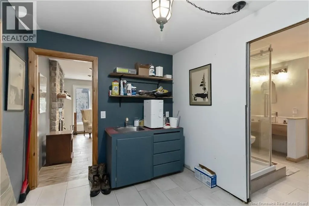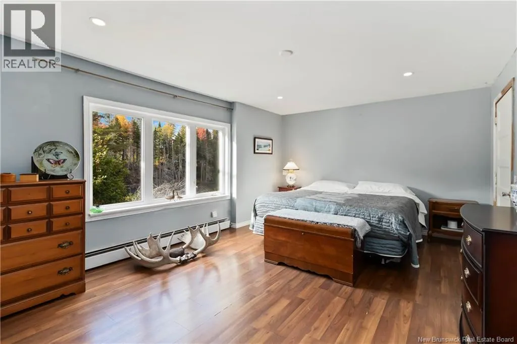 From Petitcodiac follow route 905 to route 895 Parkindale road, directly across form Pleasant Vale Road Elegant Lakeview Home with Expansive Living Spaces. Arrive in style as you pass through fenced frontage and stately stone columns and picket fence that frame the paved driveway leading to this spacious 3,360 sq. ft. home (28 ft x 60 ft). This property sits on a gently sloping lot that flows down to a serene brook-fed lake. With 1.8 acres of land, the property feels even larger thanks to wide side yards, & peaceful lake view. Inside, the single-car garage entry brings you into a practical space with laundry and a walk-in pantry, which seamlessly connects to the heart of the homea custom-built hickory kitchen. The kitchen features a massive 40 x 90 island with seating for four, white granite countertops, and excellent storage, making it both stylish and functional. The spacious dining and living rooms provide the perfect setting for entertaining or hosting large family gatherings. From here, step out through a 6 ft patio door onto the deck, complete with glass railings and a private view of the lake. The bright family room downstairs features tall windows, space for a pool table or bunkroom, and walk-out access. A high-efficiency wood-burning fireplace heats up to 2,500 sq. ft., creating a cozy retreat. (id:27476)