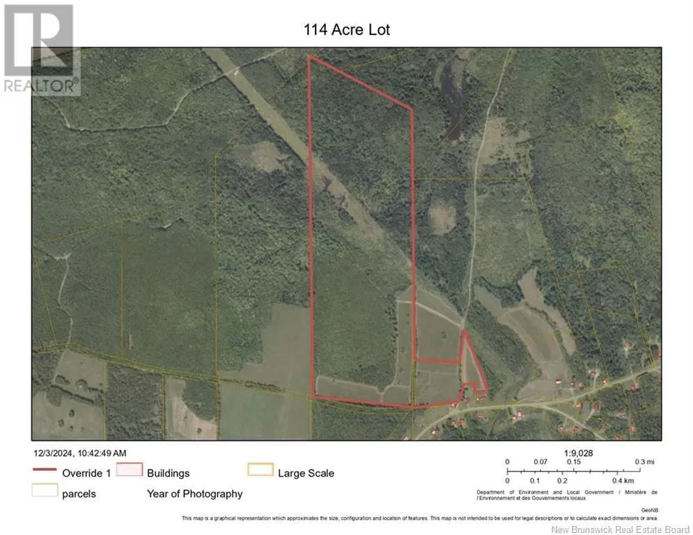 In Bristol, at the junction of Rte 105 take Rte 107 2.6 Km towards Juniper. Property is behind the Fielding Baptist Church with road frontage where the sign is posted. This listing presents roughly 114 acres of rural land, as per Service NB, located just minutes from Bristol. It's the perfect setting for a hobby farmer looking to build a home and outbuildings, aiming for self-sufficiency with open fields and ample woodland. The property includes three parcels of forest and open farmland. (id:27476)