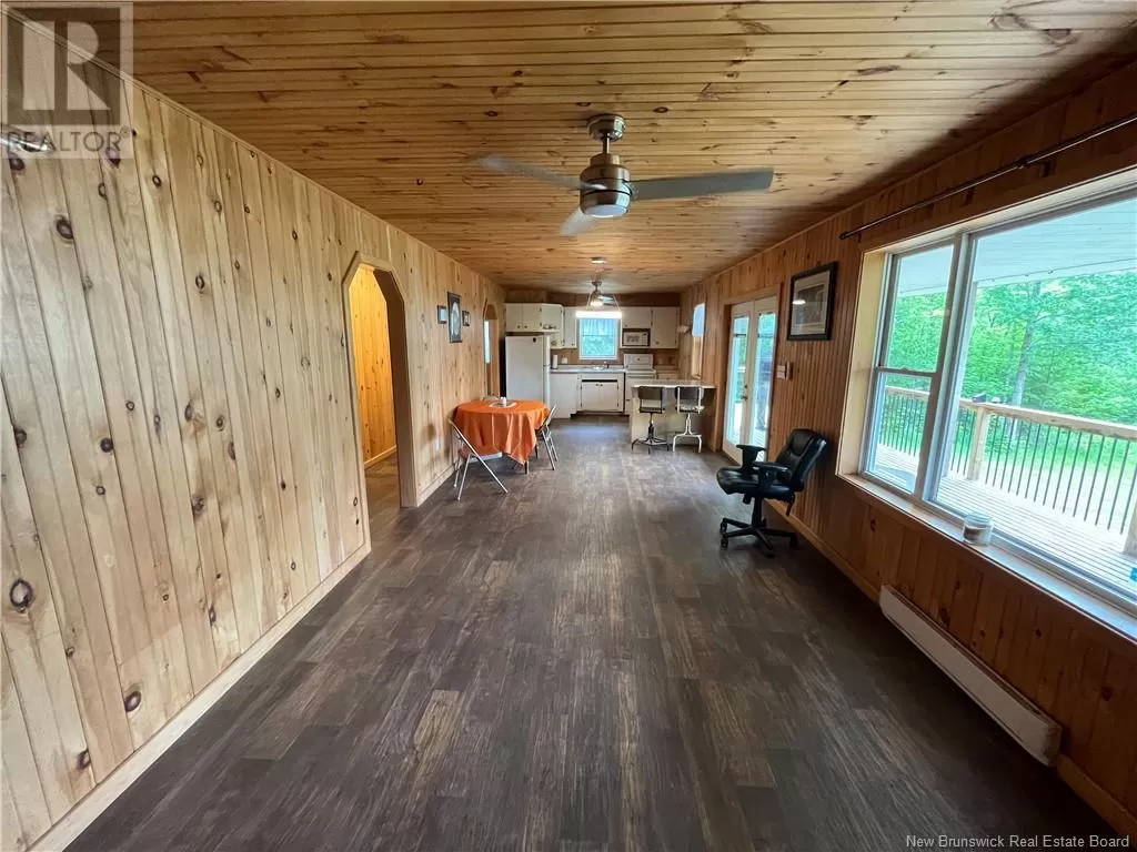 From Richmond Corner follow Rte 540 south for 33 km and turn left on Tana Lane. Continue for approximately 1 km. Property on the right. This waterfront home at first Eel River Lake in Maxwell can easily be a year-round home or serve as your seasonal dwelling. The electric baseboard heaters are Wi-Fi controlled so you can turn the heat on before you leave home. You will really enjoy the efficiency and convenience of an on demand electric hot water heater. The central living area is also serviced by a minisplit to provide year round comfort. Enjoy your open concept kitchen, dining and living with an awesome lake view It's finished in pine throughout the vinyl flooring. The full basement is walk out with a rec room of 370 Sq Ft. (Need ceiling& floor finished.) The workshop with a garage door on it could easily be converted to another bedroom or den with a patio door. This depends on your priorities! With over one and a half acres and 200 ft of waterfront in a private setting you'll work hard to find a property this unique. It has its own well and septic. The beautiful full front covered porch Is a definite highlight and will be the location you most appreciate for relaxing dining entertaining. A bonus are the trailer/RV electrical and water outlets on the front lawn near the waterfront. There has been some confusion about dimensions and we have done our best to correct these. The dimensions of the house are 24ft X 36Ft. The footprint of the home is 864Ft on the main level with 686 sq ft finished. Total useable sq footage over 1000 sq with 370 Sq Ft rec room on lower level. (id:27476)