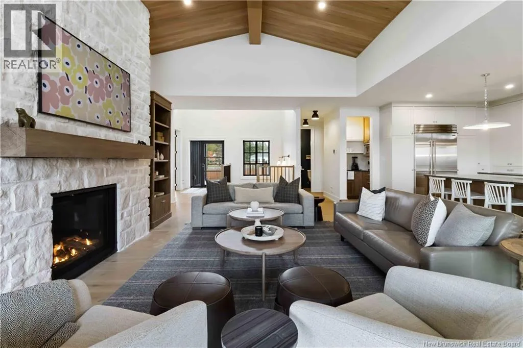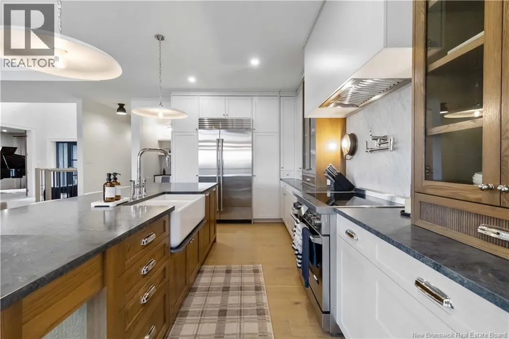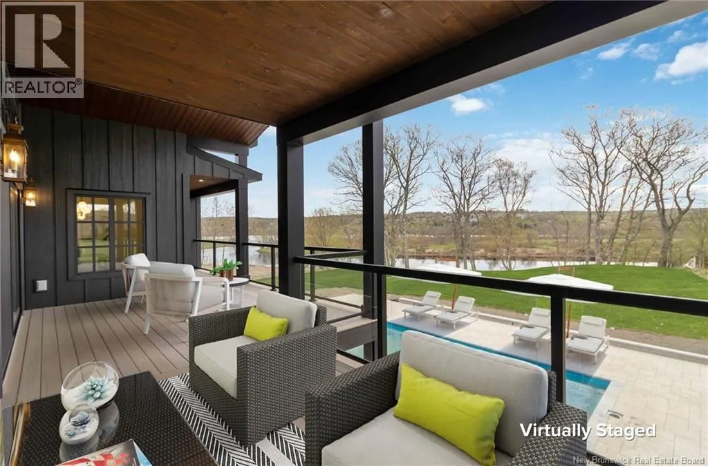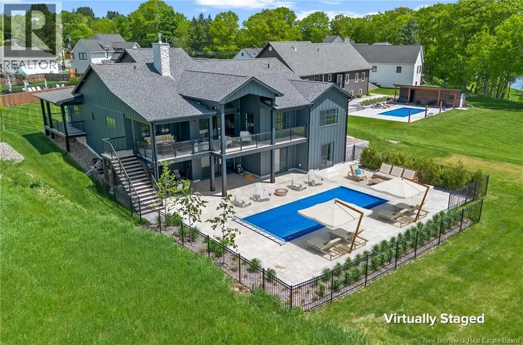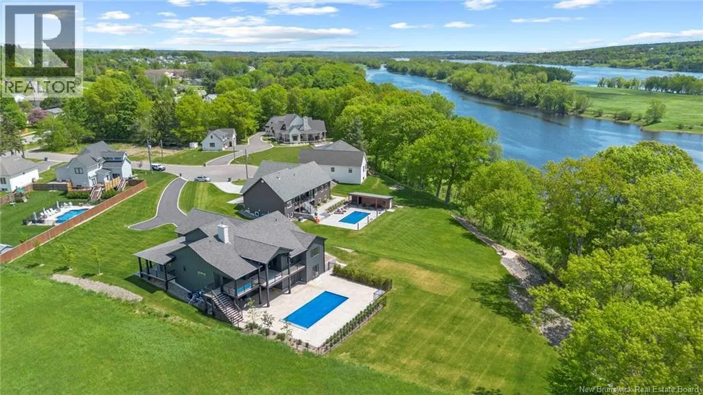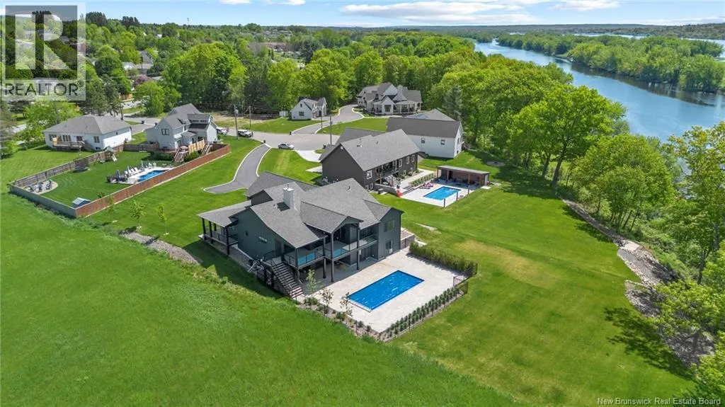 The thing about luxury isits not just about the flashiest finish or the biggest square footage. Its about what makes your shoulders drop when you walk through the door. Quality, intention and the ease that comes with a home that's built the way it should be. Thoughtfully designed & built by Holland Homes, Frederictons premier luxury builder's flagship CHMA award-winning home sitting on 1.2 acres of city waterfront. Striking exterior w/ black engineered wood siding, 3-bay garage & paver stone parking. Inside, timeless modern design meets meticulous craftsmanship; Soaring foyer leads to den w/wooden 8ft French doors, and stunning cathedral-style Great Room w/ oak plank ceiling & stone-faced gas FP. Queenstown kitchen w/ soapstone countertops, & dining which opens to covered outdoor living space facing the Southwest sunsets. Owners suite w/marble walk-in shower, custom closet cabinetry & direct access to the mudroom & laundry, and a private guest suite w/full ensuite bath. Lower level is equally impressive, walking out to the inground pool & fully finished w/ spacious entertainment room, wet bar, den w/ custom library wall, home gym & soundproofed music room. Plus, a separate guest wing incl two bdrms - both with patio doors to the walkout terrace - & full bath. With direct access to the trail system, a private path leading to the shoreline where your future boat docks just steps from your door, this 4,868 sqft home is more than a dream; its a rare opportunity to live it. (id:27476)
