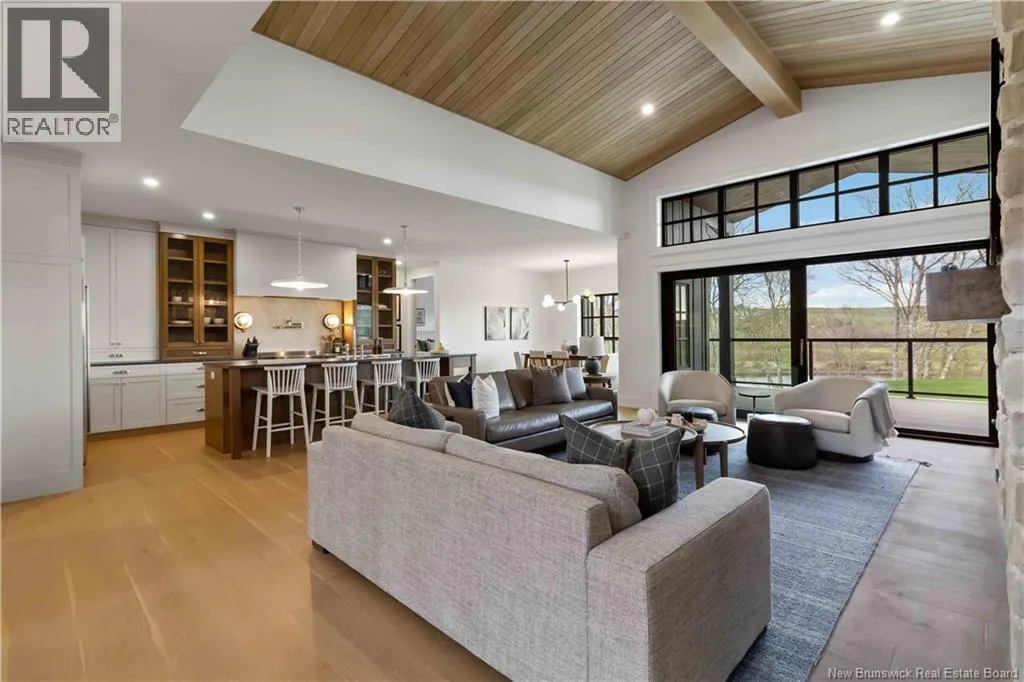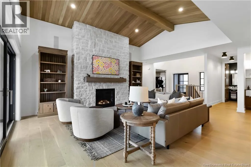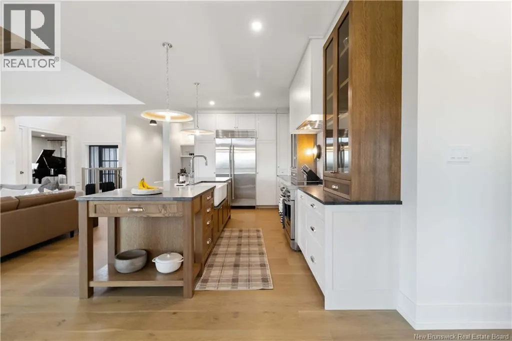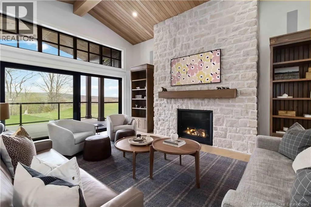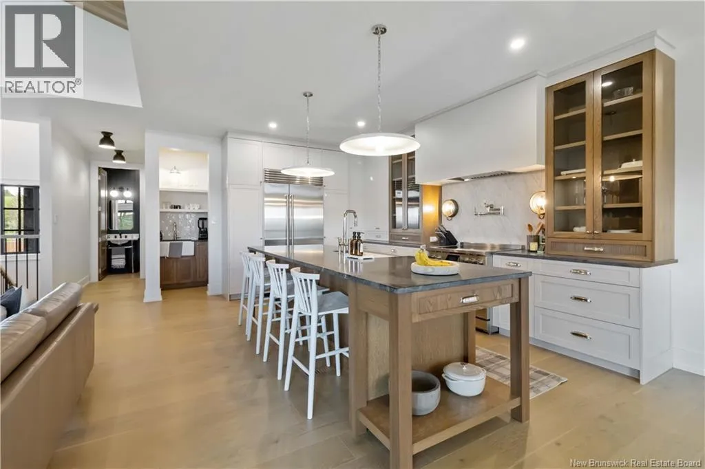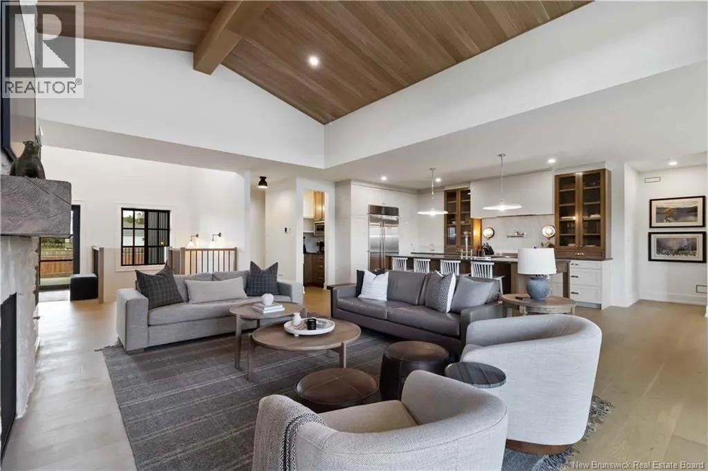 The thing about luxury isits not just about the flashiest finish or the biggest square footage. Its about what makes your shoulders drop when you walk through the door. Quality, intention and the ease that comes with a home that's built the way it should be. Thoughtfully designed & built by Holland Homes, Frederictons premier luxury builder's flagship CHMA award-winning home sitting on 1.2 acres of city waterfront. Striking exterior w/ black engineered wood siding, 3-bay garage & paver stone parking. Inside, timeless modern design meets meticulous craftsmanship; Soaring foyer leads to den w/wooden 8ft French doors, and stunning cathedral-style Great Room w/ oak plank ceiling & stone-faced gas FP. Queenstown kitchen w/ soapstone countertops, & dining which opens to covered outdoor living space facing the Southwest sunsets. Owners suite w/marble walk-in shower, custom closet cabinetry & direct access to the mudroom & laundry, and a private guest suite w/full ensuite bath. Lower level is equally impressive, walking out to the inground pool & fully finished w/ spacious entertainment room, wet bar, den w/ custom library wall, home gym & soundproofed music room. Plus, a separate guest wing incl two bdrms - both with patio doors to the walkout terrace - & full bath. With direct access to the trail system, a private path leading to the shoreline where your future boat docks just steps from your door, this 4,868 sqft home is more than a dream; its a rare opportunity to live it. (id:27476)