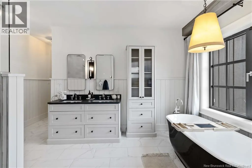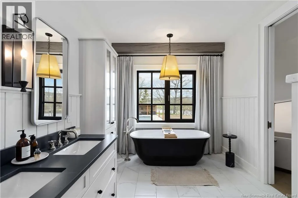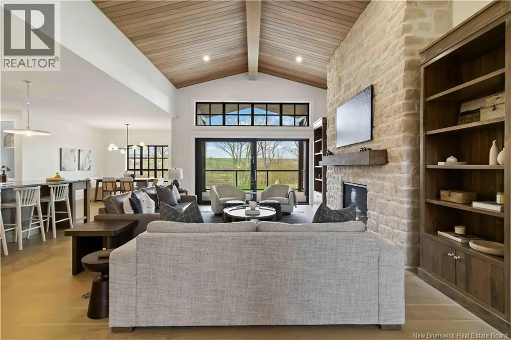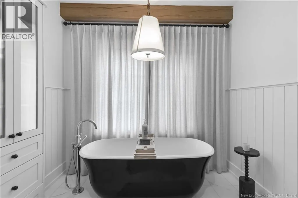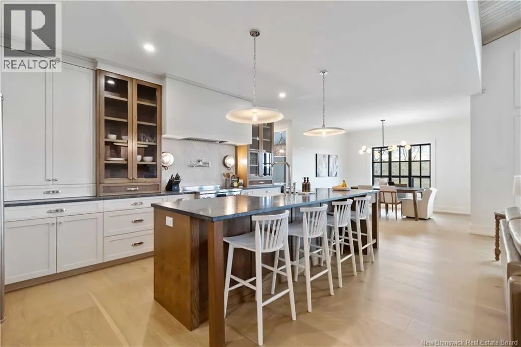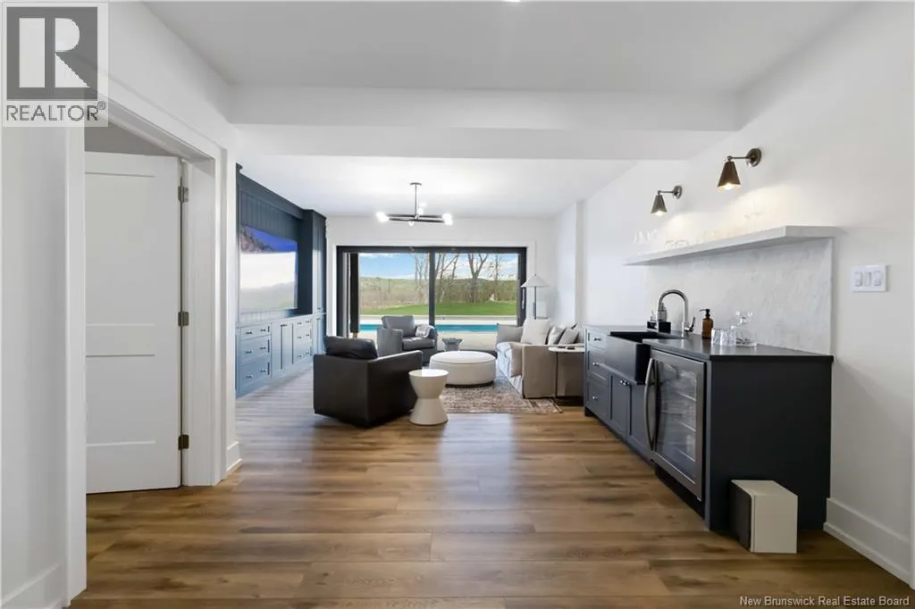 The thing about luxury isits not just about the flashiest finish or the biggest square footage. Its about what makes your shoulders drop when you walk through the door. Quality, intention and the ease that comes with a home that's built the way it should be. Thoughtfully designed & built by Holland Homes, Frederictons premier luxury builder's flagship CHMA award-winning home sitting on 1.2 acres of city waterfront. Striking exterior w/ black engineered wood siding, 3-bay garage & paver stone parking. Inside, timeless modern design meets meticulous craftsmanship; Soaring foyer leads to den w/wooden 8ft French doors, and stunning cathedral-style Great Room w/ oak plank ceiling & stone-faced gas FP. Queenstown kitchen w/ soapstone countertops, & dining which opens to covered outdoor living space facing the Southwest sunsets. Owners suite w/marble walk-in shower, custom closet cabinetry & direct access to the mudroom & laundry, and a private guest suite w/full ensuite bath. Lower level is equally impressive, walking out to the inground pool & fully finished w/ spacious entertainment room, wet bar, den w/ custom library wall, home gym & soundproofed music room. Plus, a separate guest wing incl two bdrms - both with patio doors to the walkout terrace - & full bath. With direct access to the trail system, a private path leading to the shoreline where your future boat docks just steps from your door, this 4,868 sqft home is more than a dream; its a rare opportunity to live it. (id:27476)
