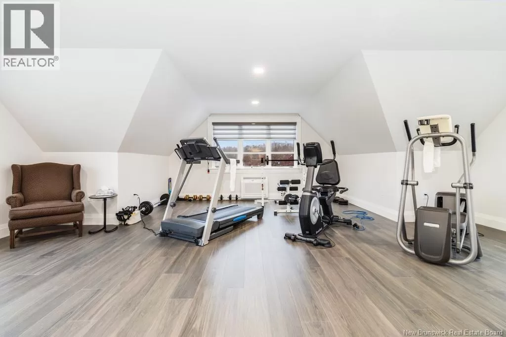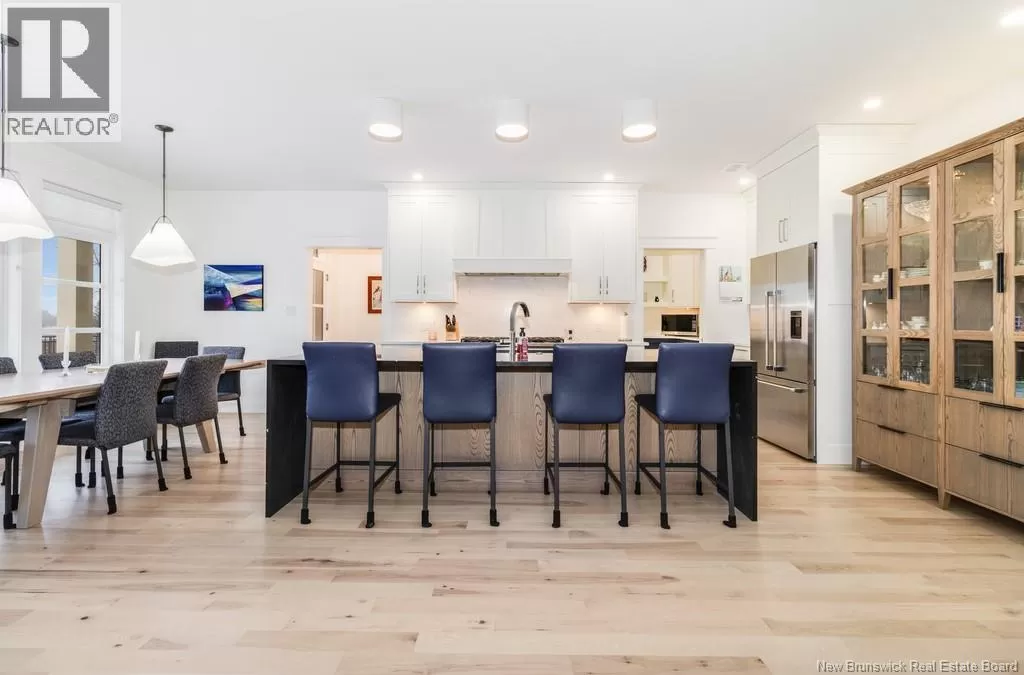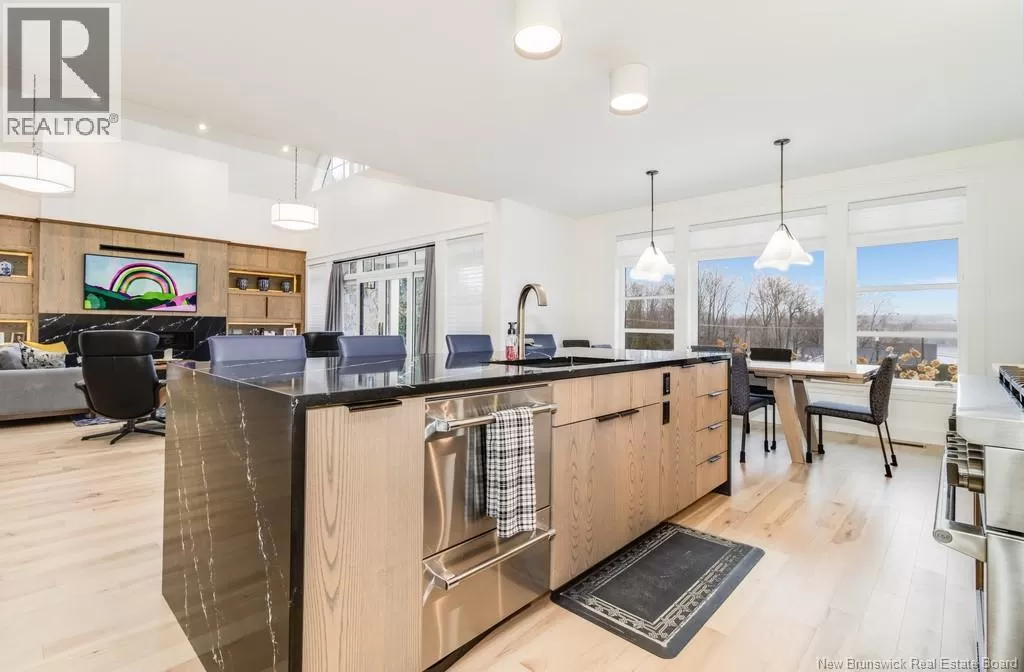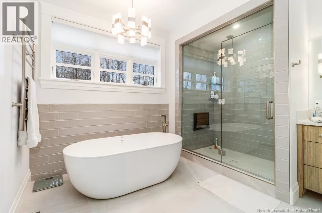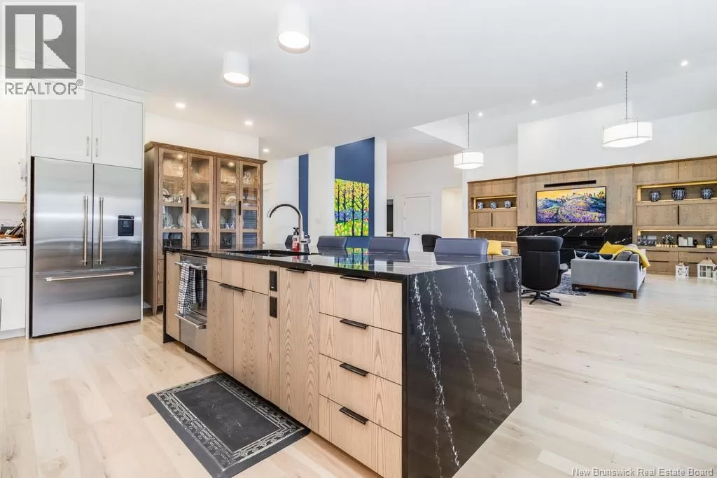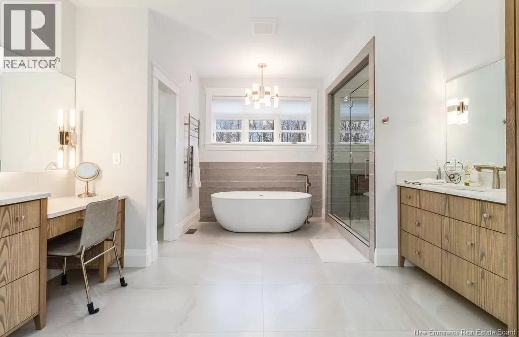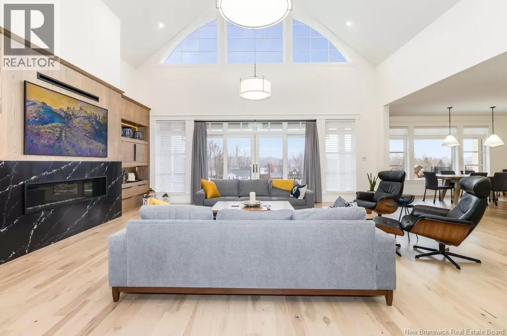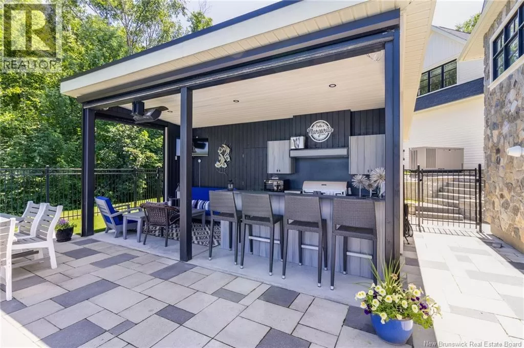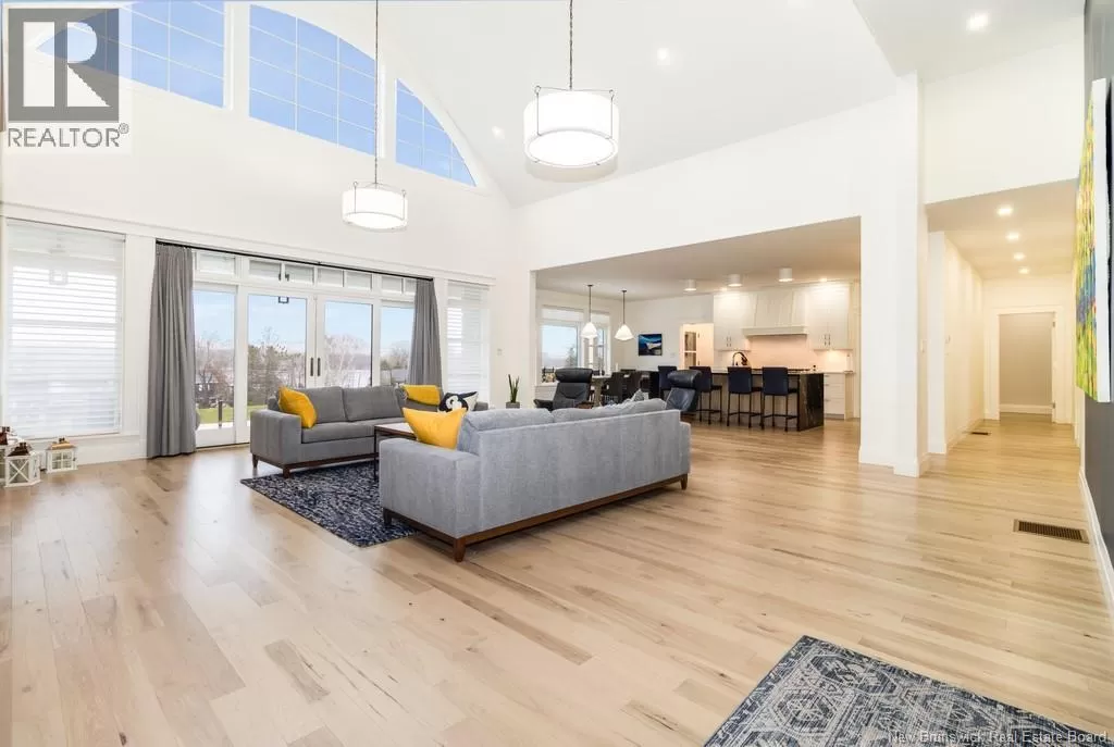 Woodstock Rd just past Garden Creek School on the left side An exquisitely crafted, custom-built home situated on 1.5 acres in Fredericton South. No detail has been spared in the conception and construction of this remarkable estate-style property with over 5,300 sqft of finished space. The open-concept main living area features a spacious living room adorned with bespoke built-in cabinetry,23 foot ceilings, gas fireplace, and patio doors that lead to an outdoor sitting area offering serene river and overland views. The gourmet kitchen showcases a generous island, a eight-burner gas stove, dual dishwashers and a butlers pantry. The primary suite is a sanctuary of luxury featuring cathedral ceilings, a sprawling 15x18 walk-in closet and a spa-inspired bathroom featuring dual vanities, a custom-tiled shower and heated floors. At the opposite end of the home are two additional well-appointed bedrooms each with its own ensuite bath. A versatile fourth bedroom, currently utilized as a media room, and a large office complete this level. Staircase accessed from the mudroom, leads to the gym area and ½ bath located above the oversized 3 car garage. The lower level is partially finished including a 4th full bath, a spacious family room, and a children's secret room featuring a ball pit and climbing ladder. The outdoor amenities are equally impressive, with an exquisite in-ground pool, an expansive pool house complete with a bar and bathroom, and even an artificial turf putting green the perfect complement to this stunning estate. (id:27476)