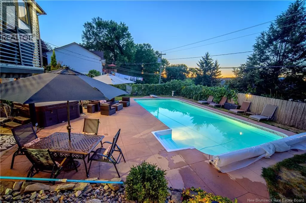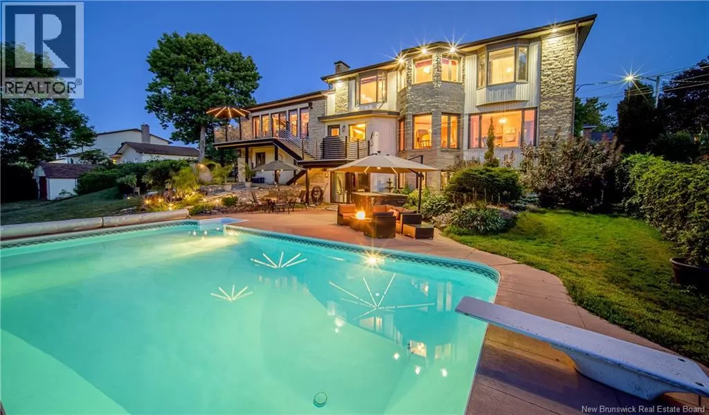 Woodstock Road to Rosewood to Talisman Welcome to this Mediterranean-inspired masterpiece offering over 4,000 sq. ft. of refined living in one of Frederictons most sought-after southside neighborhoodsjust minutes from both uptown and downtown conveniences. From the moment you arrive, the architectural detail and timeless design set this home apart. Inside, youll find 4 spacious bedrooms and 3.5 bathrooms, including a private granny suite with a walk-out on the lower levelperfect for extended family or guests. The heart of the home offers bright living spaces designed for both elegance and comfort. A show-stopping loft-style room overlooks the double lot and the resort-style backyard, where an expansive inground pool, hot tub, and new Duradek decking awaits. The fully fenced yard provides both privacy and room to play, while the paved driveway, built-in garage, and detailed finishes throughout add to the homes appeal. A brand new geothermal heat pump efficiently heats and cools the home! Whether entertaining poolside or enjoying a quiet evening in, this property strikes the perfect balance of function, style, and sophistication. A rare opportunity to own a Mediterranean gem in a prime Fredericton location (id:27476)