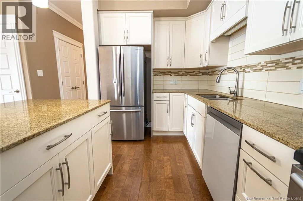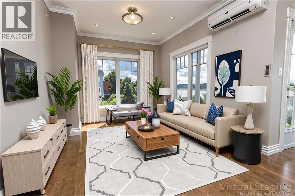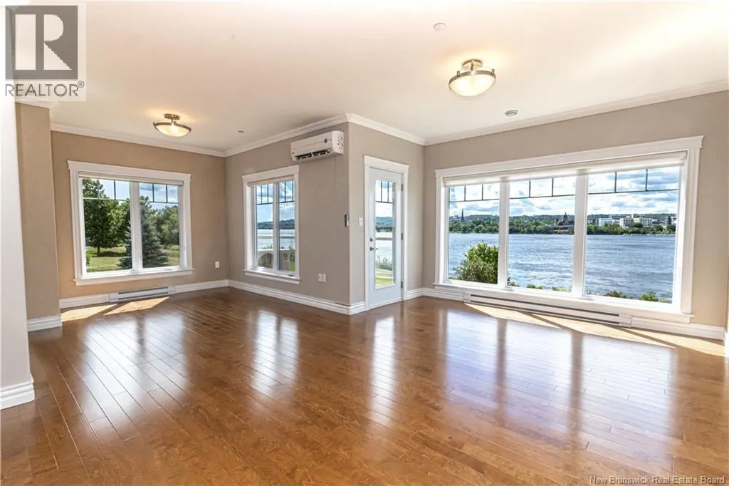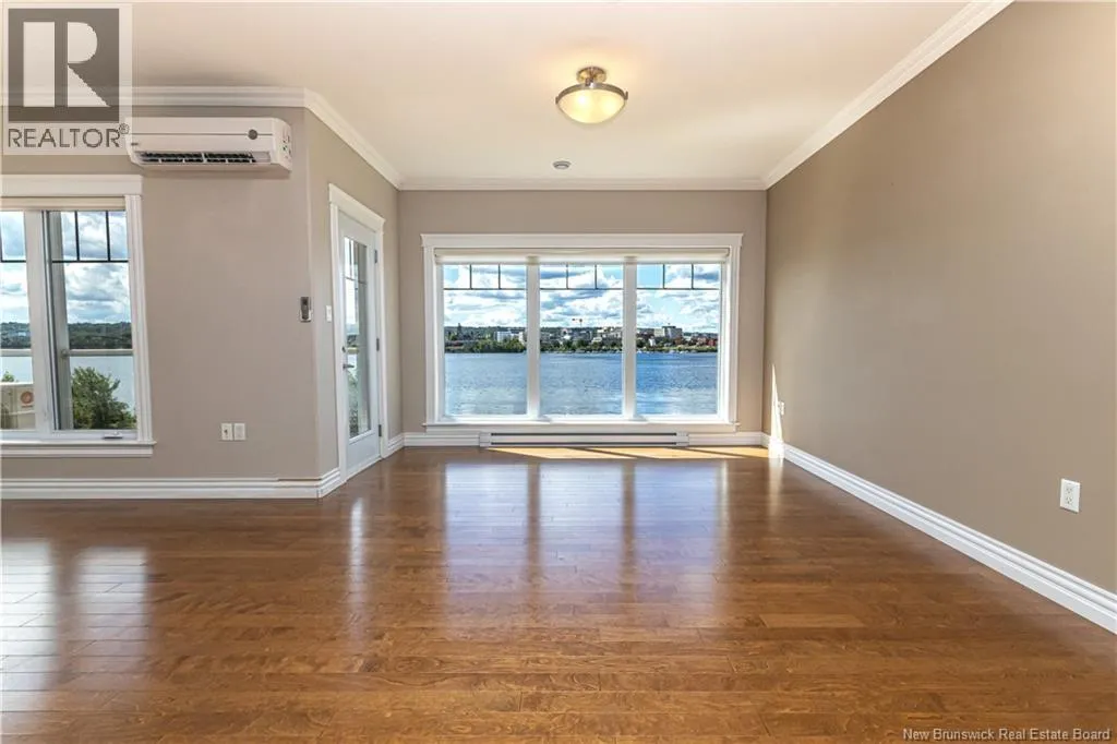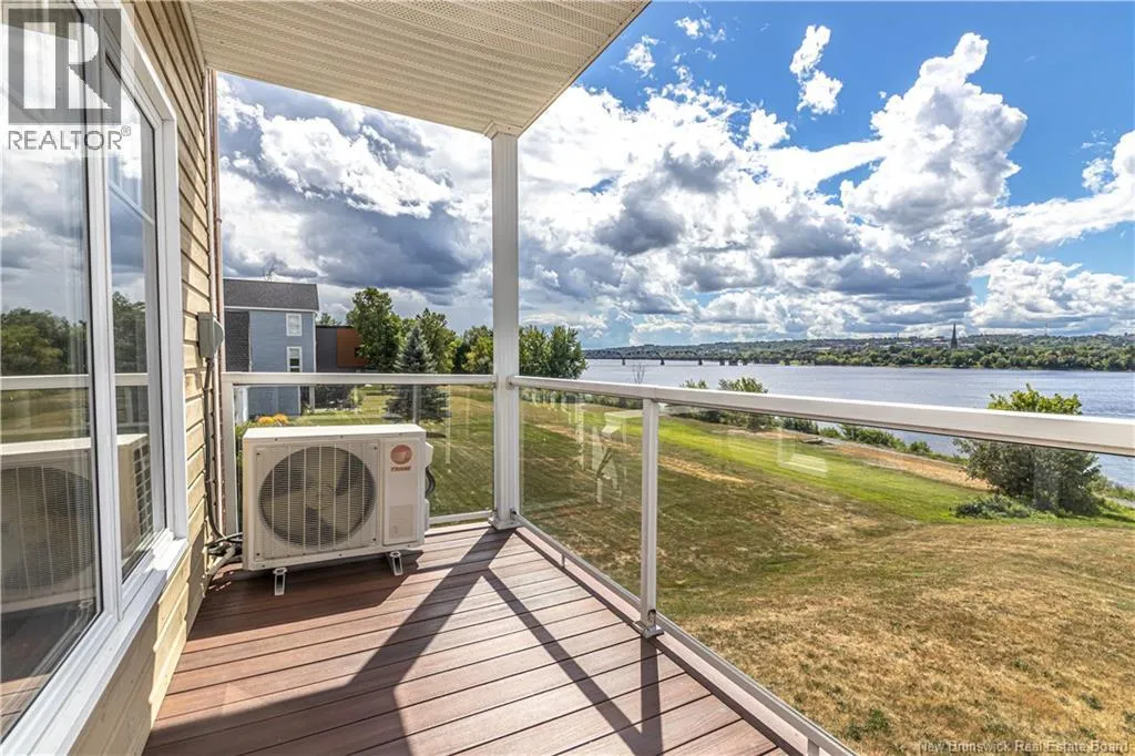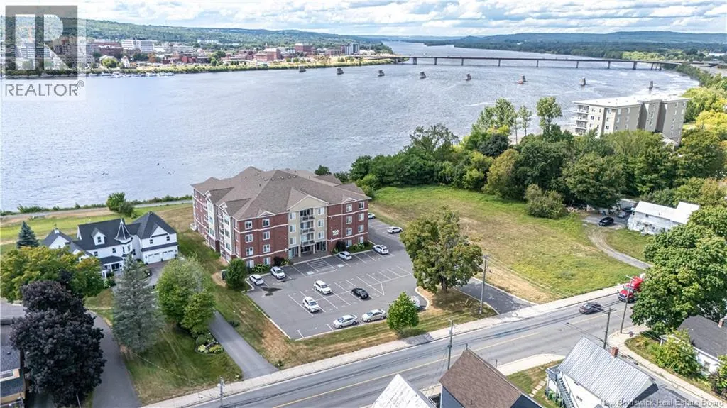 Main Street to Union Street Experience modern condo living with scenic river views in this beautifully kept 2nd-floor unit! Far from the typical condo layout, this home stands out with thoughtful upgrades, quality finishes, and a warm, inviting design. Enter through the inviting tiled foyer, complete with two sets of closet space. Just beyond, youll be greeted by an open-concept main living area that is highlighted by a ductless split heat pump and expansive windows offering picturesque views of the river and downtown Fredericton. The stylish kitchen is designed to impress, offering modern white cabinetry, tiled backsplash, striking granite countertops, and a spacious center island thats perfect for meal prep or casual dining. With ample storage and a functional layout, its a space that blends everyday convenience with a touch of luxury. Retreat to the private primary suite, offering a walk-in closet and a full ensuite bath with tiled walk-in shower. A second bedroom, an additional full bathroom, and a laundry/storage room complete this amazing home. Building amenities include a fitness center and a guest suite when extra space is needed for friends and family. Please note there is a $750 move-in fee, payable by the purchaser to the condo board upon closing. This condo is a true must-seeschedule your private showing today! (id:27476)
