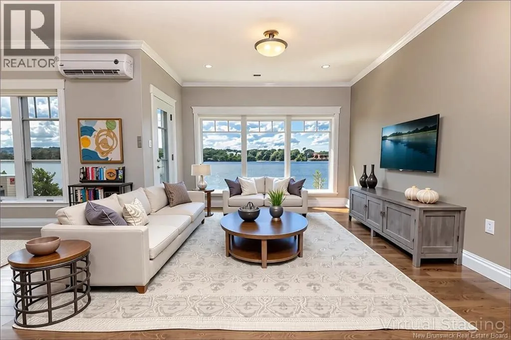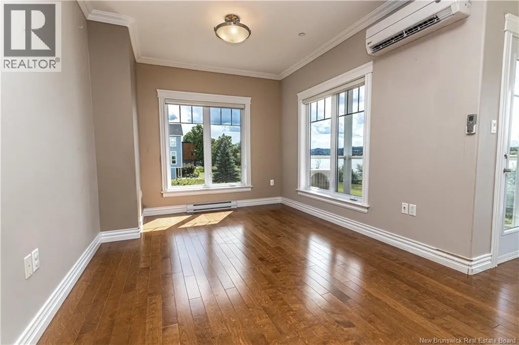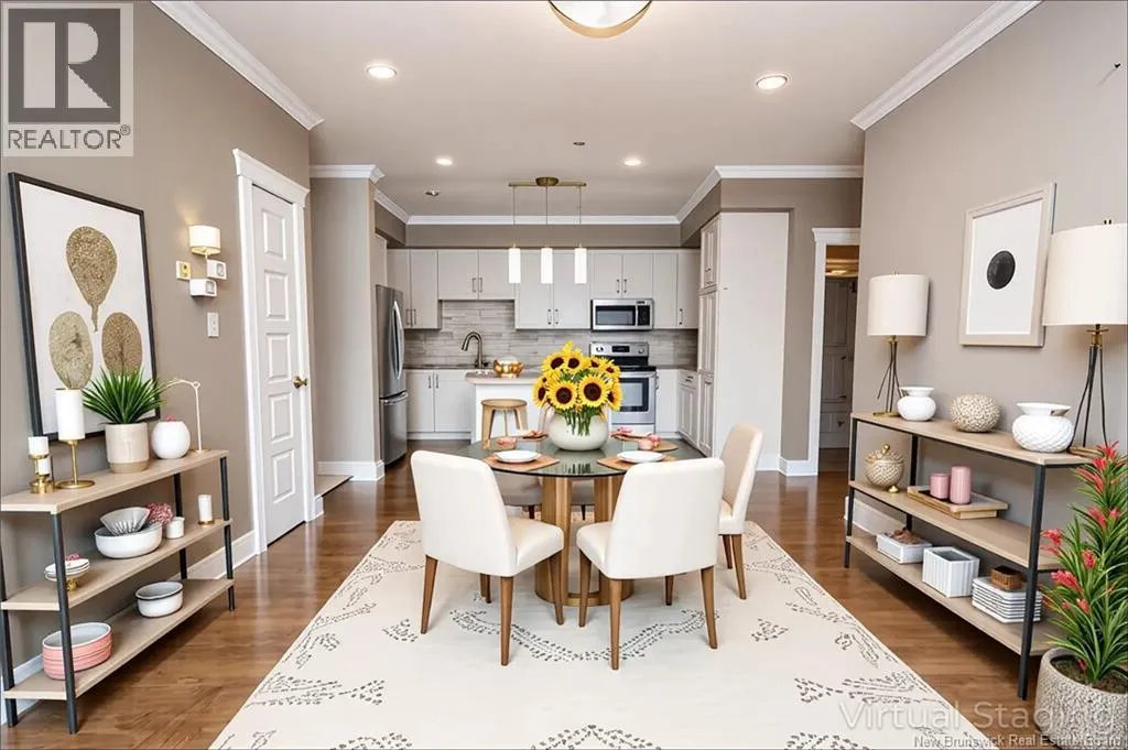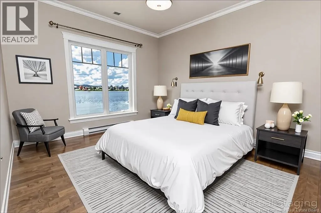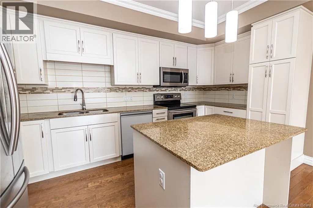 Main Street to Union Street Experience modern condo living with scenic river views in this beautifully kept 2nd-floor unit! Far from the typical condo layout, this home stands out with thoughtful upgrades, quality finishes, and a warm, inviting design. Enter through the inviting tiled foyer, complete with two sets of closet space. Just beyond, youll be greeted by an open-concept main living area that is highlighted by a ductless split heat pump and expansive windows offering picturesque views of the river and downtown Fredericton. The stylish kitchen is designed to impress, offering modern white cabinetry, tiled backsplash, striking granite countertops, and a spacious center island thats perfect for meal prep or casual dining. With ample storage and a functional layout, its a space that blends everyday convenience with a touch of luxury. Retreat to the private primary suite, offering a walk-in closet and a full ensuite bath with tiled walk-in shower. A second bedroom, an additional full bathroom, and a laundry/storage room complete this amazing home. Building amenities include a fitness center and a guest suite when extra space is needed for friends and family. Please note there is a $750 move-in fee, payable by the purchaser to the condo board upon closing. This condo is a true must-seeschedule your private showing today! (id:27476)