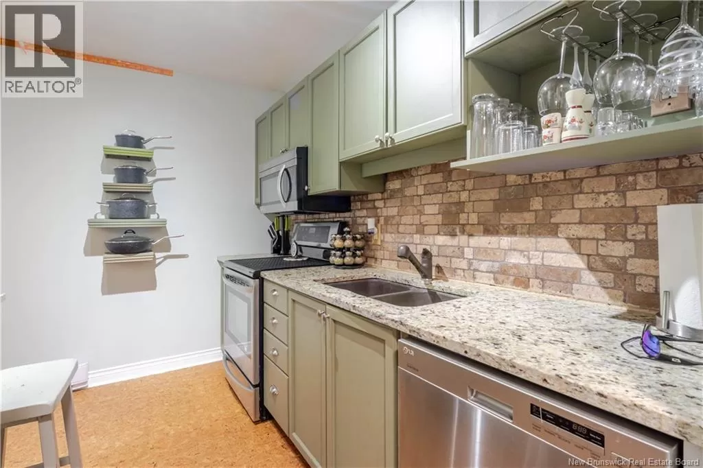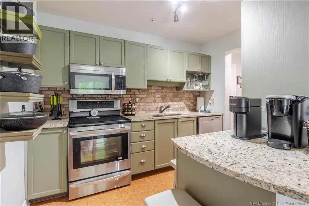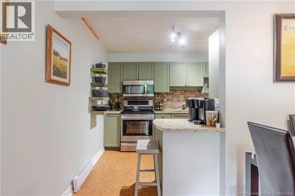 Corner of Hanwell Road and Waggoners Lane We call this the MC of Condominiums. Why? You are minutes from everything. Enjoy the convenience of living near the Superstore, restaurants, Odell Park, city walking trail and more! This unit is located on the third floor a step from the elevator, your balcony faces Odell Park. There are hardwood floors throughout, the modern kitchen has cork flooring, plenty of cupboards and granite countertops. Livingroom with new sliding door to balcony, renovated bathroom with walk-in shower and heated floors. This unit has instant hot water on demand, a heat pump, and 2 wall-efficient radiant heaters. The building offers a large social room with kitchen and a gym, and this building is also pet friendly (pets max 25 lbs). This building also is of concrete construction, ensuring quiet and sound-rated units, as well offers a bike and tires communal storage shed onsite, lots of visitor parking, 2 EV charging stations, and car plug-in stations for each unit. There is a one-time contingency fee of $750 due from buyers on close, condo fee includes snow removal, lawn care and water bill the condo corporation is healthy with a strong, well-invested reserve fund, providing peace of mind for future residents This condo unit is a must see. (id:27476)