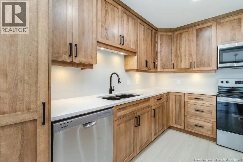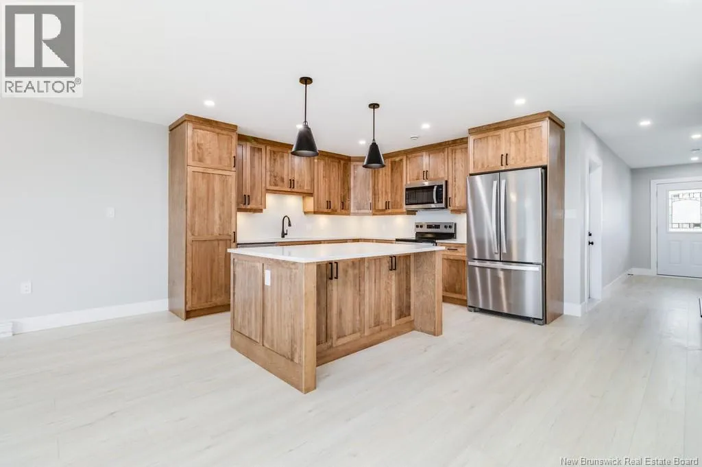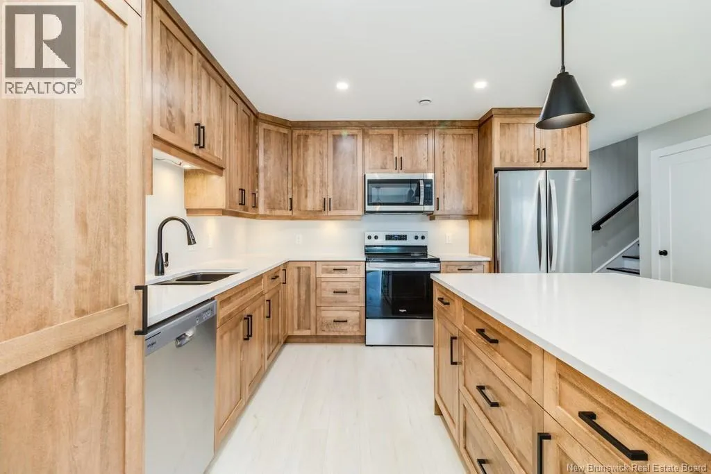Brookside Dr to Glennorth Street. This brand new semi-detached two storey home is beautiful, offering exceptional space and smart design, perfect for todays family living. With over 2,000 sq. ft. of finished space, this home is almost double in size of nearby semis. Step inside to a large foyer with a coat closet and a convenient half bath, ideal for guests or quick family use. The main floor features a bright and open kitchen/dining/living room , complete with a ductless heat pump for year-round comfort. The kitchen is a standout with loads of custom cabinetry, under-cabinet lighting, quartz countertops, a pantry with pull-out drawers and brand-new stainless appliances. Theres plenty of space for a dining table and the patio doors lead to a deck, great for relaxing in the sun. Upstairs, youll find three generously sized bedrooms. The primary suite includes two walk-in closets and a private ensuite bath with a double vanity, custom tile corner shower, and a soaker tub, perfect for ending the day on a relaxing note. The laundry area is also upstairs, complete with overhead cabinets and a stainless sink for added convenience. A full main bath with a tub/shower combo serves the other bedrooms. The unfinished basement offers future potential, already roughed-in for a fourth bathroom and featuring a code-compliant window for a fourth bedroom, lots of room for a family room or rec area. Close to all Northside amenities including West Hills Golf Course. Landscaping and paved driveway INCLUDED in the price. (id:27476)