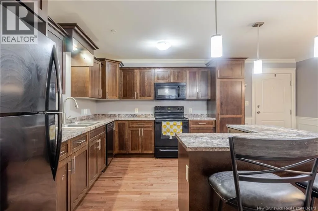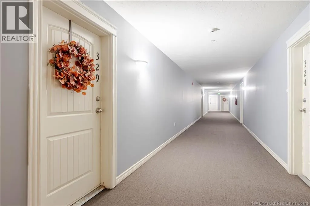 Bishop Drive to Lian Street, to civic #155 Welcome to Greystone Estates Unit #329! This beautifully maintained, south-facing 3rd-floor condo offers over 1,335 sq. ft. of bright, open-concept living space with gleaming hardwood and ceramic floors throughout. The modern kitchen features ample cabinetry, abundant counter space, and an oversized centre island and breakfast barideal for cooking or entertaining. The spacious living room is flooded with natural light and opens to a private patio with an additional screen door for fresh air and added light. Down the hall, youll find two generous bedrooms, a large bathroom with a soaker tub and separate shower, and a convenient in-unit storage/laundry room. The primary bedroom includes a walk-in closet, and comfort is ensured year-round with a ductless mini-split heat pump. Additional highlights include underground parking, a main-floor social room, guest suite rental ($50/night), and access to nearby walking trails that will eventually connect to the citys trail system. Ideally located just minutes from shopping, schools, hospitals, and universities. Condo fees: $425/month; $500 one-time contingency fee due at closing. Average NB Power: $160 /month. Quick closing available, come view it today! (id:27476)