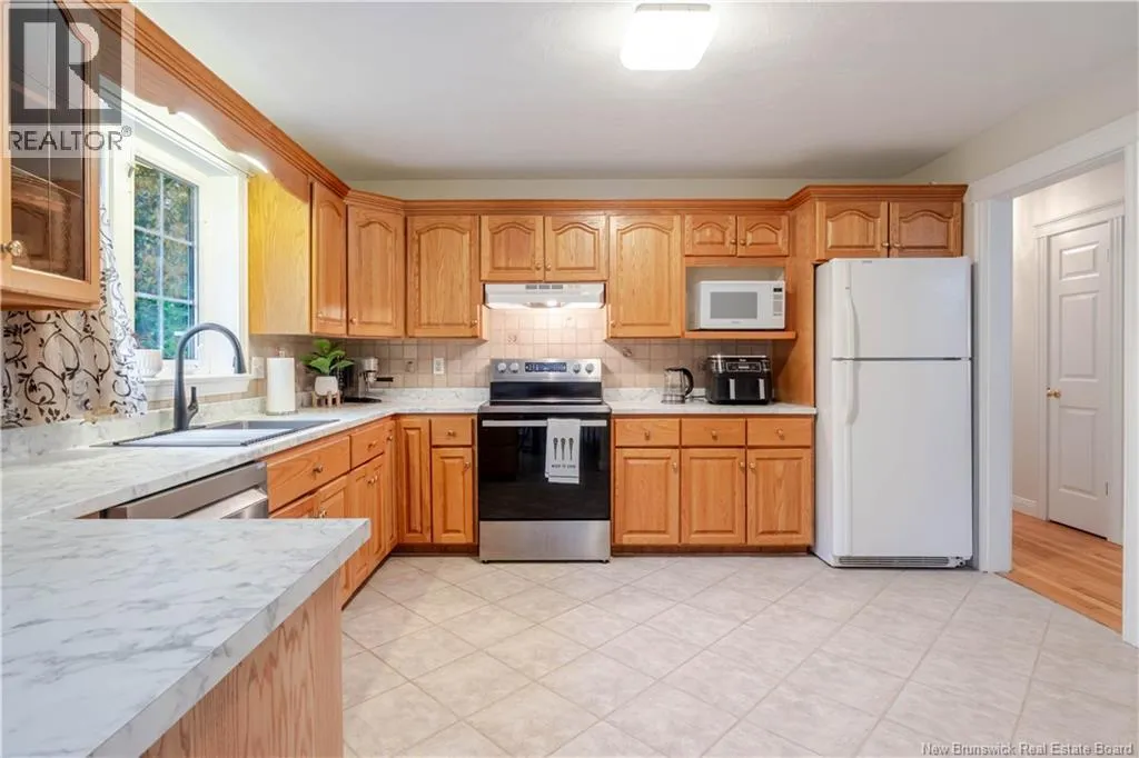Maple Street to Douglas Avenue to civic #308 Welcome to Douglas Avenue, where comfort meets heart. There's something timeless about this home. The grand window pours sunlight through the living room in golden waves, painting warmth across every corner. The soft oak floors beneath your feet and the quiet calm that greets you as you step through the brick-lined entryway entryway. This property is in close vicinity of Park Street Elementary and Nashwaaksis Middle School. Its full brick façade glows beneath the afternoon sun, the paved drive leading to a pillared canopy doorway that feels like a warm invitation. Upstairs, an open, airy layout invites laughter around the kitchen table and quiet dinners in the dining room, where garden doors open to a wide deck overlooking a backyard with apple & cherry trees blooming in the warmer months. Spacious master & two generous bedrooms promise rest and renewal. The lower level opens a world of possibilities with a cozy family room for movie nights, a quiet office or fourth bedroom, or perhaps a place for loved ones to stay, close yet independent, and a second bathroom ideal for extended family. The oversized garage adds valuable storage space & convenient access to the house. With new roof shingles (2021), a dishwasher (2023), a ductless heat pump (2025), and a stove (2025), this home has been gently updated, lovingly maintained, and deeply cherished. It's more than a house; it's a story waiting for its next chapter. (id:27476)