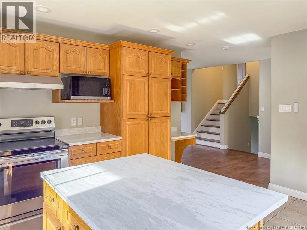 Lincoln Rd to Aquarius St Picture this: you get to wake up in your updated and spacious home each day - centrally located between city amenities and the town of Oromocto. You can enjoy the comfort and efficiency of a forced air heat pump, or the coziness of the propane fireplace. The sunsets from your large back deck are beautiful. Meanwhile, your familys vehicles stay out of the elements in your oversized 2-car garage. In sum life is good at 65 Aquarius Street! Situated on Frederictons southside, this 3-level split offers curb appeal, a classic floor plan, and many updated finishes. The main floor hosts an eat-in kitchen with handsome wood cabinetry, stylish quartz counters, and a large island to add to the great workspace. Patio doors lead to the back deck for easy outdoor dining. A spacious living room with propane fireplace follows. Next, head upstairs to find the homes 3 bedrooms and an updated bathroom with a beautiful double vanity. The primary bedroom offers a walk-in closet. The finished lower level offers a family room, a potential 4th bedroom (non-egress windows), a second full bath with a new shower, plus a laundry room. Additionally, there is plenty of storage in the crawl space. Further features include the remote blinds on most windows. 65 Aquarius Street is minutes from the citys recreational opportunities, plus downtown dining and shopping. For military families, CFB Gagetown is nearby. This lovely home is ready for new owners - could that be you? (id:27476)