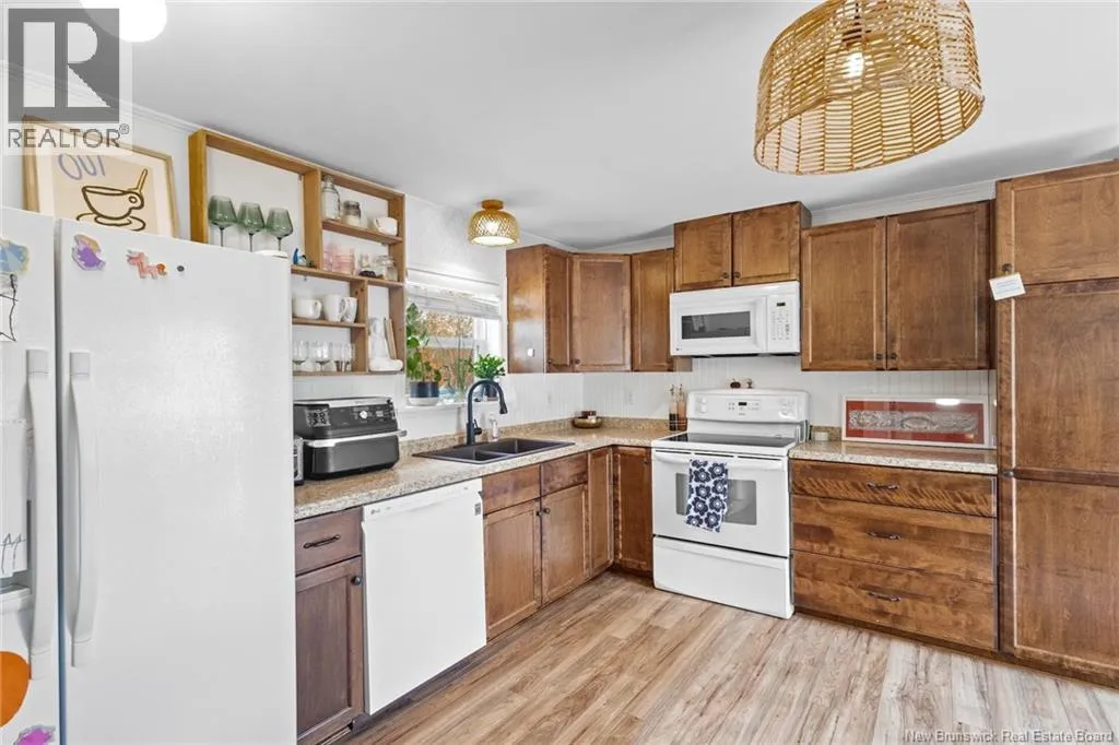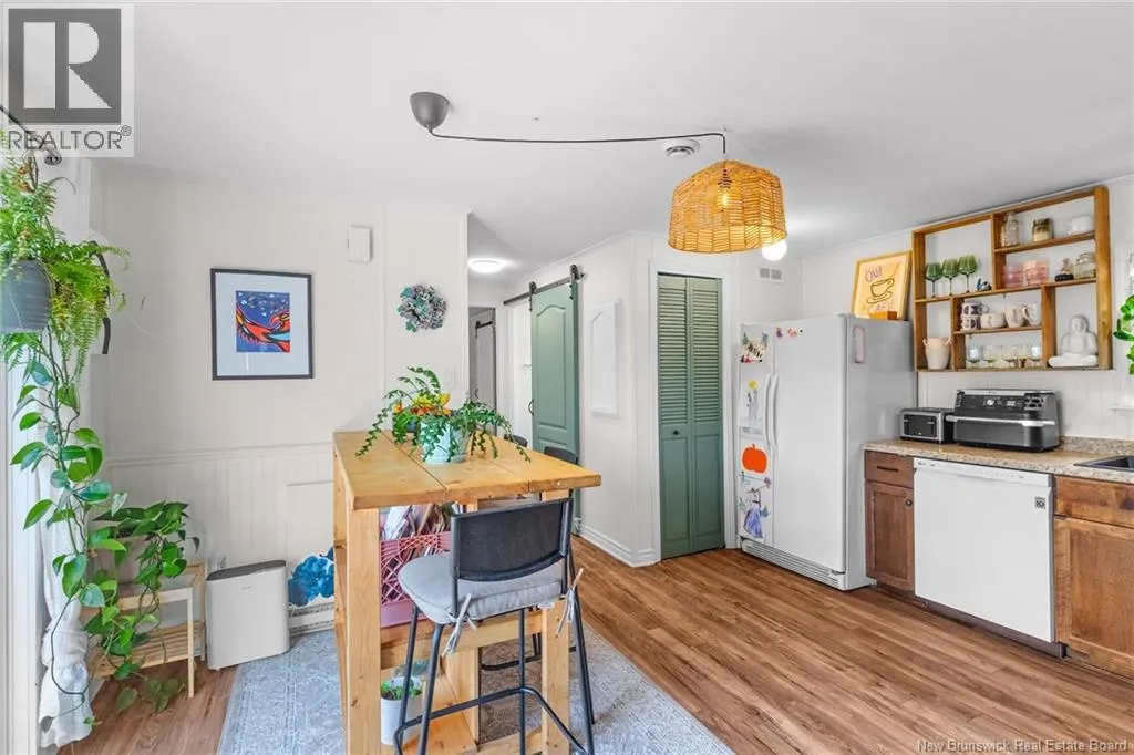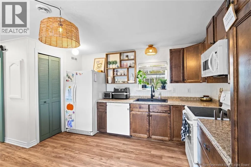 Golf Club Road to Kelly's Drive to Governor Lane Civic #312, sign is up! Are you looking for a modern, move-in-ready home on a quiet street in the heart of Fredericton close to all amenities, in a highly sought-after school district, and at a price that wont break the bank? Welcome to 312 Governor Lane in Kellys Mini Home Park, where comfort, style, and value come together beautifully. Renovated top-to-bottom, this home sits on a mature lot with lovely trees, shrubs, and landscaping, offering a peaceful, park-like setting. Step inside to a bright foyer with a coat closet, opening to a spacious living room featuring a large picture window and a ductless heat pump for year-round comfort. The updated eat-in kitchen shines with modern flooring, cabinetry, backsplash, and appliances perfect for everyday living and entertaining. Just off the kitchen, youll find a dedicated laundry area with storage and a refreshed full bath. The primary bedroom is a standout, offering double closets and an oversized window that allows plenty of natural light during the day. Two additional bedrooms provide space for family, guests, or a home office on the opposite end of the home. The backyard is generous and ideal for kids and pets to play. With nearly every major update completed over the past 67 years, this home truly is move-in ready and waiting for its next owner. A fantastic opportunity for first-time buyers, downsizers, or anyone seeking style and convenience in an unbeatable location. Welcome home! (id:27476)