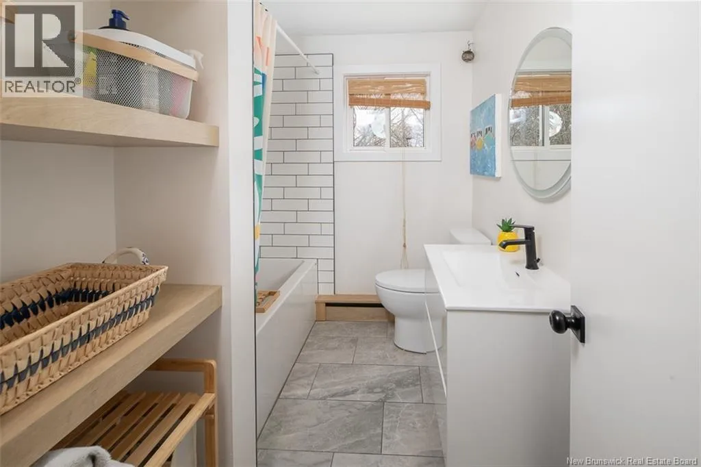 Bridge St to Coronation St to Coronation Crt Half an acre in the city, on a quiet cul-de-sac! 16 Coronation Court on Frederictons northside is an updated bungalow for sale, offering 3 beds and 2 full bathrooms. This well-maintained home features a refreshed kitchen, new flooring in many rooms, a renovated bathroom, and beautiful built-ins throughout. If youre seeking a turnkey property close to amenities in a peaceful location, dont miss out on this one! Head in the front door to find a comfortable foyer with a built-in bench adding perfect storage for winter boots. An open concept living and dining area follows, featuring a ductless heat pump for efficient heating and cooling. New laminate flooring flows through this space and down the hall. Next is the kitchen, with refreshed cabinets in a cozy white and green colour palette. This functional space provides plenty of storage. Down the hall, find the renovated bathroom. With a beautiful tiled tub/shower, ceramic floors, modern vanity, and stunning built-in shelves, this bathroom is as stylish as it is functional. Two bedrooms complete the main floor, including the primary with a new walk-in closet. The lower level is finished, also with refreshed finishes. New flooring, heat pump, and stylish new built-in desk with shelving add to the cozy ambiance. This level offers large family room, third bedroom, second bathroom & laundry/storage/utilities. With its great layout, beautiful updates, and large lot, 16 Coronation Court is the full package. (id:27476)