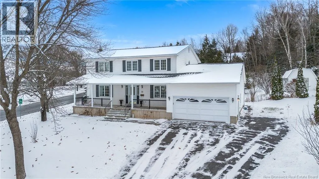 From Kimble Drive, turn onto Stoneybrook Crescent, 11 Stoneybrook, on the corner of Wetmore Road Welcome to 11 Stoneybrook Crescent in beloved Skyline Acres, offered on the market for the very first time. Perfectly positioned on a corner lot along Stoneybrook Cres and Wetmore Road with partial views of the Saint John/Wolastoq river, this two-storey beauty offers space, convenience, and a layout designed for comfortable everyday living. Step inside to a traditional yet spacious main floor - the kind that hosts holidays, birthday parties, and quiet Sunday mornings with ease. A private office is tucked neatly off the foyer for those who work from home. A formal living room and dining room make entertaining feel effortless, while the large kitchen offers exceptional storage and adjoins both an everyday dining space and a generous family room. A half bath and laundry lead directly to the attached garage. Upstairs, the oversized primary suite welcomes you with partial river views and a private ensuite. Three additional good sized bedrooms and a full bathroom complete this level - plenty of space for family, guests, hobbies, or a dream dressing room. The basement is ready for you to make it your own, with room to add two additional bedrooms, a rec room, and abundant storage. Theres plenty of potential. Recent updates include a new roof (2025), HRV/Venmar (2024), new precast front steps + concrete pathway and railing. 11 Stoneybrook Crescent is a wonderful family home in a loved neighbourhood - and ready for its next chapter. Quick closing available. (id:27476)