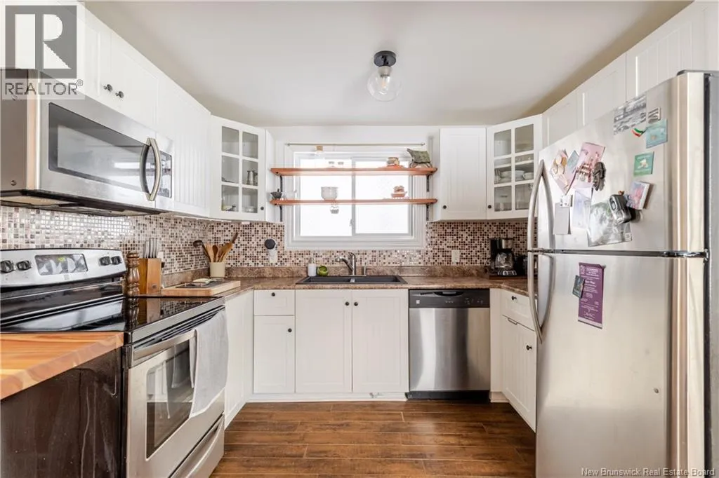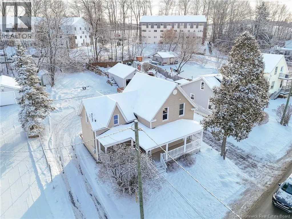From Lincoln Road to Wilsey Road - home is on left hand side Perfectly positioned just minutes from Oromocto and Frederictons Northside, this beautifully renovated home offers the best of both convenience and character. Bursting with charm, this turnkey property is ideally located for those who love city living, with easy access to downtown via the walking trail just across the street. Just a hop, skip and jump away from Forest Hill Elementary and Bliss Carmen Middle School. All major updates have been thoughtfully completed, including recent roof shingles, allowing you to move in with confidence. The main level features a bright, open-concept layout with a centrally located kitchen, a spacious living and dining area, a convenient laundry room equipped with high-end washer and dryer, and a stylish half bath. Upstairs, youll find two comfortable bedrooms and a full bathroom showcasing a stunning tiled shower. Adding to the homes unique layout is a third bedroom tucked away above the kitchen and accessed by a separate back staircase - ideal for a teenager, roommate, or private home office. Step outside and enjoy the expansive wraparound front porch, perfect for relaxing and taking in the surroundings. The large backyard offers a storage shed, and ample space for a future garage or additional outdoor projects and is made for entertaining with a brand-new back deck, charming pergola, and cozy firepit area. This one-of-a-kind home truly combines location, updates, and characteran opportunity not to be missed. (id:27476)