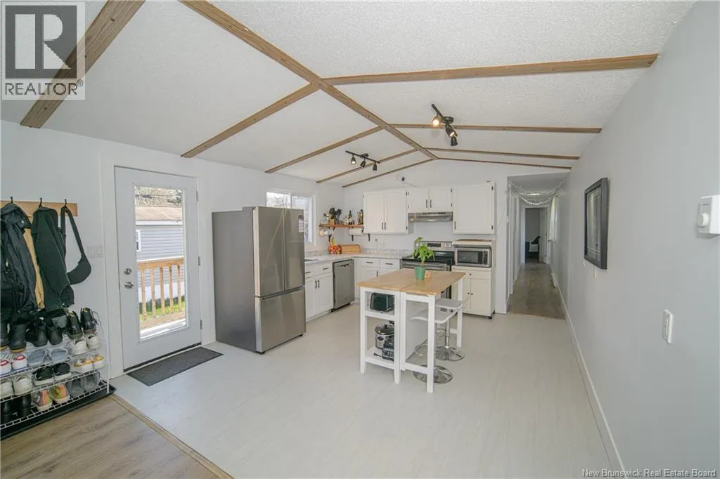 Golf Club Road to Kellys Park. Stay right and Driftwood Loop is first street on the left. Or you can also access from Hanwell Road. Welcome to your new home located at 214 Driftwood Loop! Fantastic location within minutes to either Uptown, Downtown, or the Golf Course & Restaurant. Immaculate & well cared for 3 bedroom, 1 bathroom mini home located in Kellys Community is in MOVE-IN CONDITION! Double paved driveway is great for 2 or more vehicles. This home has been completely renovated approximately 2+ years ago and includes exterior upgrades to include new siding, skirting, exterior doors, new porch. Inside you will find a bright renovated eat-in kitchen open to living room with new heat pump to keep you cool in the summer & cozy in winter. The kitchen features new countertops, cabinets, and kitchen appliances. Upgraded modern bathroom with a new tub, vanity, light fixtures and new washer and dryer set. Followed by 3 good size bedrooms. This home feels brand new with all new vinyl and laminate flooring, new dry wall, trim and ALL new windows throughout the entire home. Call your favorite Realtor for a private viewing. (id:27476)