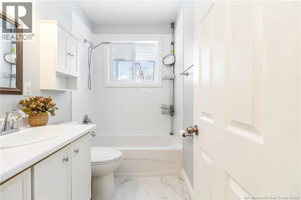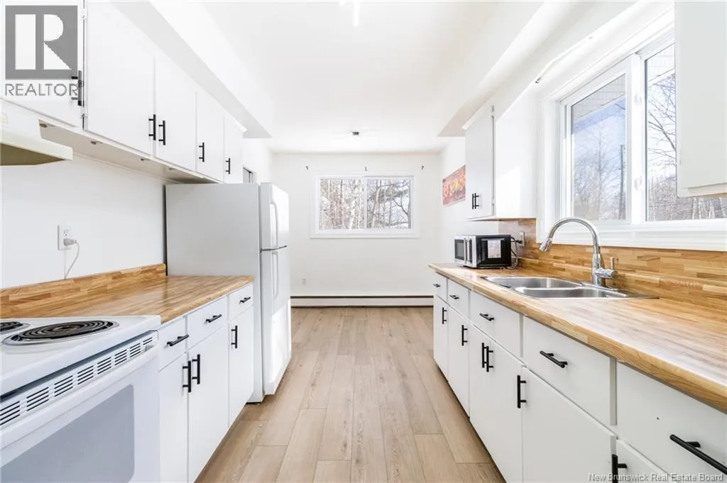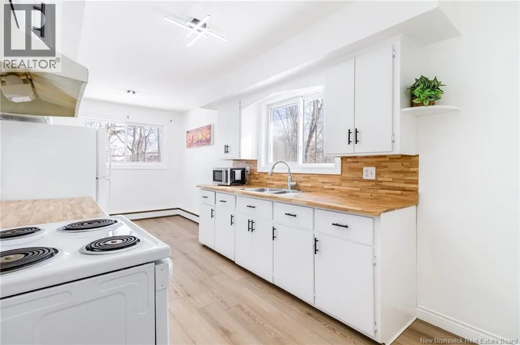 Forest Hill right onto Canterbury Welcome to 30 Canterbury Drive - a beautifully updated bungalow offering exceptional space and flexibility in a central Fredericton location just steps from Forest Hill Elementary, transit, and everyday amenities. A charming covered front porch spans the front of the home, creating a welcoming outdoor space to relax and enjoy the mature setting. Inside, the main level features three well-sized bedrooms, a renovated bathroom with tile finishes, new flooring, updated lighting, and refreshed kitchen cabinetry with fresh paint which together create a bright and comfortable living environment. The lower level has been newly finished from previously unfinished space and adds remarkable versatility, offering three additional generously sized bedrooms, a full bathroom with tiled finishes, a newly installed kitchen with exterior-vented range hood, modern trim, new doors, new standing shower with modern panel tower, new electric baseboard heating, and a separate rear entrance. This functional layout is ideal for extended family living or potential supplementary living arrangements. Additional mechanical updates include reinstallation of a new sump pump for added peace of mind. With approximately 1,894 sq. ft. of finished living space, this property also features an attached garage and presents a fantastic opportunity for buyers seeking space, updates, and location in one complete package. Book your private showing today. (id:27476)