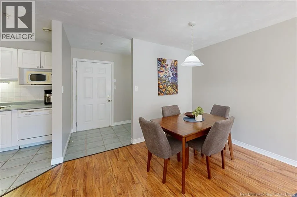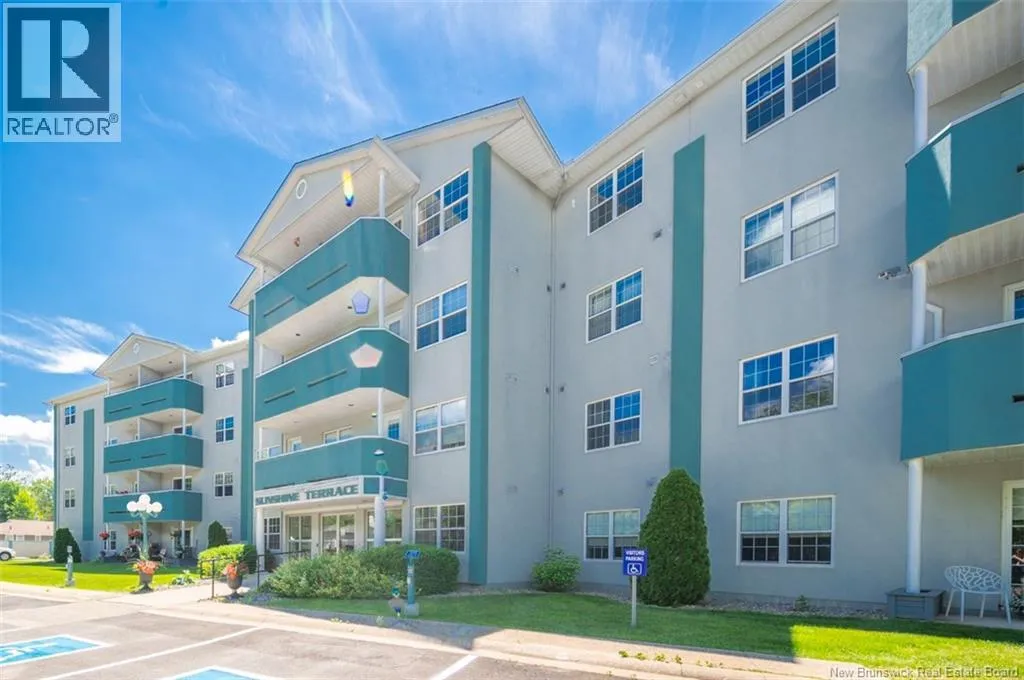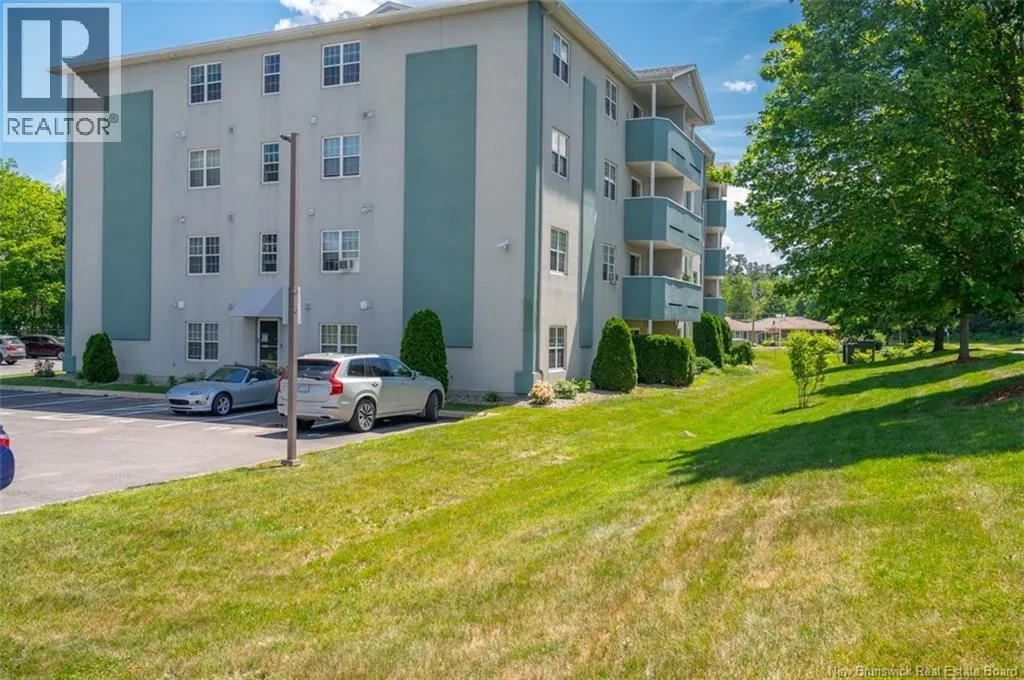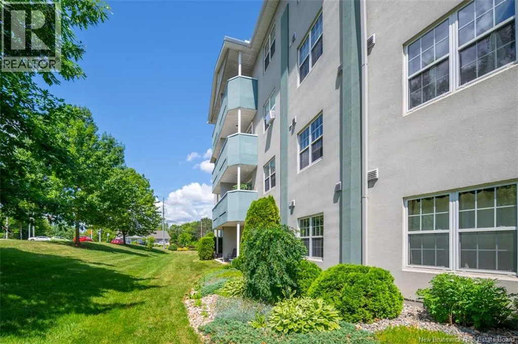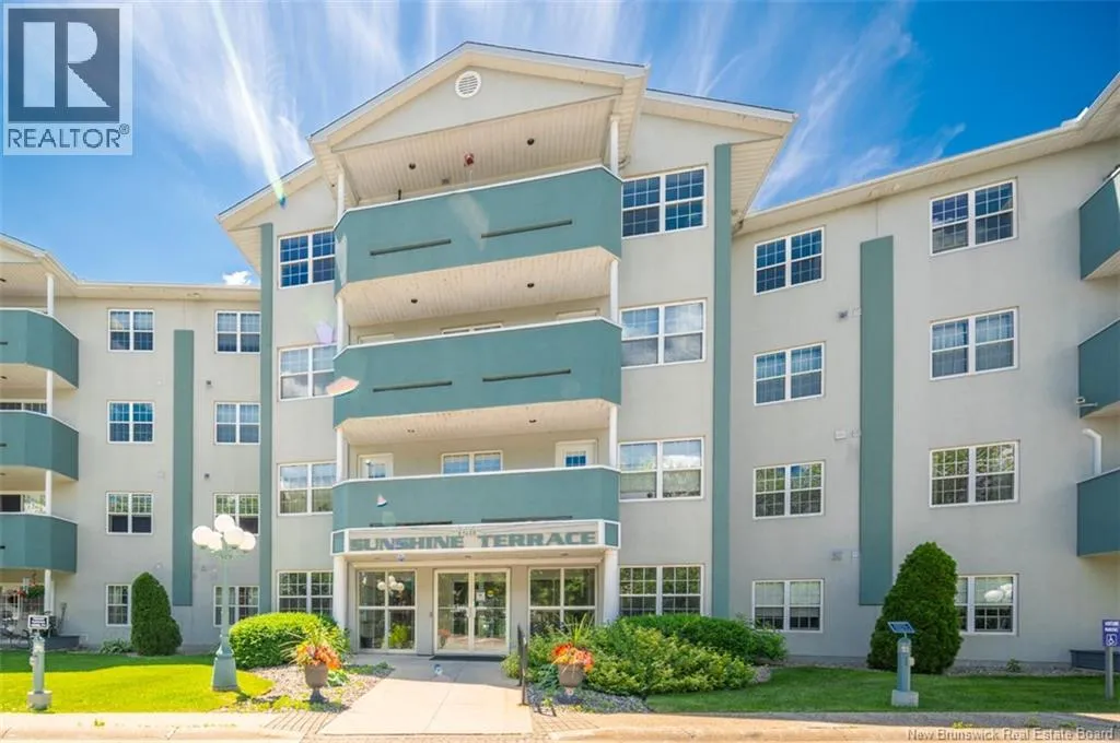 Located at corner of Waggoners Ln and Hanwell Rd. Top-floor living has its perks, and this one comes with a treetop view of Odell Park. Welcome to Unit 410 at Sunshine Terrace, where the rhythm of the city meets the calm of nature. Step outside and youre moments from Frederictons beloved walking trail and 300+ acres of parkland. Youre within easy walking distance of groceries and more. Concrete construction a rarity in the city adds peace of mind and quiet comfort. Inside, this bright 2-bedroom condo enjoys sunny southern exposure and a layout that simply makes sense. The kitchen, finished in white cabinetry, flows effortlessly into the open dining and living area a welcoming space. Patio doors draw in generous natural light and lead to your private balcony, where park views provide a daily dose of calm. The foyer is thoughtfully tucked away from the main living space. Down the hall, youll find two spacious bedrooms, including a primary with a walk-in closet. Both bedrooms offer treed views. The full bathroom features a large vanity and tub/shower combo, while laundry is in its own closet across the hall. A utility and storage room rounds out this comfortable home. Life at Sunshine Terrace is designed to be easy. Residents enjoy a secure entrance, elevator, large common room, and fitness space. The maintenance package takes care of snow removal and lawn care, leaving you free to enjoy your surroundings whether that means morning walks through the park or evenings on your balcony as the sun sets through the trees. (id:27476)