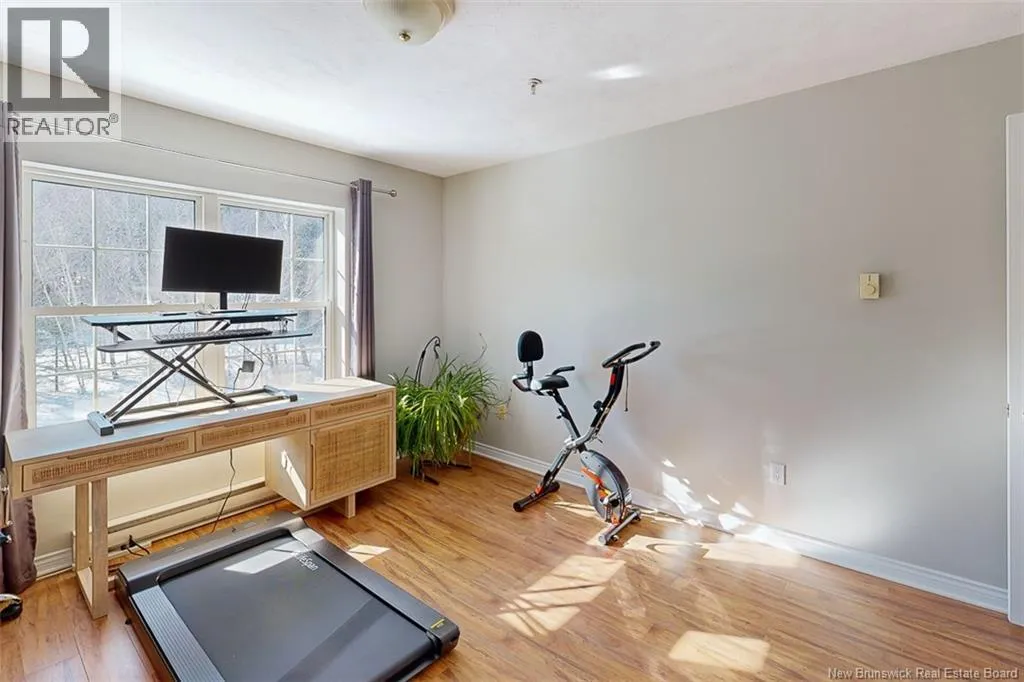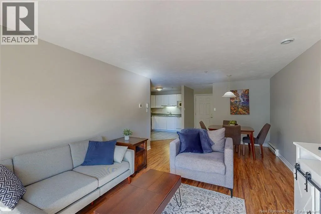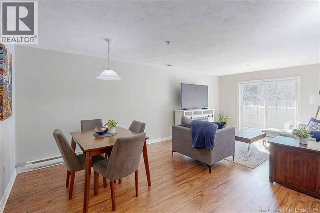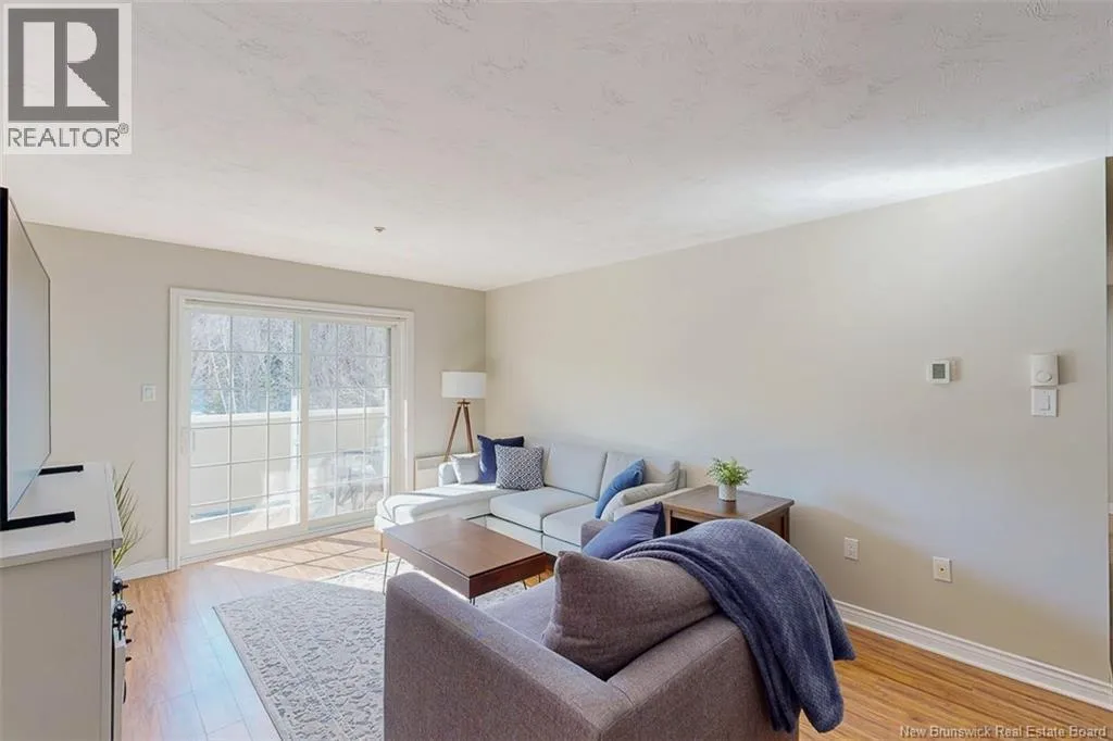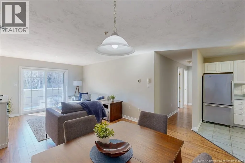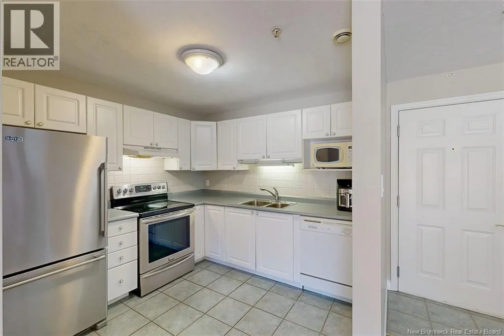 Located at corner of Waggoners Ln and Hanwell Rd. Top-floor living has its perks, and this one comes with a treetop view of Odell Park. Welcome to Unit 410 at Sunshine Terrace, where the rhythm of the city meets the calm of nature. Step outside and youre moments from Frederictons beloved walking trail and 300+ acres of parkland. Youre within easy walking distance of groceries and more. Concrete construction a rarity in the city adds peace of mind and quiet comfort. Inside, this bright 2-bedroom condo enjoys sunny southern exposure and a layout that simply makes sense. The kitchen, finished in white cabinetry, flows effortlessly into the open dining and living area a welcoming space. Patio doors draw in generous natural light and lead to your private balcony, where park views provide a daily dose of calm. The foyer is thoughtfully tucked away from the main living space. Down the hall, youll find two spacious bedrooms, including a primary with a walk-in closet. Both bedrooms offer treed views. The full bathroom features a large vanity and tub/shower combo, while laundry is in its own closet across the hall. A utility and storage room rounds out this comfortable home. Life at Sunshine Terrace is designed to be easy. Residents enjoy a secure entrance, elevator, large common room, and fitness space. The maintenance package takes care of snow removal and lawn care, leaving you free to enjoy your surroundings whether that means morning walks through the park or evenings on your balcony as the sun sets through the trees. (id:27476)
