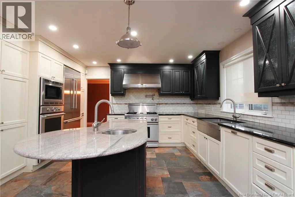 Douglas Ave towards Estey Ln , turn onto Wiggins Dr Wow! this home must be seen to be appreciated! A meticulously designed two-story executive residence situated in one of Fredericton's most sought-after neighborhoods. The home welcomes you with a spacious foyer to welcome guests. French door leads to a formal living and dining room which flows into the Chef's Dream Kitchen. The kitchen is equipped with Thermador Range Hood and Refrigerator. A premium Gas Stove complemented by a separate Electric Stove setup for double cooking. Built-in Wine Cooler and an attached dedicated Coffee Maker station. Sleek cabinet-concealed Dishwasher maintaining the kitchen's minimalist aesthetic. Granite countertop highlight the black and white cabinetry and everything ties together with slate look porcelain floor tiles. The main level also opens to a bright office and spacious family room. The Second Level features 4 generously sized bedrooms. The Primary Suite is vast bedroom space complete with spacious ensuite bathroom and a large dedicated walk-in closet. 3 Secondary spacious bedrooms share a beautifully appointed full bathroom, ensuring comfort and privacy for children. The fully finished lower level transforms downtime into Entertainment Hub and Dedicated Cinema Room. A private In-Law Suite one bedroom and full bathroom offer ideal accommodation for guests. The basement has dedicated utility room and ample storage spaces. The large fenced backyard features a custom-built deck perfect for summer BBQ and relaxation. (id:27476)