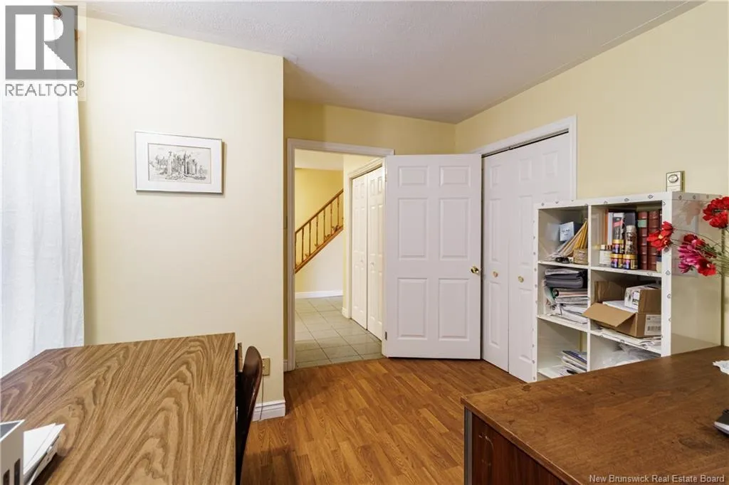 Forest Hill Road, turn left onto Kimble Drive, first driveway on the left on Kimble Drive to civic #395 Elegant Family Home with River Views in a Sought-After Fredericton Neighbourhood. Welcome to this beautifully designed 4+1 bedroom, 3 full bath two-storey home, perfectly situated in one of Fredericton's most desirable neighbourhoods, just minutes from all amenities! The main level features a welcoming entryway leading into a spacious living room and a formal dining room perfect for entertaining. The kitchen boasts granite countertops, ample storage, and stunning views of the Saint John River. Adjacent to the kitchen, you'll find a cozy eat-in area with a fireplace, creating the ideal spot for casual dining or relaxation. This level also includes a laundry room and a flexible den/office space that could easily serve as a guest suite, with a full bathroom conveniently located nearby. Upstairs, the primary bedroom offers a peaceful retreat with a large ensuite bathroom and a Juliette balcony overlooking the river. Three additional generously sized bedrooms, each with a view, and a spacious main bathroom complete the upper level. The lower level is unfinished and ready for your personal touch whether you envision a recreation room, gym, or additional living space. Outside, you'll love the fenced backyard, attached double garage, and paved driveway with a turning area. Come and explore this unique home with character, comfort, and incredible river views - it has so much to offer! Some photos have been Virtually Staged. (id:27476)
