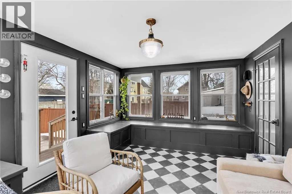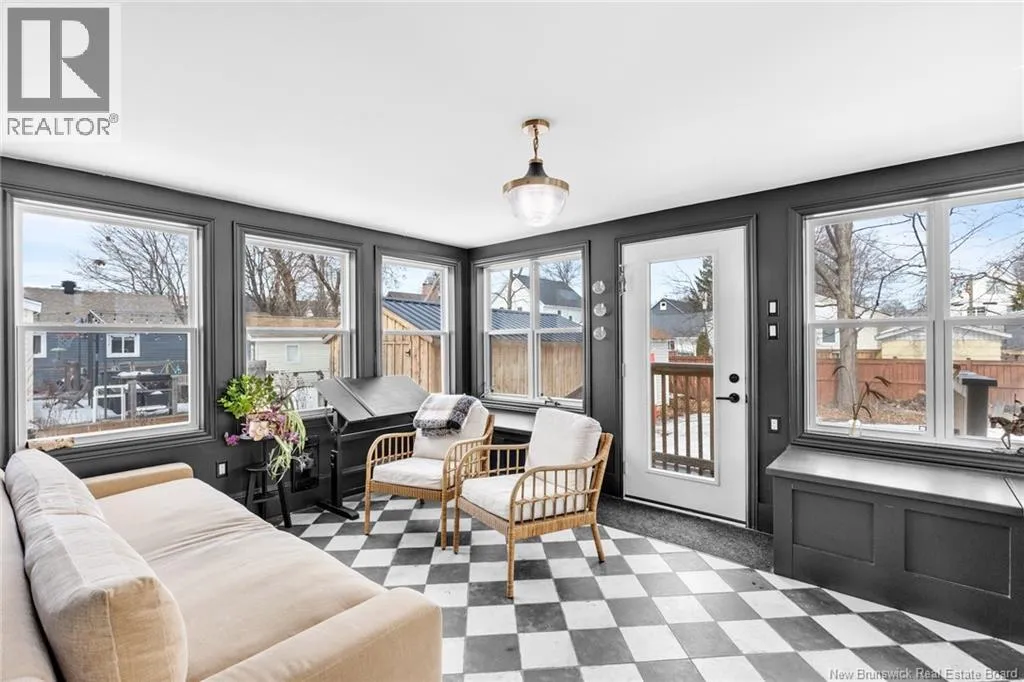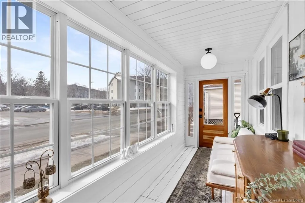 Regent street to Mcleod Ave, Civic # 671. Sign is up! Welcome to easy downtown living in this charming 2-bedroom, 1-bath bungalow ideally located in the heart of Fredericton. Just a short stroll to Queen Square, the Fredericton Boyce Farmers Market, scenic riverfront walking and biking trails, boutique shopping, and cozy cafés, this home offers the perfect blend of convenience and charm. It is also minutes from both the University of New Brunswick and St. Thomas University. Extensively renovated, the home features many thoughtful updates, including a beautiful new fully insulated four-season sunroom, new windows, a new deck, new siding, and a new 200-amp electrical panel. Step inside through the welcoming front entry, a practical space to greet guests or store coats and shoes. From there, youll find a bright and spacious living and dining area with beautiful hardwood floors that add warmth and character. The home offers two well-sized bedrooms, including a primary bedroom with an armoire for closet space. The full bathroom features updated tile flooring and a new vanity, while the separate laundry room provides additional storage. At the back, enjoy the fully insulated four-season sunroomperfect for relaxing, reading, working from home, or entertaining. Built-in bench seating adds convenient hidden storage. Ideal for those seeking vibrant downtown living, this cozy bungalow places you close to parks, markets, trails, universities, and amenities. Move in, unpack, and relax. (id:27476)