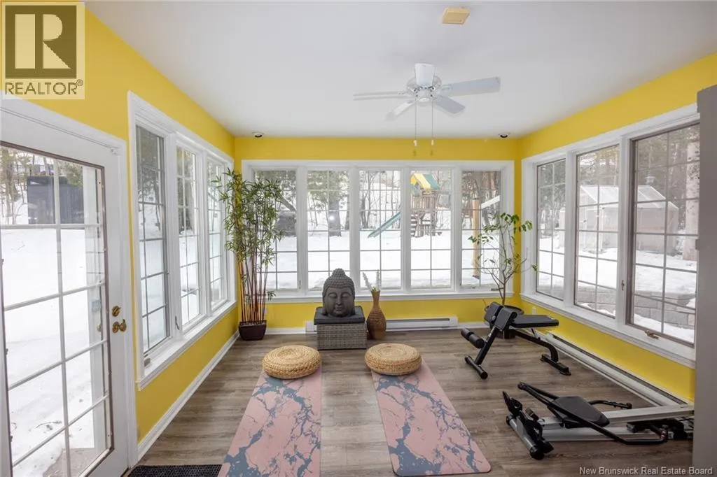 Travel North on Smythe and turn right on Eglinton. House is on the right Welcome to 190 Eglinton Street an exceptional four-level home on ""the Hill,"" just steps from O'Dell Park and minutes to UNB, STU, shops, and all city amenities. The showstopper is a sun-drenched flex room wrapped in windows on three sides currently styled as a yoga studio and home gym, it's a rare and inspiring space. With a ceiling fan, French door access to the backyard, and light pouring in year-round, it adapts effortlessly to whatever you need: meditation retreat, fitness room, playroom, or simply a bright place to unwind. The private backyard beyond includes a greenhouse, play structure, and generous patio space a true outdoor escape. The lower family room is equally impressive, anchored by a striking exposed brick fireplace that gives the space genuine warmth and character. Wide-plank flooring, recessed lighting, and an open layout make it as functional as it is inviting. The multi-level layout flows naturally throughout, with a well-appointed kitchen, generous living and dining areas, and thoughtful upgrades at every turn. Efficient heating and cooling, a generator panel, and all appliances included round out this impressive package. (id:27476)