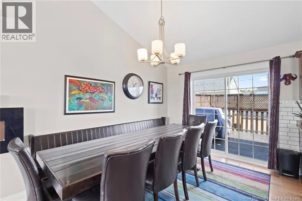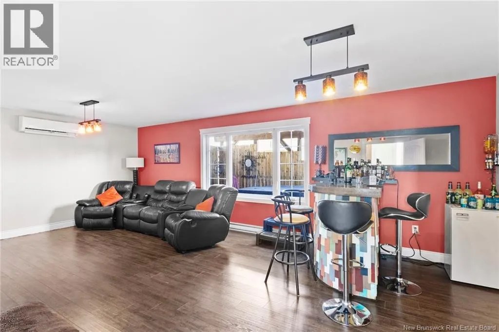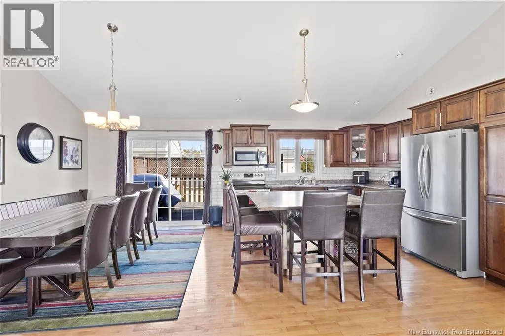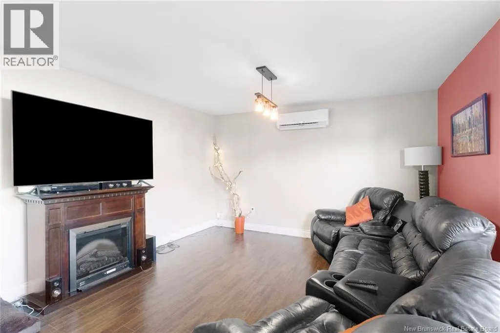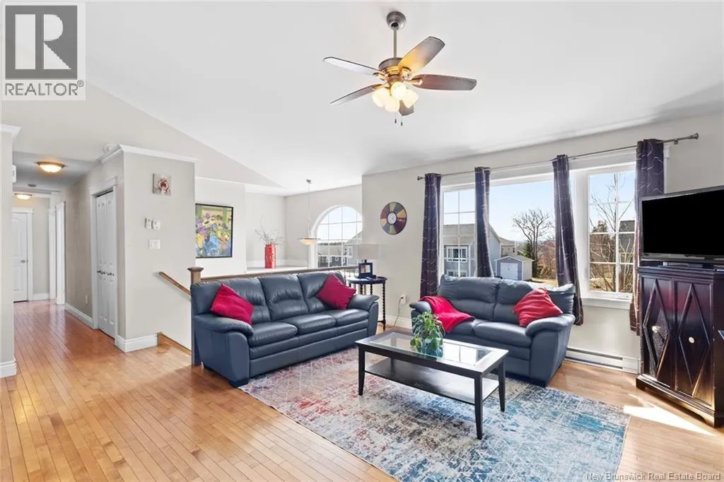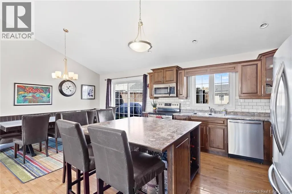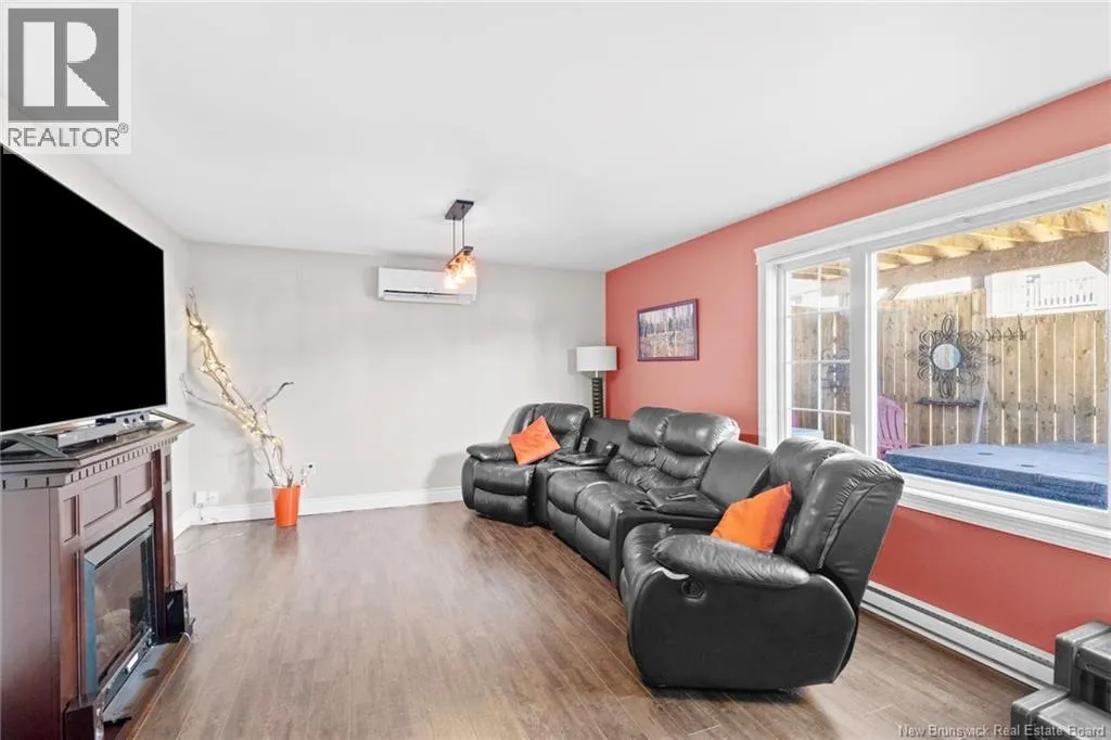 Brookside Drive to Glennorth Street Welcome to this inviting on-grade split-entry home located in popular North Brook sub-division. Step into a bright, spacious foyer that leads to an open-concept living room/kitchen/dining area, highlighted by vaulted ceilings and an abundance of natural light. The kitchen features ample cabinetry including pantry with pullouts, and an extra-large island with wine rack, wine fridge, storage & seating. Sliding doors lead to a nice-sized deck complete with a privacy wall. Down the hall, you will find the main bathroom and three bedrooms, including a primary suite with a walk-in closet and ensuite bathroom. The lower level is fully on grade, offering large windows that fill the space with natural light. Enjoy a cozy family room, fourth bedroom, a combined laundry/bathroom, and convenient access to the double garage. An added bonus is the storage/utility room at the back of the garage. Ductless heat pumps on both levels provide year-round temperature control. The backyard features open space for children to play and an enclosed patio area beneath the deck with hot tub (negotiable). Located in a growing, family-friendly neighbourhood, this home is just a short stroll to Killarney Lake Park with beach, trails and year-round activities. Children are in zone to attend the brand new, state-of-the art, Sunset Acres Elementary School. Golfers will love the prestigious West Hills Golf Course, just minutes away. Close to all north side amenities and a quick commute to Fredericton South. (id:27476)