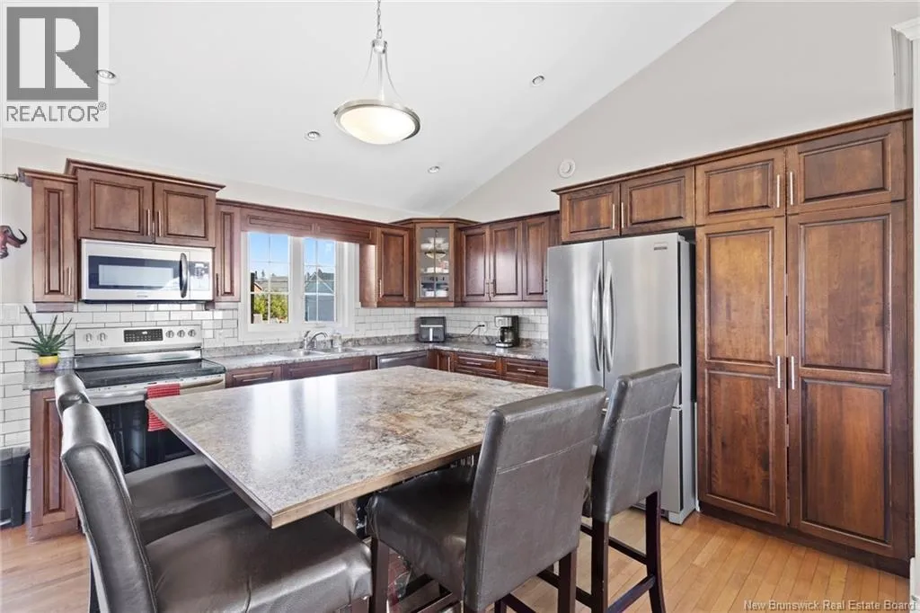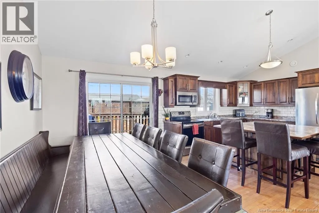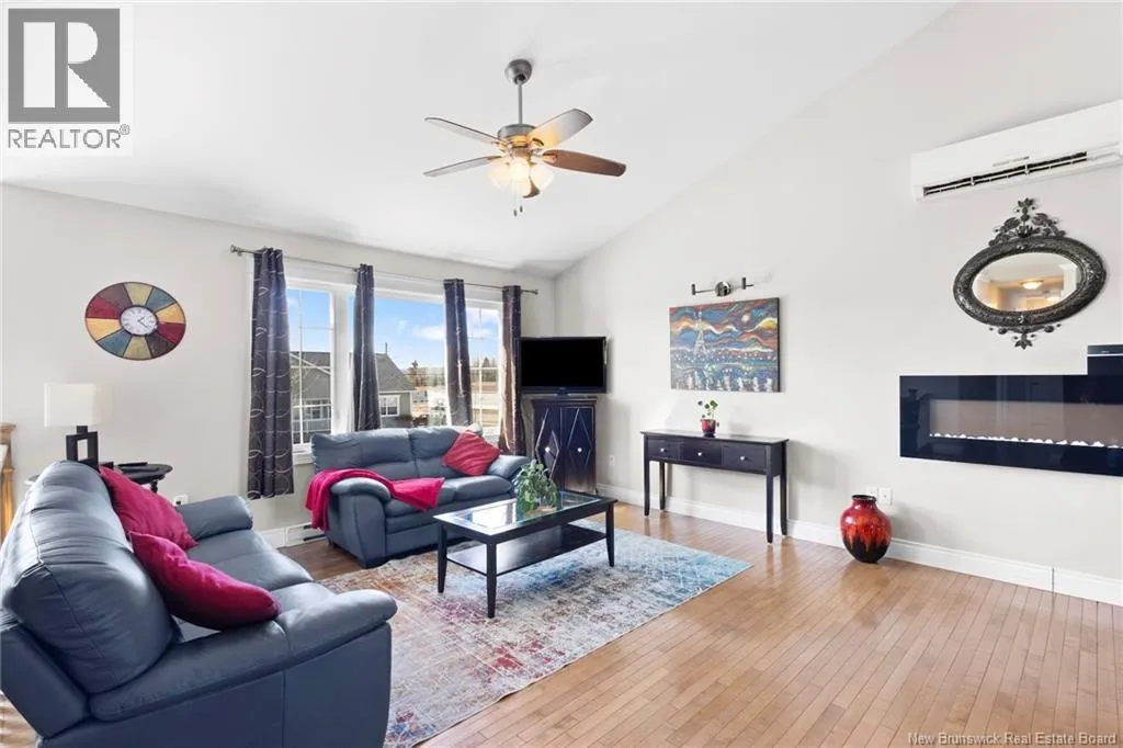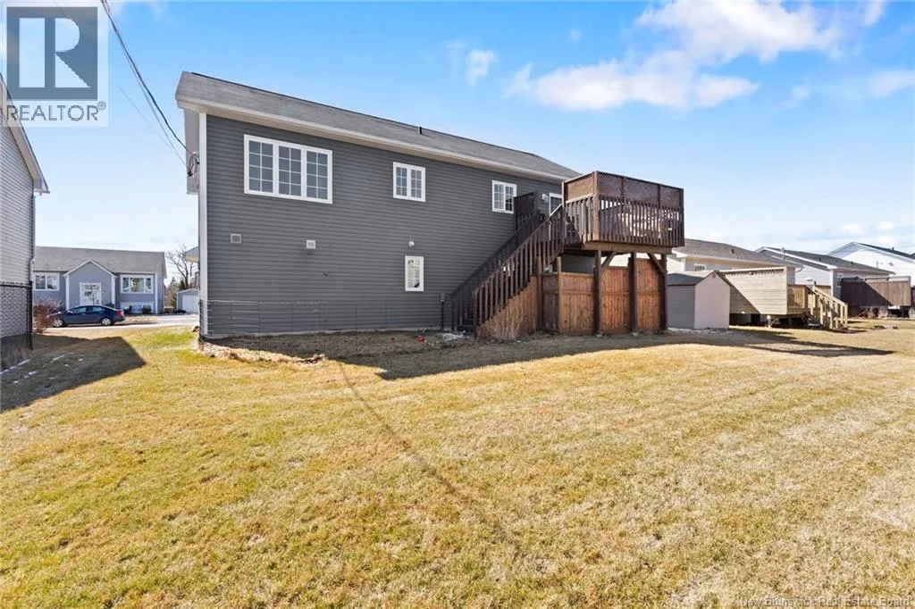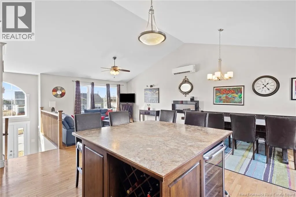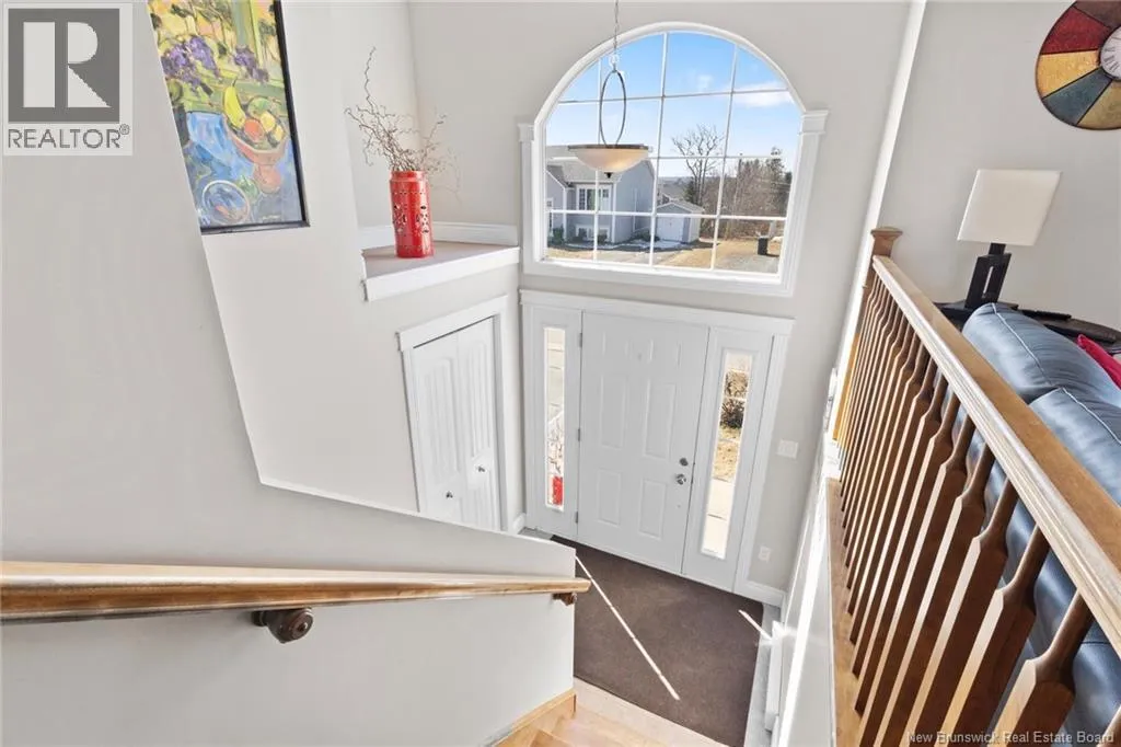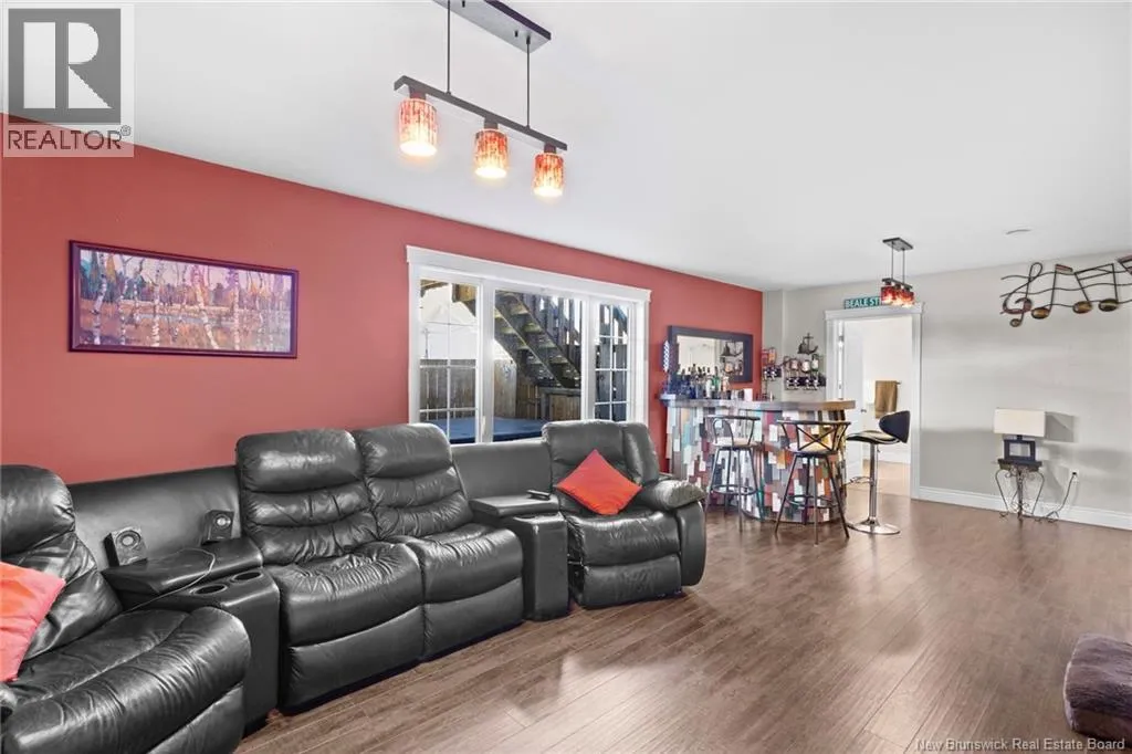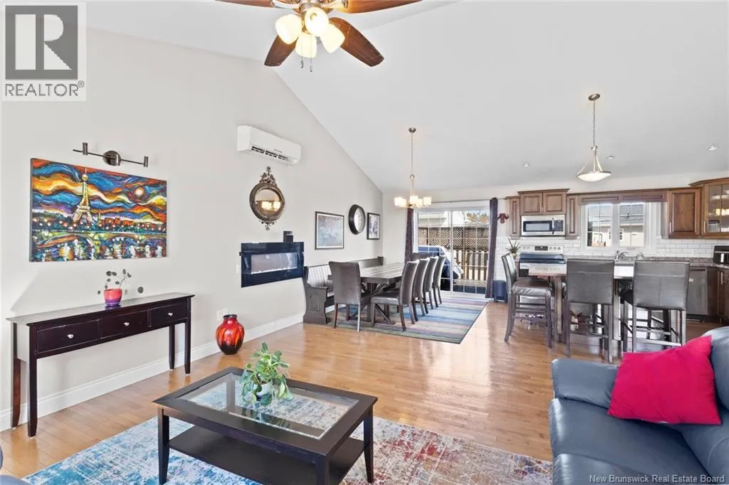 Brookside Drive to Glennorth Street Welcome to this inviting on-grade split-entry home located in popular North Brook sub-division. Step into a bright, spacious foyer that leads to an open-concept living room/kitchen/dining area, highlighted by vaulted ceilings and an abundance of natural light. The kitchen features ample cabinetry including pantry with pullouts, and an extra-large island with wine rack, wine fridge, storage & seating. Sliding doors lead to a nice-sized deck complete with a privacy wall. Down the hall, you will find the main bathroom and three bedrooms, including a primary suite with a walk-in closet and ensuite bathroom. The lower level is fully on grade, offering large windows that fill the space with natural light. Enjoy a cozy family room, fourth bedroom, a combined laundry/bathroom, and convenient access to the double garage. An added bonus is the storage/utility room at the back of the garage. Ductless heat pumps on both levels provide year-round temperature control. The backyard features open space for children to play and an enclosed patio area beneath the deck with hot tub (negotiable). Located in a growing, family-friendly neighbourhood, this home is just a short stroll to Killarney Lake Park with beach, trails and year-round activities. Children are in zone to attend the brand new, state-of-the art, Sunset Acres Elementary School. Golfers will love the prestigious West Hills Golf Course, just minutes away. Close to all north side amenities and a quick commute to Fredericton South. (id:27476)