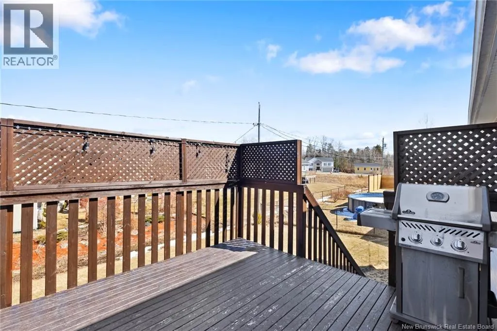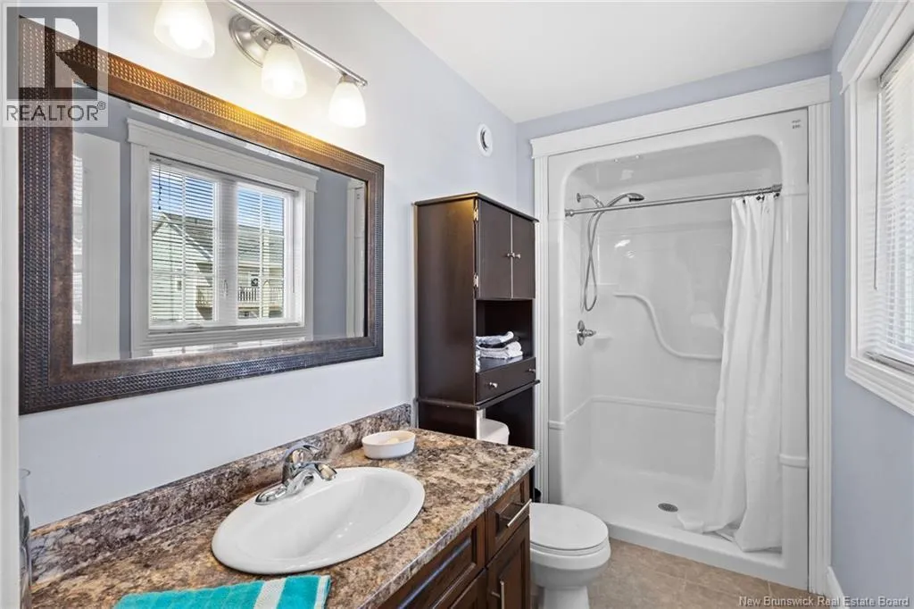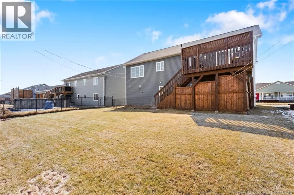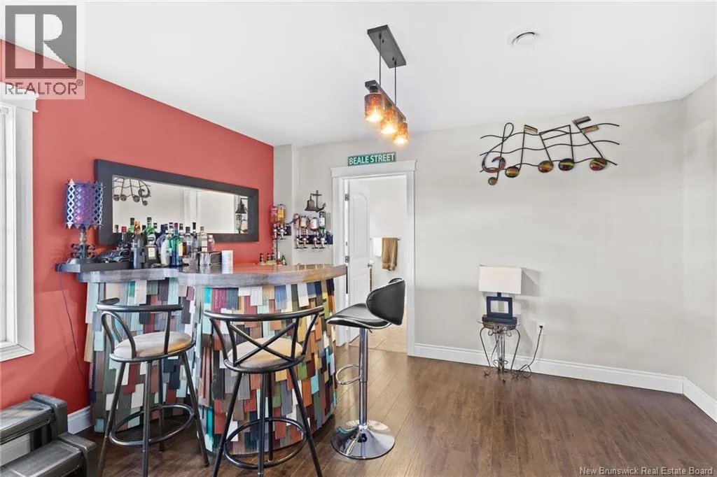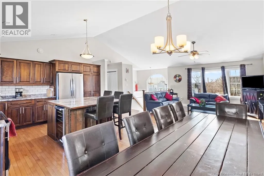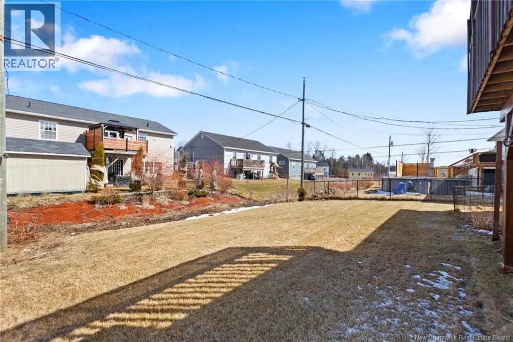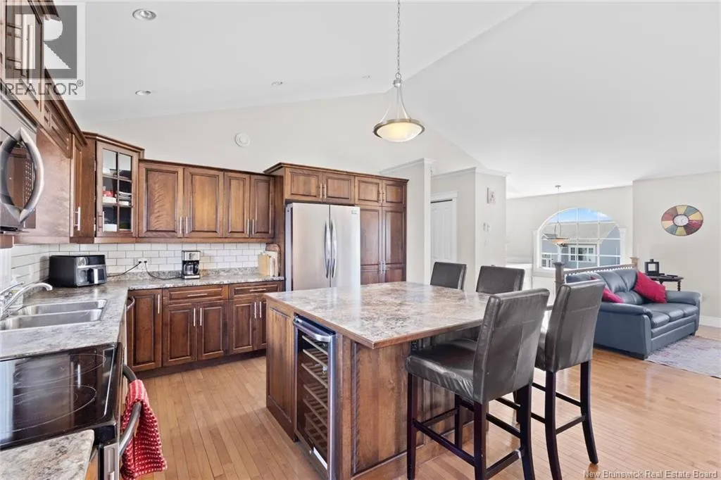 Brookside Drive to Glennorth Street Welcome to this inviting on-grade split-entry home located in popular North Brook sub-division. Step into a bright, spacious foyer that leads to an open-concept living room/kitchen/dining area, highlighted by vaulted ceilings and an abundance of natural light. The kitchen features ample cabinetry including pantry with pullouts, and an extra-large island with wine rack, wine fridge, storage & seating. Sliding doors lead to a nice-sized deck complete with a privacy wall. Down the hall, you will find the main bathroom and three bedrooms, including a primary suite with a walk-in closet and ensuite bathroom. The lower level is fully on grade, offering large windows that fill the space with natural light. Enjoy a cozy family room, fourth bedroom, a combined laundry/bathroom, and convenient access to the double garage. An added bonus is the storage/utility room at the back of the garage. Ductless heat pumps on both levels provide year-round temperature control. The backyard features open space for children to play and an enclosed patio area beneath the deck with hot tub (negotiable). Located in a growing, family-friendly neighbourhood, this home is just a short stroll to Killarney Lake Park with beach, trails and year-round activities. Children are in zone to attend the brand new, state-of-the art, Sunset Acres Elementary School. Golfers will love the prestigious West Hills Golf Course, just minutes away. Close to all north side amenities and a quick commute to Fredericton South. (id:27476)