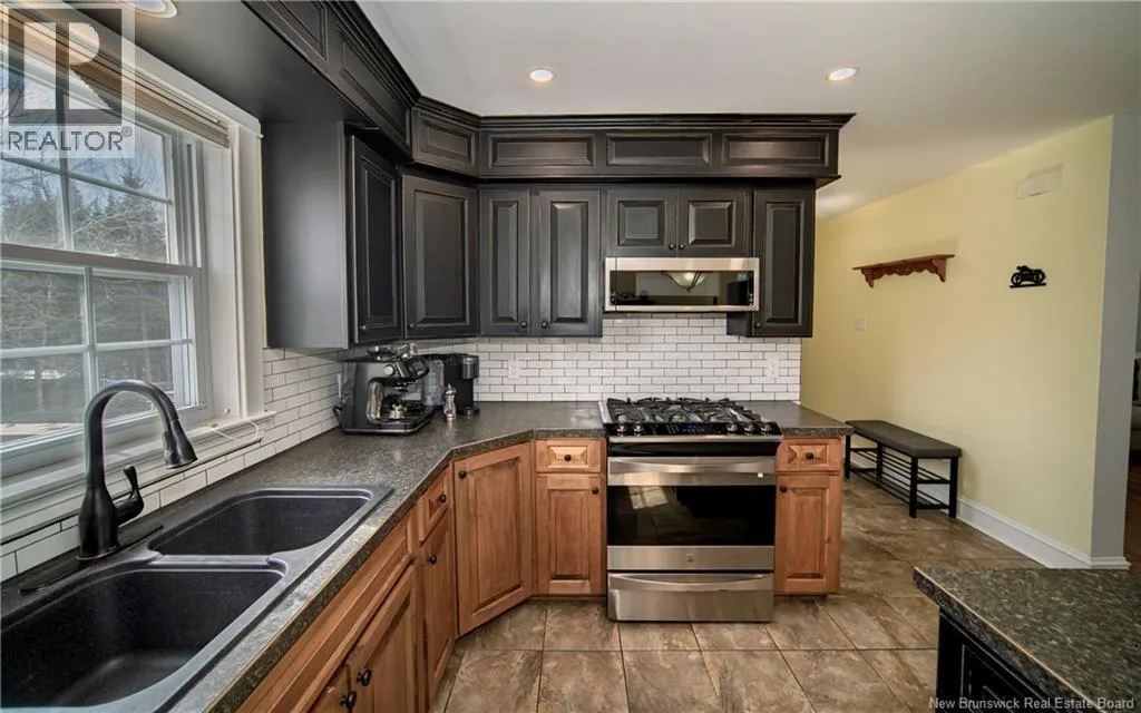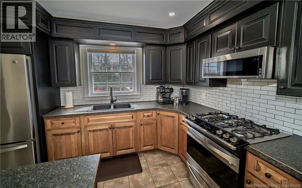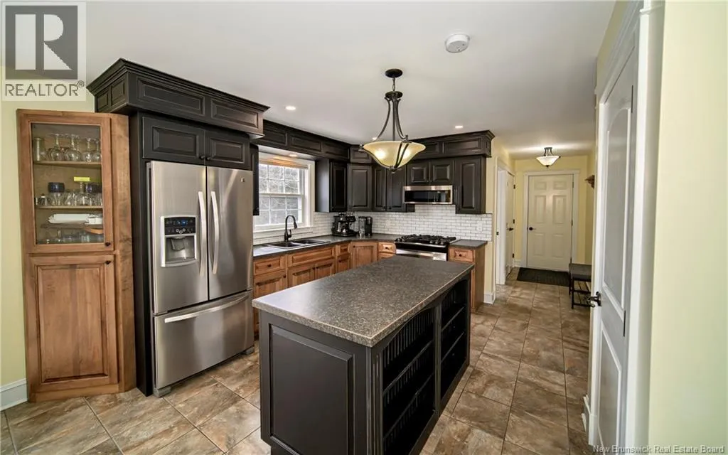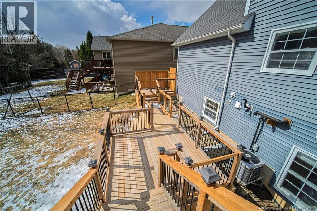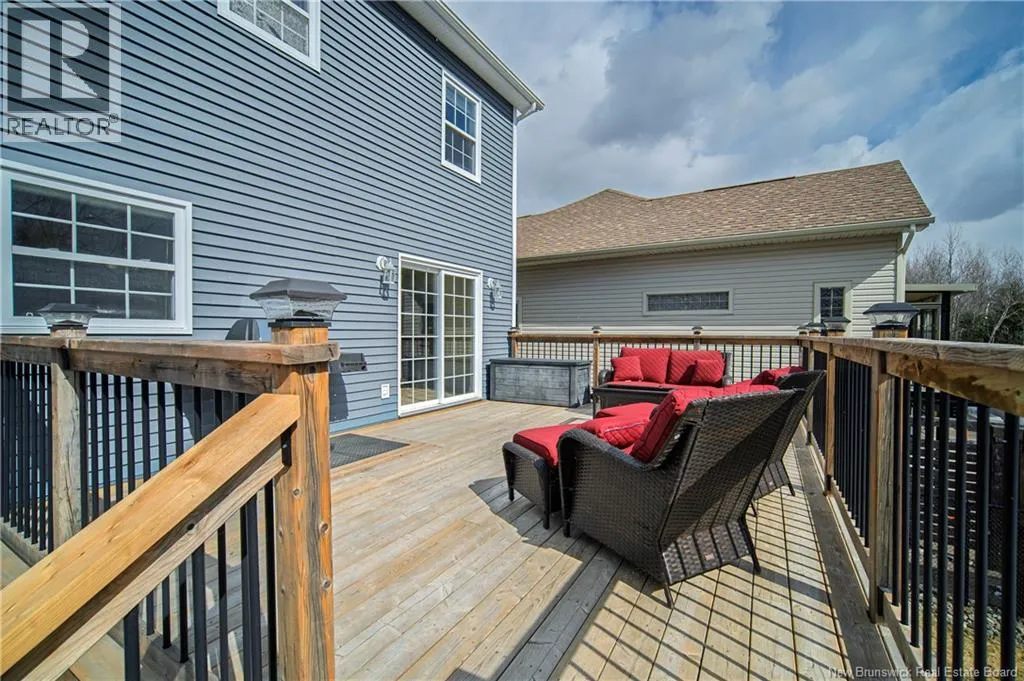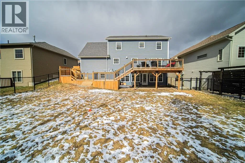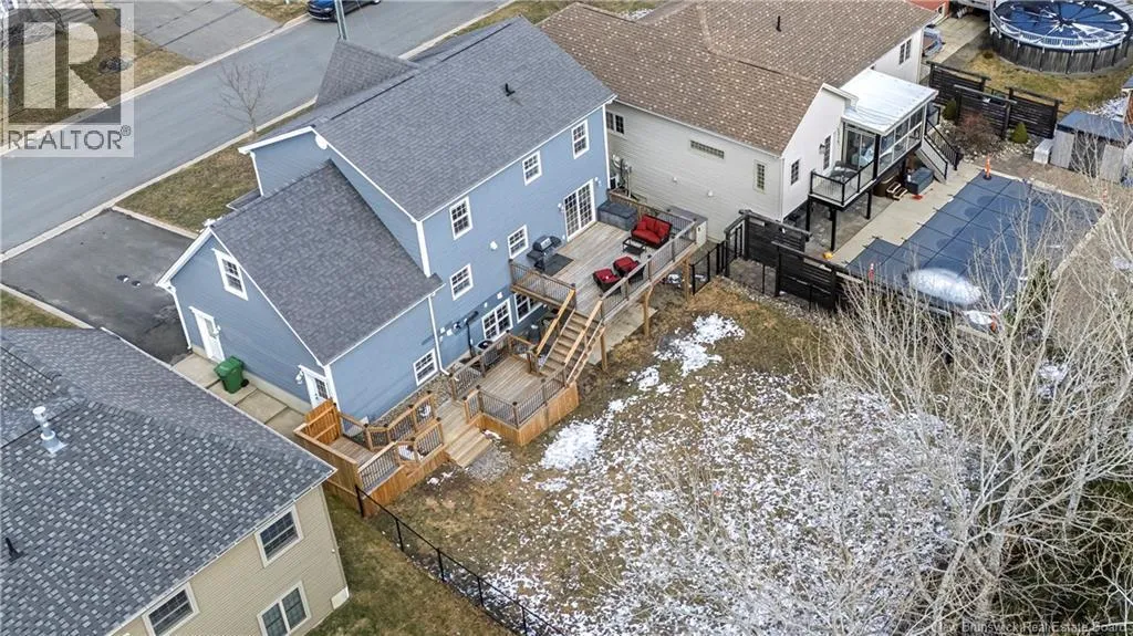 From the Hanwell Tim Hortons, take Woodside Lane, left on Serenity and left again on Red Maple. Sign is up! Welcome to 38 Red Maple, this beautiful custom-built two storey home offers 5 bedrooms, 3.5 bathrooms, a large garage, all complete with central air. Tucked into a quiet, welcoming neighbourhood, this property is conveniently located near everyday amenities. The main floor boasts a bright open concept kitchen and dining space, featuring a custom island with a dishwasher and lots of cabinetry. Patio doors off the dining area lead to an expansive deck overlooking a private backyard - perfect for relaxing or entertaining. The main level also includes a spacious living room with hardwood flooring, a separate formal dining or family room, with a convenient half bath with laundry. Upstairs, youll find three well-sized bedrooms along with a spacious primary suite complete with a walk-in closet and a luxurious ensuite. The fully finished basement offers even more living space, including a walkout to the backyard, a fifth bedroom, a full bathroom, and a large family room. A separate side entrance provides excellent potential for an in-law suite or income opportunity. (id:27476)