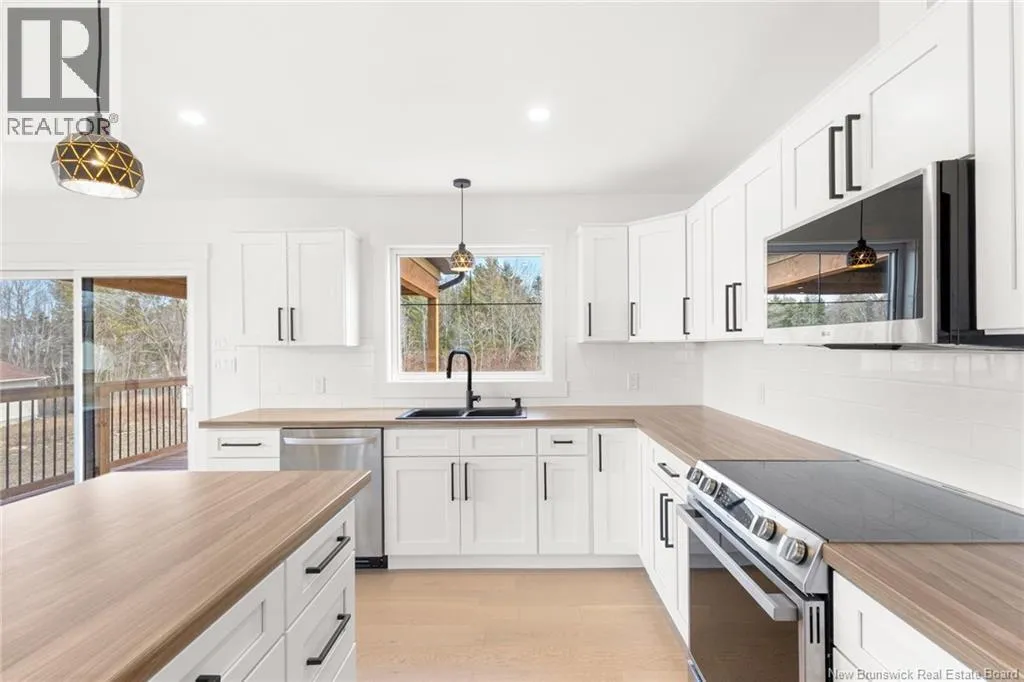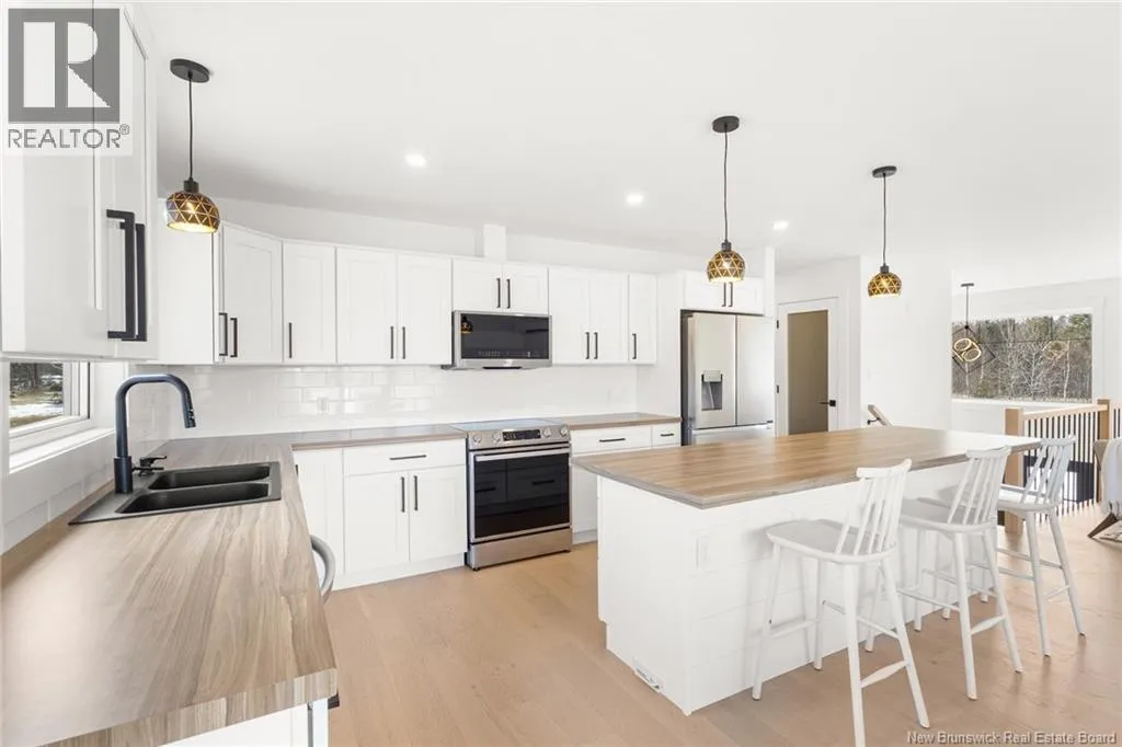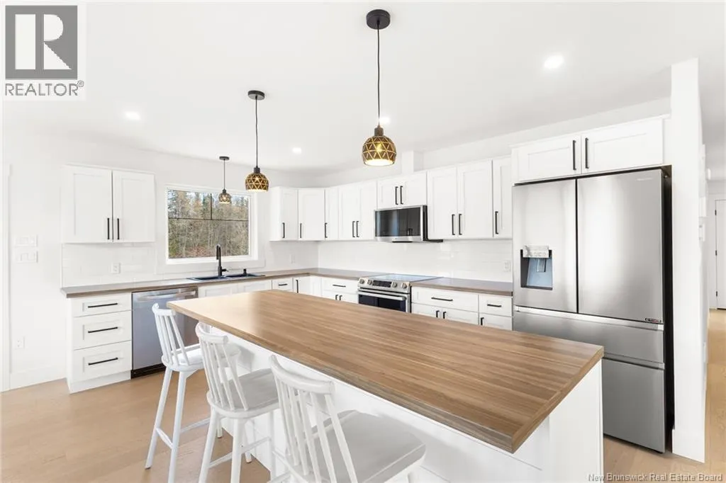 From Fredericton, take St. Marys Street to Killarney Road, continue past Killarney Lake Park, then turn into Killarney Lakeside Estates. Follow to Clara Drive civic #22 Welcome to 22 Clara Drive in the sought-after Killarney Lakeside Estates, where modern living meets space on a beautifully cleared one-acre lot, ready for the outdoor rink or pool of your dreams! This brand new split-entry home offers a thoughtfully designed layout with bright, open-concept living at its core. The main level features a stunning white kitchen that flows seamlessly into the dining and living areas, all highlighted by beautiful engineered hardwood floors, perfect for both everyday living and entertaining. Upstairs, youll find three spacious bedrooms, including a primary suite complete with a private en suite and a generous walk-in closet. Enjoy an added touch of comfort with in-floor heating in the bathrooms, bringing warmth and luxury to your daily routine. The fully finished lower level adds even more living space with a fourth bedroom and a full bathroom, ideal for guests, a home office, or growing families. Comfort is key year-round with three energy-efficient heat pumps throughout the home, plus an additional heat pump in the garage, perfect for those who value a versatile and climate-controlled workspace. Set in a desirable neighbourhood just minutes from amenities while offering the peace of country-style living, this home is the perfect blend of style, function, and location. (id:27476)