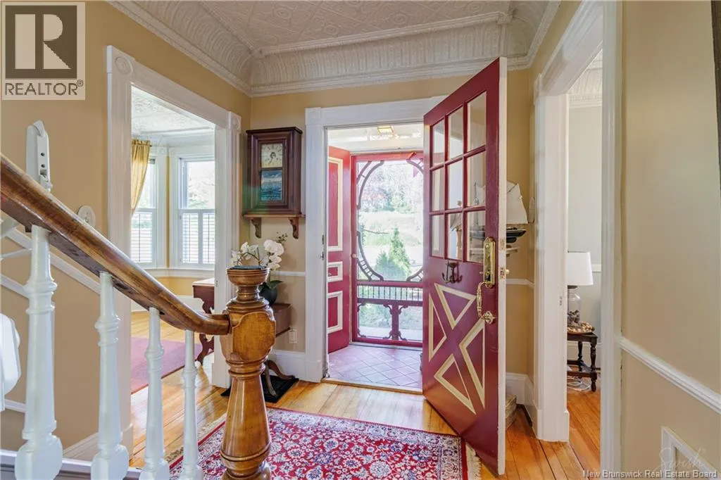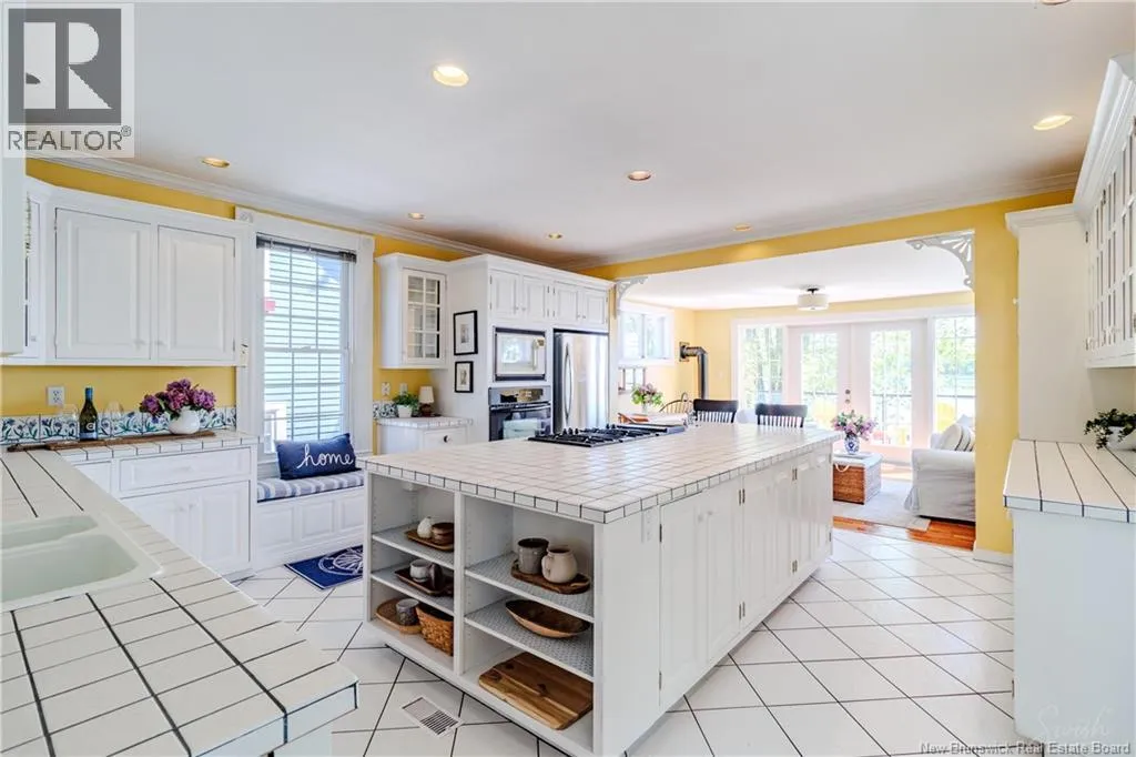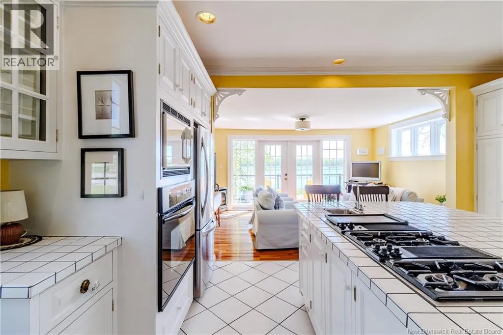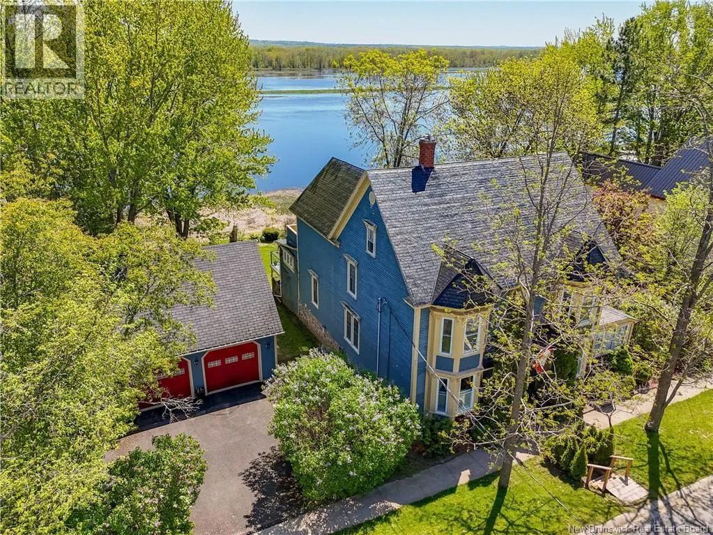 Route 102 to Gagetown to Front Street civic #54. Welcome to 54 Front Street, located in the picturesque historic Village of Gagetown. This remarkable property offers stunning views of the Saint John River, transforming a house into a true lifestyle choice. With five spacious bedrooms and two and a half bathrooms, there is ample room for family and guests. The impressive 10-foot pressed metal ceilings & elegant crown molding create a warm & inviting atmosphere throughout the home. The large kitchen features an oversized island, making it an ideal space for entertaining family & friends. Imagine cooking your favorite meals while enjoying the beautiful water views, making every gathering memorable. You can also savor your morning coffee or evening wine on one of the two patios, providing perfect spots to relax and soak in the serene surroundings. One patio is conveniently accessible from the great room, while the other connects to the master suite, allowing you to enjoy the scenery at any time. Additionally, the wrap-around enclosed porch offers another delightful space to take in the views. For those with hobbies or storage needs, the detached double car garage with a loft provides ample space & versatile functionality. And being just steps away from the Gagetown Marina means youre always ready for your next adventure on the water. This property is not merely a home; its an opportunity to embrace a lifestyle rich in beauty, tranquility, and community. Only 20 minutes to Oromocto, and 30 minutes to Fredericton. (id:27476)