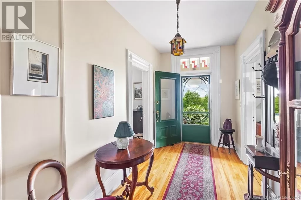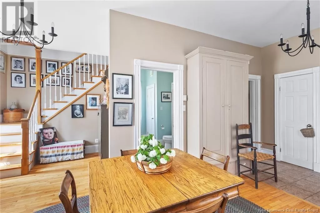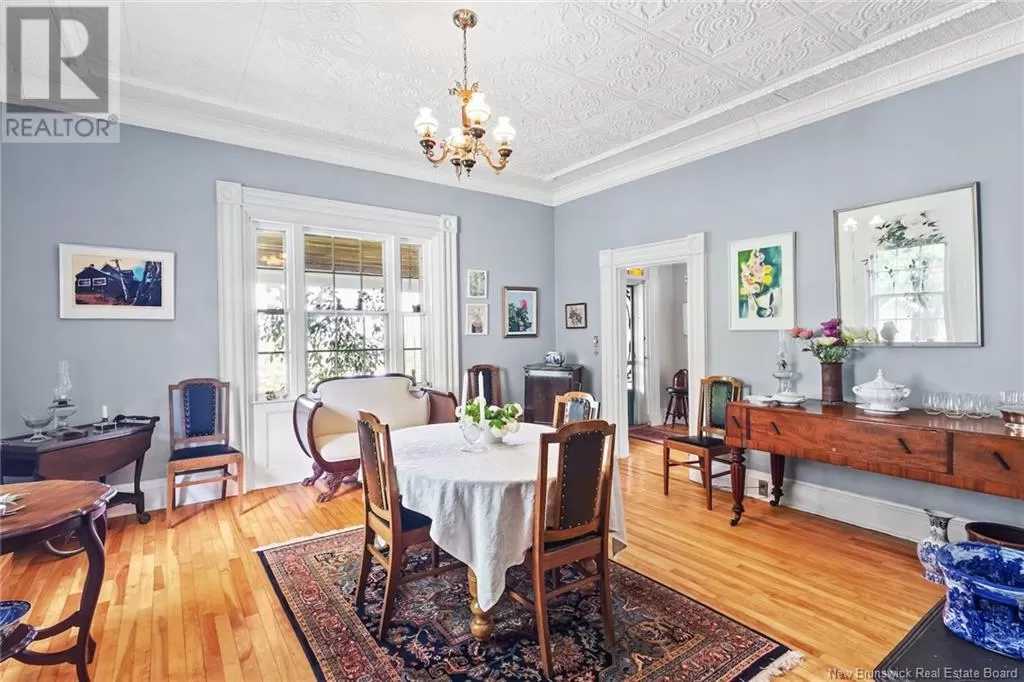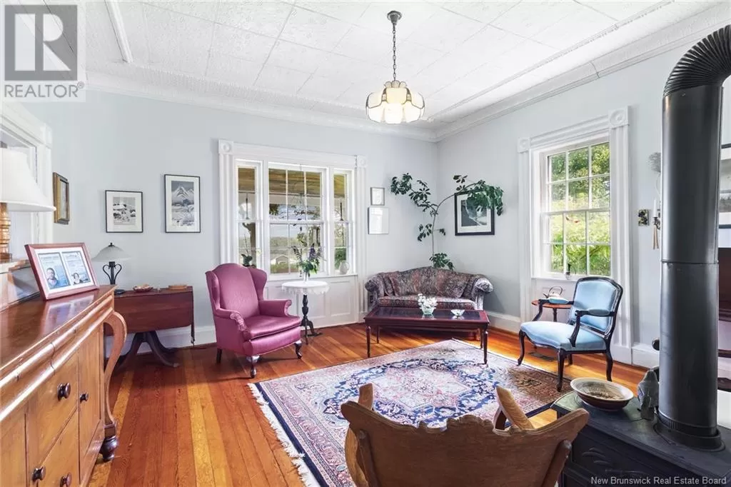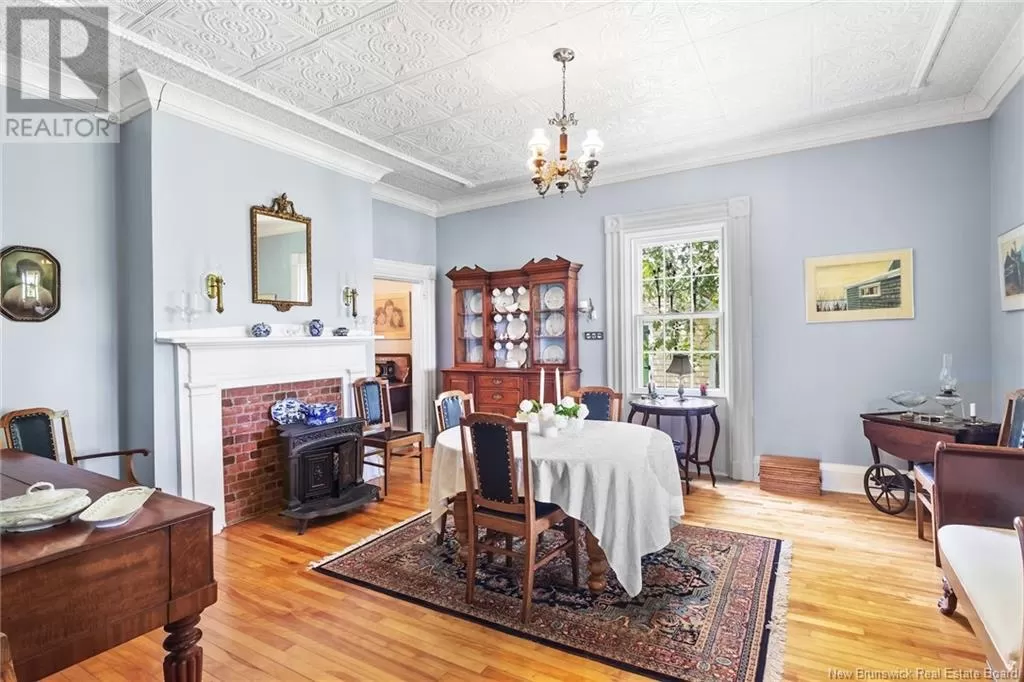 Step back in time without sacrificing modern comfort at this well maintained historic residence, perched above the Saint John River on 3.5 acres of picturesque grounds. Built in 1843 by Thomas Tilley, this timeless home tells a story in every handcrafted detail, from original crown mouldings to rich woodwork that has been preserved throughout.Enter through the inviting eat-in kitchen, centered around an antique stove, where generations have gathered and memories continue to be made. The warmth continues in the elegant dining room, featuring a classic wood-burning fireplace, evoking the charm of yesteryear. The family room creates a seamless flow for both entertaining and everyday living. A new addition to the main level offers added living space, ideal for a granny suite or multigenerational living. Upstairs, you'll find four spacious bedrooms, a second full bath, a serene sitting room, and a versatile bonus area, complete with its own staircase to the main level. Modernized where it counts, this home has been properly updated, blending 19th-century elegance with 21st-century peace of mind. Relax with your morning coffee on the front deck, watching sailboats drift by on the river, or explore your private paradise, complete with a single garage, workshop, charming gazebo, and expansive green space. Located in the heart of Gagetown, known for its community spirit and tranquil lifestyle, you're just a short walk to local breweries and marina, and only 45 min to Fredericton. (id:27476)