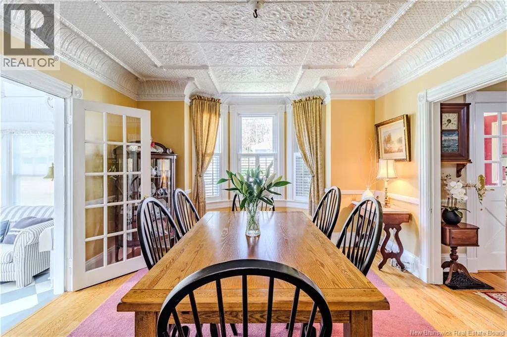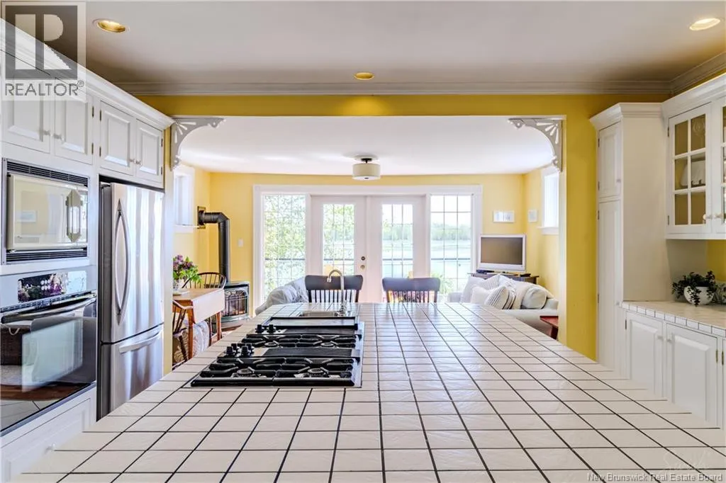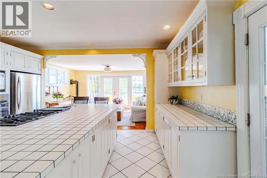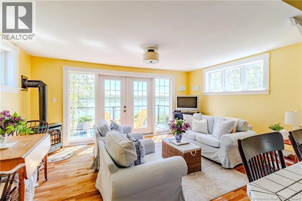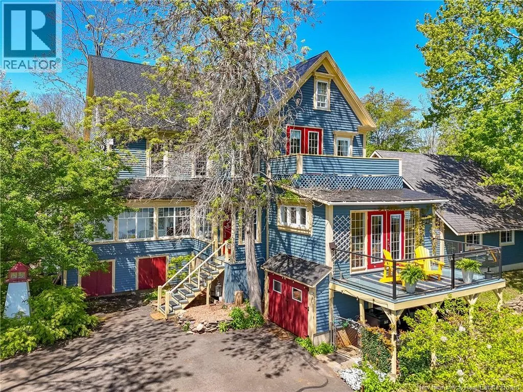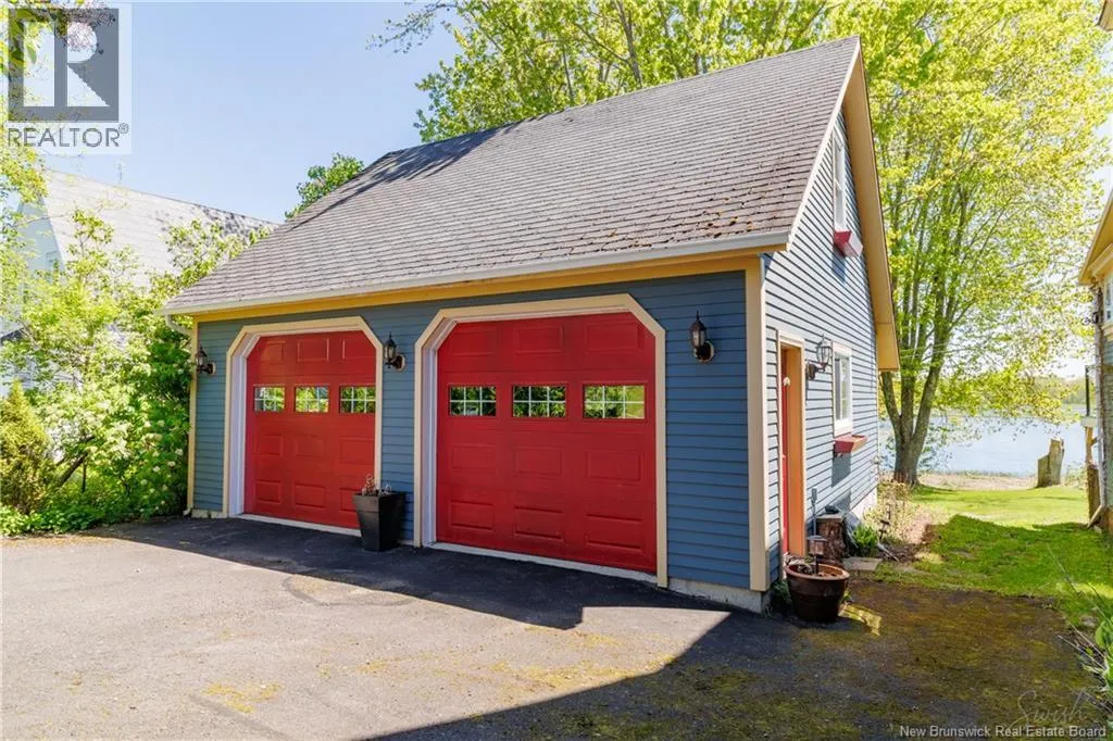Route 102 to Gagetown to Front Street civic #54. Welcome to 54 Front Street, located in the picturesque historic Village of Gagetown. This remarkable property offers stunning views of the Saint John River, transforming a house into a true lifestyle choice. With five spacious bedrooms and two and a half bathrooms, there is ample room for family and guests. The impressive 10-foot pressed metal ceilings & elegant crown molding create a warm & inviting atmosphere throughout the home. The large kitchen features an oversized island, making it an ideal space for entertaining family & friends. Imagine cooking your favorite meals while enjoying the beautiful water views, making every gathering memorable. You can also savor your morning coffee or evening wine on one of the two patios, providing perfect spots to relax and soak in the serene surroundings. One patio is conveniently accessible from the great room, while the other connects to the master suite, allowing you to enjoy the scenery at any time. Additionally, the wrap-around enclosed porch offers another delightful space to take in the views. For those with hobbies or storage needs, the detached double car garage with a loft provides ample space & versatile functionality. And being just steps away from the Gagetown Marina means youre always ready for your next adventure on the water. This property is not merely a home; its an opportunity to embrace a lifestyle rich in beauty, tranquility, and community. Only 20 minutes to Oromocto, and 30 minutes to Fredericton. (id:27476)