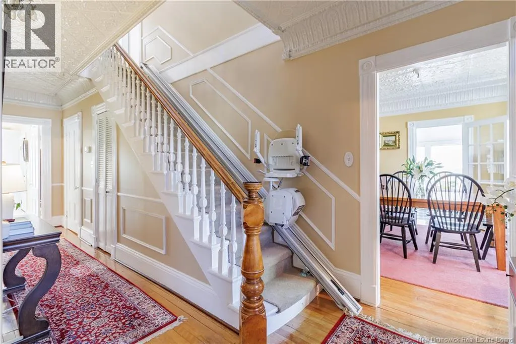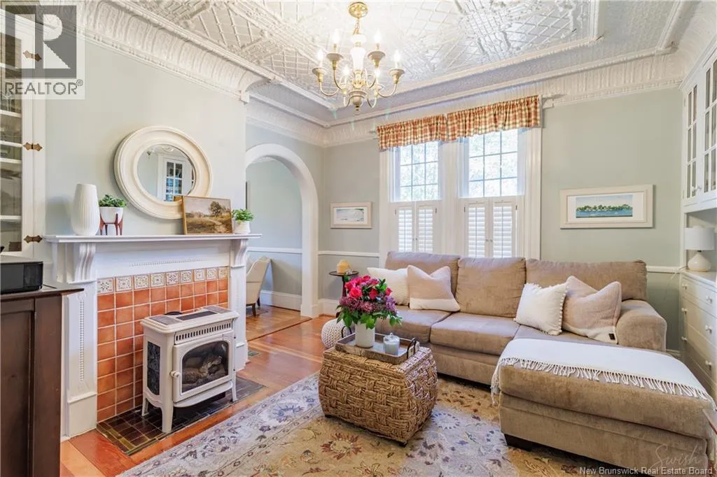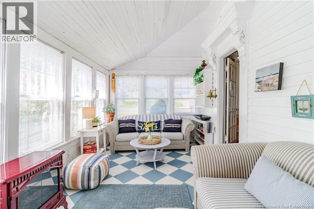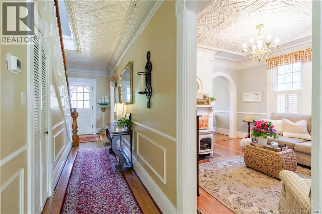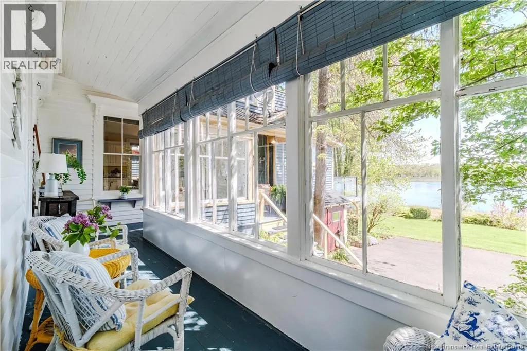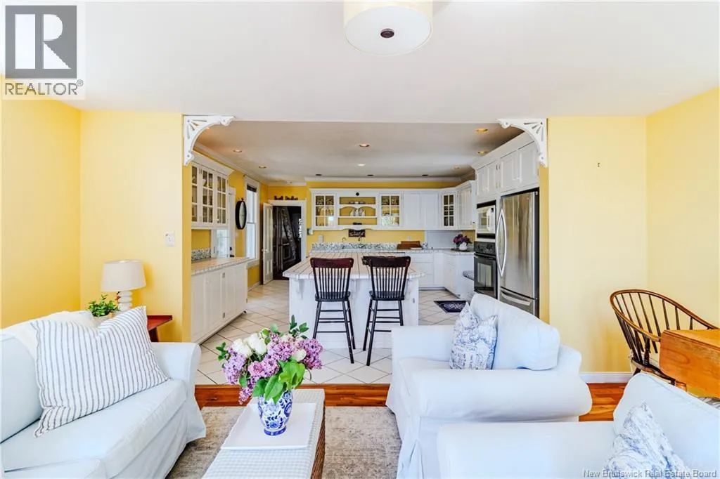 Route 102 to Gagetown to Front Street civic #54. Welcome to 54 Front Street, located in the picturesque historic Village of Gagetown. This remarkable property offers stunning views of the Saint John River, transforming a house into a true lifestyle choice. With five spacious bedrooms and two and a half bathrooms, there is ample room for family and guests. The impressive 10-foot pressed metal ceilings & elegant crown molding create a warm & inviting atmosphere throughout the home. The large kitchen features an oversized island, making it an ideal space for entertaining family & friends. Imagine cooking your favorite meals while enjoying the beautiful water views, making every gathering memorable. You can also savor your morning coffee or evening wine on one of the two patios, providing perfect spots to relax and soak in the serene surroundings. One patio is conveniently accessible from the great room, while the other connects to the master suite, allowing you to enjoy the scenery at any time. Additionally, the wrap-around enclosed porch offers another delightful space to take in the views. For those with hobbies or storage needs, the detached double car garage with a loft provides ample space & versatile functionality. And being just steps away from the Gagetown Marina means youre always ready for your next adventure on the water. This property is not merely a home; its an opportunity to embrace a lifestyle rich in beauty, tranquility, and community. Only 20 minutes to Oromocto, and 30 minutes to Fredericton. (id:27476)