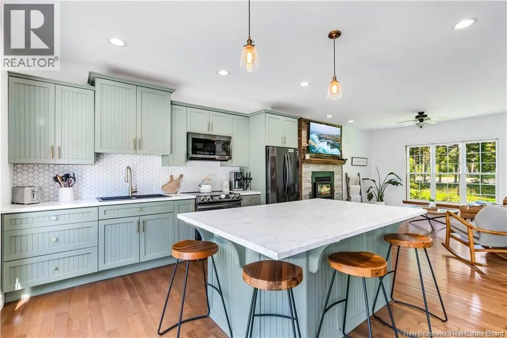 From Moncton Drive North, Take Exit 53 to Rexton: Turn Left: Take second left at flashing light on Centennial, drive approx 1/2 mile (past curling club) and take 2nd street on left Woodlawn Drive. Welcome to 16 Woodland Drive, a beautiful waterfront home tucked away on a quiet cul-de-sac in a sought-after neighbourhood. Surrounded by mature trees and professional landscaping, this property offers peaceful, main-floor living with 3 spacious bedrooms2 featuring walk-in closets. The open-concept design connects the large eat-in kitchen and cozy living room, complete with a charming wood-burning fireplace. Stay comfortable year-round with a new central air heat pump. A convenient half bath and laundry area are located just off the double attached garage, while a full 4-piece bath completes the main level. Enjoy stunning water views from the expansive backyard, which spans two PIDs and offers direct access for waterfront activities. Lower level is unfinished and offers lots of storage and options to create more living space if desired. Ideally located close to all amenities, this home blends privacy, comfort, and convenienceperfect for year-round living or a relaxing retreat. Dont miss your chance to own this waterfront gem! (id:27476)