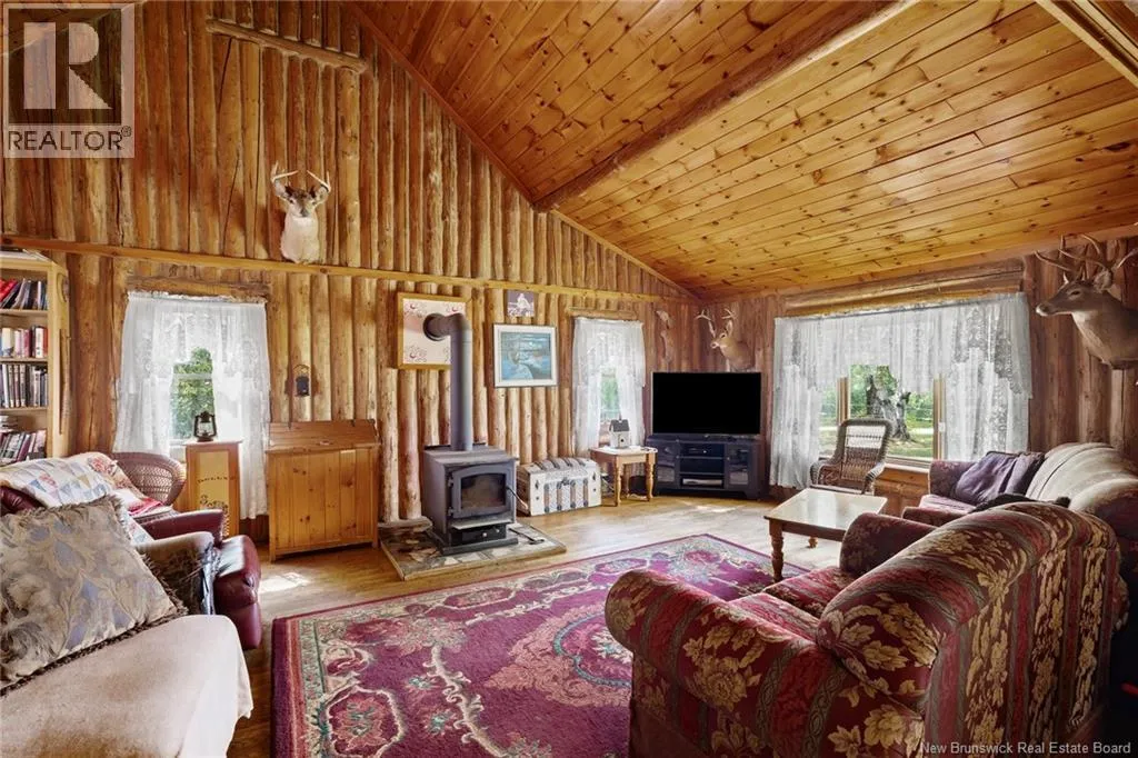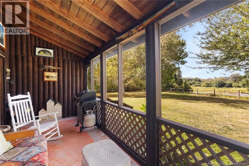 Route 123 turn on Hopkins Rd Welcome to 135 Hopkins Road in Gaspereau Forks- a private property with plenty of space to enjoy nature. Set on approximately 31 Hectares of mixed treed & cleared land, this 3-bedroom, 1-bathroom log home offers peace, privacy, and a rural lifestyle. The property features a large marsh that attracts wildlife, with the Salmon River visible on the other side, and a walking trial for exploring your own backyard. A long driveway leads to the home, adding to the secluded feel. Inside, the open kitchen and living area with a cozy wood stove are perfect for everyday living, and the main floor laundry is a standout convenience. Outside, hobby farming is easy with a barn, chicken coop, and oversized detached 2-car garage with underground wiring. A screened-in porch and fenced front yard give space to relax and enjoy the surroundings. A durable metal roof and no basement make maintenance simple. Located about 10 minutes from schools, amenities, and restaurants, and roughly one hour to Fredericton, this property offers the perfect mix of privacy, outdoor space, and convenience. (id:27476)