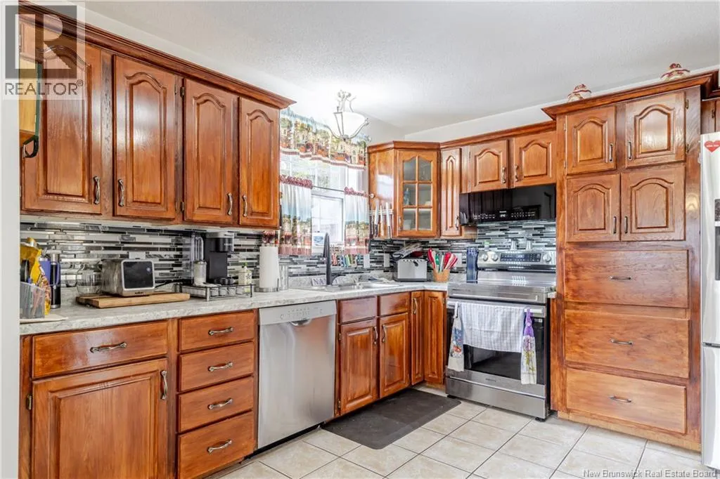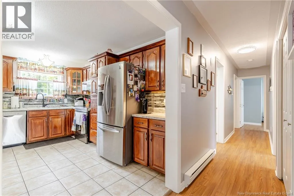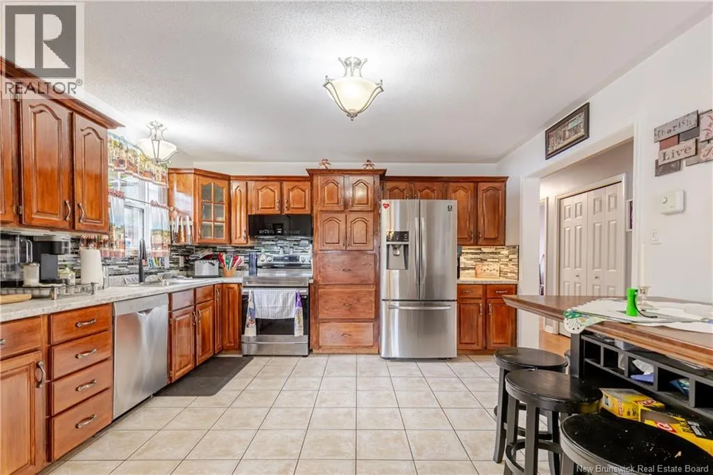 Broad Road to New Road to Clarence Street. Spacious and versatile split entry home offering a beautiful custom kitchen, cozy livingroom, nice bright diningroom, five large bedrooms and two full bathrooms, a family room and a bonus room. perfectly suited for families, multi generational living, or anyone needing abundant space. Situated on just over an acre on a desirable corner lot, this property provides privacy, functionality, and room to grow. The layout includes generous living areas on both levels, with potential to add even more bedrooms if desired. The home features tile and laminate flooring throughout, a generator panel for added peace of mind, and a paved driveway leading to a garage plus three additional storage buildingsideal for tools, equipment, or hobbies. A large deck overlooks the landscaped yard, offering plenty of outdoor space for entertaining, gardening, or play. Located just minutes from Base Gagetown and close to all amenities, this property combines country comfort with everyday convenience. A rare opportunity to own a spacious, well equipped home on a beautifully maintained lot in a highly accessible location. (id:27476)
