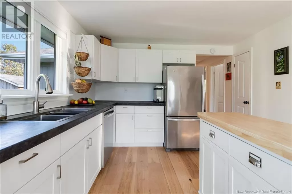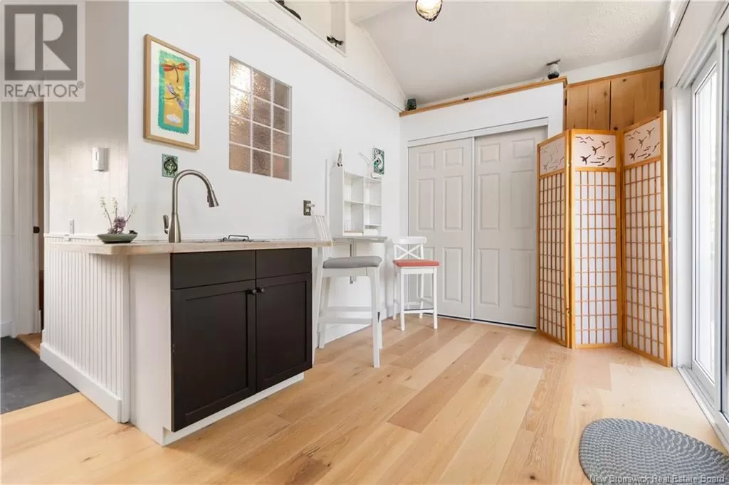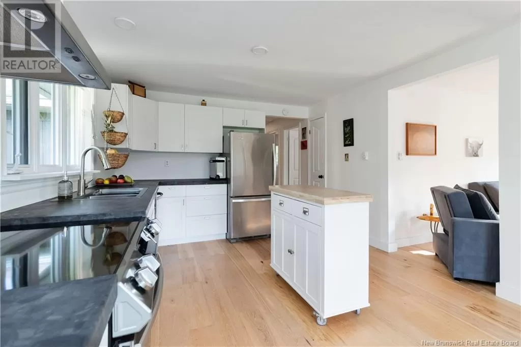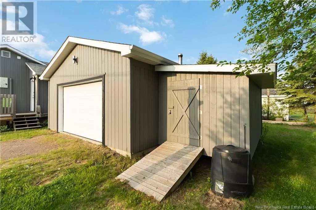 Take Route 133 to Grand Barachois, Des Lauriers is on the water side. FULLY RENOVATED BUNGALOW | DEEDED BEACH ACCESS | 1.47 ACRE TREED LOT | DETACHED INSULATED GARAGE | PRIVATE ROAD ** Welcome to 19 Des Lauriers a beautifully updated bungalow nestled on a private, tree-lined 1.47-acre lot with deeded access to a serene sandy beach just steps away. Located on a quiet, year-round private road, this property offers the perfect escape for those seeking peace, privacy, and coastal charm. Recent upgrades include: roof shingles (home & garage), plumbing, mini split heat pump, back-up generator panel, wood siding (2022), all new flooring, and more.The inviting interior features a spacious foyer leading to a bright, window-lined family room or home office with direct access to an 10 x 18 deck. The main level also offers an updated 4-piece bathroom, two comfortable bedrooms, and a large eat-in kitchen that opens to the dining and living room area, complete with a cozy fireplace and access to a 8 x 24 deck; perfect for entertaining or to relax. The beautifully landscaped grounds include plenty of space for gardening, a charming childrens playhouse, two storage sheds, and an insulated garage with a wood stove. Theres ample room for guests to park or set up trailers, making this an ideal property for hosting or extended family stays. Whether youre looking for a full-time residence or a seasonal retreat, this low-maintenance coastal oasis offers the best of both worlds. Schedule your private showing to experience 19 Des Lauriers in person! (id:27476)