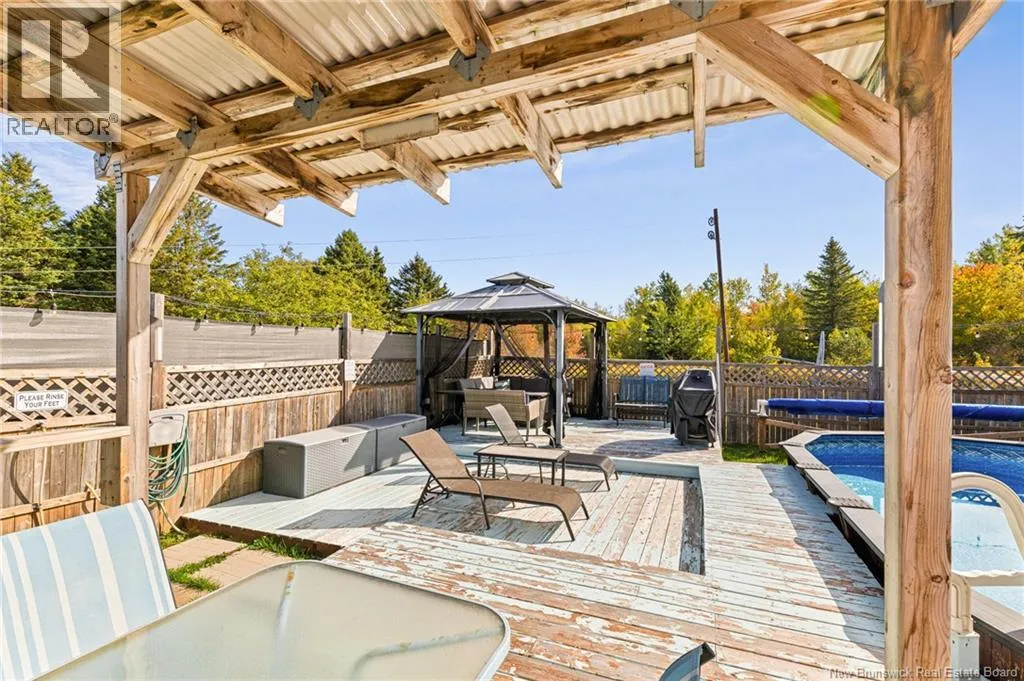 On highway 15. take exit to Haute Aboujagane and at stop turn left, go towards Grand-barachois. Property is on right hand side. SPACIOUS PRIMARY SUITE, BACKYARD POOL RETREAT, MOVE-IN READY BUNGALOW Beautifully updated bungalow on approximately 1 acre with DETACHED GARAGE, perfectly located in a quiet setting close to SCHOOLS, GROCERY, and just minutes from LOCAL BEACHES with quick highway access to Moncton. The home features a spacious PRIMARY SUITE with WALK-IN CLOSET and a STUNNING ENSUITE offering IN-FLOOR HEAT, TILED SHOWER, and FREESTANDING TUB. The Kitchen has UPDATED COUNTERTOPS and plenty of STORAGE, while the living room has been refreshed with CUSTOM CABINETRY and a stylish FEATURE WALL. Additional updates include EXTENSION WITH ENSUITE AND WALK IN CLOSET, a MINI-SPLIT HEAT PUMP, a LARGE STORAGE SHED and UPDATED SIDING and FASCIA. The backyard is designed for relaxation and entertaining with a LARGE DECK, GAZEBO, and a SALTWATER POOL complete with NEWER HEATER and PUMP. The DETACHED GARAGE includes a WELDERS PLUG and offers excellent space for STORAGE or PROJECTS. A MOVE-IN READY HOME that blends COMFORT, UPDATES, and CONVENIENCE in one desirable location. (id:27476)