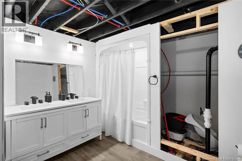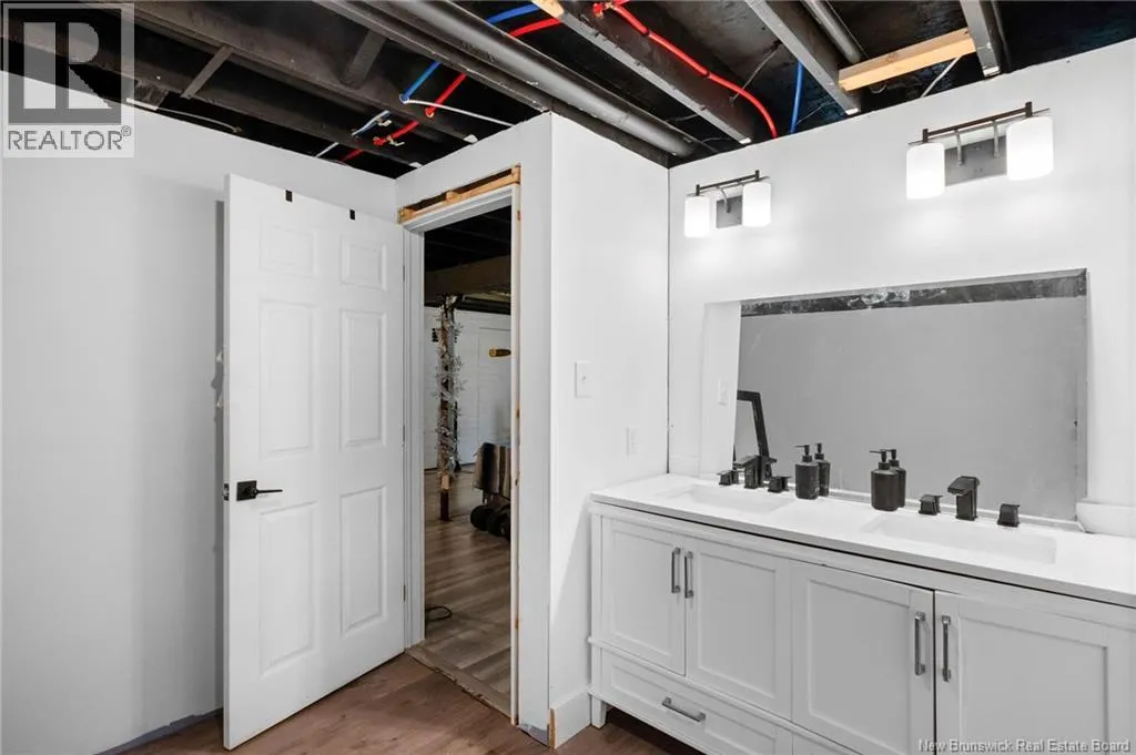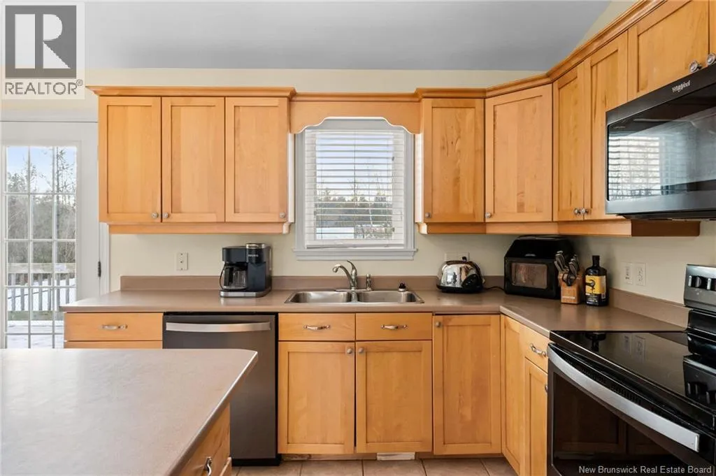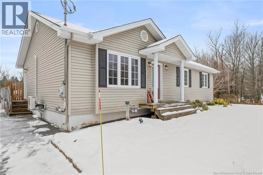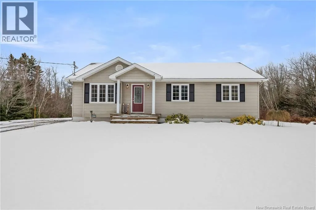 Take NB-15 East. Keep right to stay on NB-15 E. Take exit 43 for NB-933 toward NB-133/Haute Aboujagane/Grand Barachois then turn left onto NB-933 N/Rte 933. Turn right onto Job Road and then turn left onto Chem. Job. Turn right to stay on Chem. Job and then turn right onto Gervic Crescent. Property will be on the right. Welcome to 58 Gervic Crescent, a well-maintained bungalow set on over an acre of land in Grand-Barachois, just minutes from local amenities, stunning beaches, and less than 30 minutes to Moncton. Step inside to a bright, open-concept main floor where the living room, kitchen, and dining area flow seamlessly together under vaulted ceilings and an abundance of natural light. The kitchen is both stylish and functional, featuring an island, black stainless steel appliances, light wood cabinetry, and a bright layout thats ideal for everyday living. Hardwood floors add warmth and character throughout the living room and bedrooms. The spacious primary bedroom offers dual closets, complemented by two additional well-sized bedrooms. The 4-piece main bath includes a stand-up shower, corner soaker tub, and convenient stackable washer and dryer. The lower level offers a versatile and inviting space with completed walls, flooring, and décor, while exposed black-painted ceiling rafters add a modern, industrial-inspired feel (not included in the total finished sq/ft due to unfinished ceilings). This level includes a large family room, a non-conforming bedroom, and a 5-piece bathroom, all with luxury vinyl flooring. Outside, a cozy deck overlooks the expansive, fenced backyard, with trees along the perimeter providing added privacy. Additional highlights include ductless heat pumps on both levels, roof reshingled in 2023, and wiring already in place for a generator. This is a must see!! (id:27476)