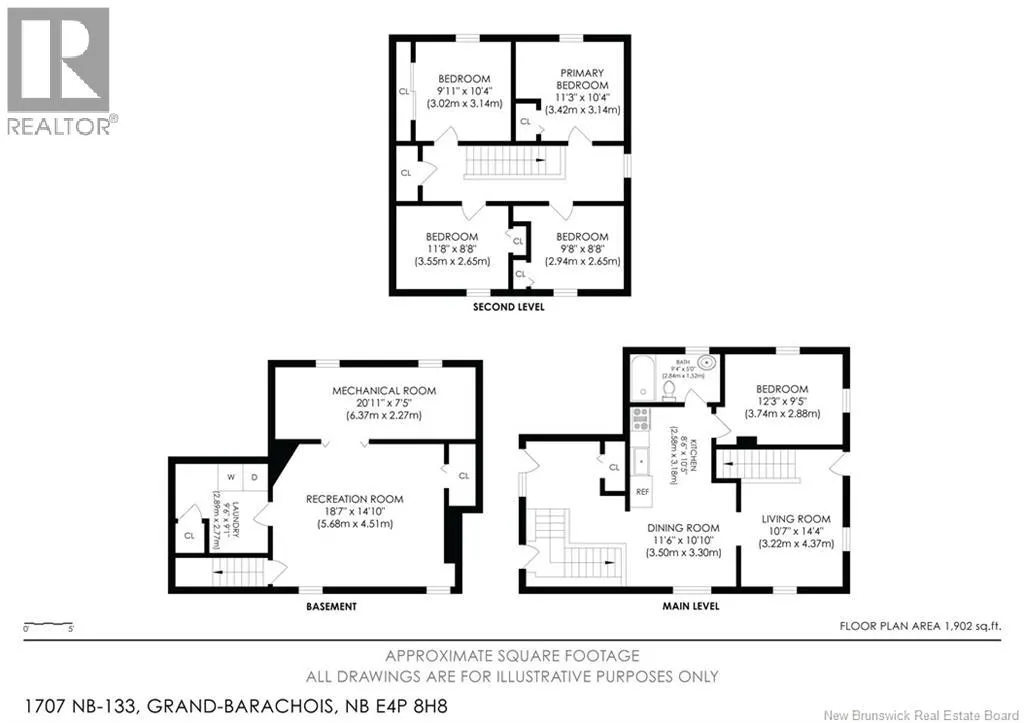 From Moncton take Highway 15. Take Exit 37 (Parlee Beach Exit). Follow Ohio Road to traffic lights and turn right onto Route 133 Welcome to 1707 Route 133 in Grand-Barachois! This beautifully maintained 1.5-storey home offers charm, space, and modern comfort for the whole family. The main floor features a bright updated kitchen with rich cabinetry, stainless steel appliances, tile backsplash, and a breakfast bar open to the dining area. A cozy living room, convenient main-floor bedroom, and full bathroom complete this level. Upstairs, youll find four additional bedrooms, providing plenty of flexibility for family, guests, or a home office. The basement extends your living space with a spacious rec room, laundry area, and ample storage. Hardwood floors flow throughout the main level, and a ductless mini split ensures year-round efficiency. Outside, relax on the covered front porch or entertain on the large back deck with privacy walls. The generous lot offers space for outdoor living, while the location puts you minutes from sandy beaches, schools, and amenities. Move-in ready and full of character, this 5-bedroom home is the perfect blend of comfort and convenience. Dont miss your chance to viewschedule your private showing today! (id:27476)
