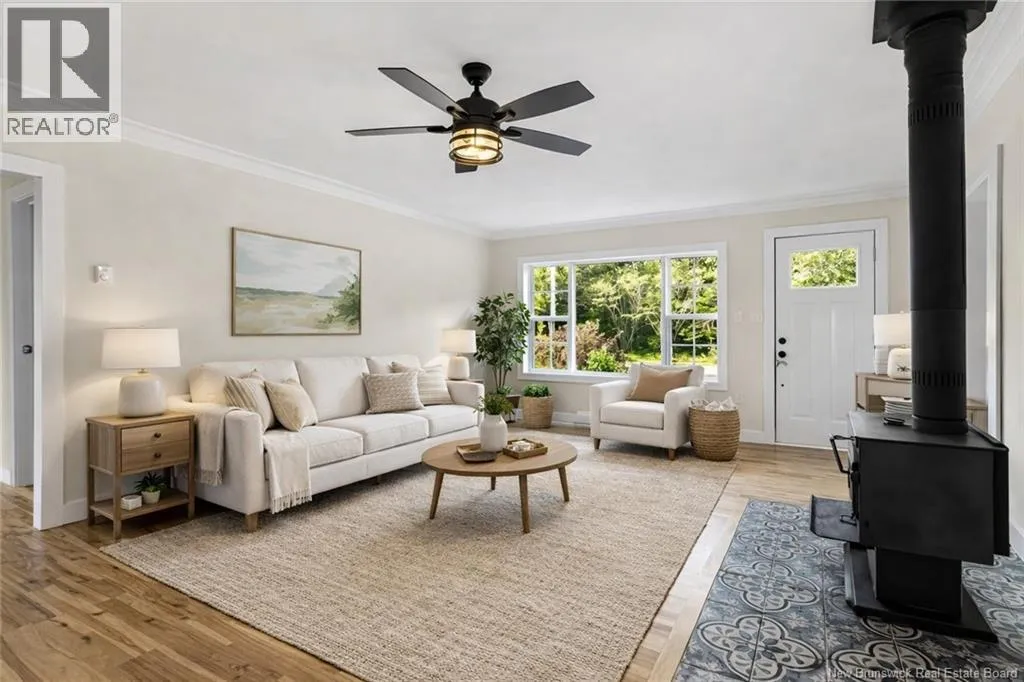 Head East on NB-133E, left onto Bois Joli Ave., left onto Angus Dr. AMAZING LOCATION NEAR THE BEACH. This recently renovated bungalow in Grand-Barachois offers the kind of lifestyle buyers want and absolutely needs to be seen to be appreciated: quiet setting, solid updates, and walkable access to the water. Located just a short 5-minute walk to a nice sandy beach, this 3-bedroom, 1-bath home sits on a private 1-acre cul-de-sac lot in a peaceful area close to schools, churches, grocery stores, Pine Needles Golf Course, highway access, and everyday amenities. Inside, the home features a spacious entry, a bright living room with a woodstove, a functional kitchen and dining area with plenty of cupboard space, a full 4-piece bath, and three bedrooms, including a primary with walk-in closet. Flooring includes hardwood, ceramic, and vinyl, offering a clean mix of comfort and durability. Several important upgrades have already been completed. Renovations include siding, kitchen, bathroom, and fresh interior paint. In 2023, additional efficiency and comfort upgrades were made, including new mini splits, a new air exchanger, upgraded attic insulation, and spray foam added to the crawl space walls. Outside, you will also find a large detached garage measuring approximately 16 x 50, giving plenty of room for storage, hobbies, or workspace as well as a bonus 12x30ft storage shed. A strong option for buyers looking for a move-in-ready home near the beach with major energy efficient updates already handled. (id:27476)