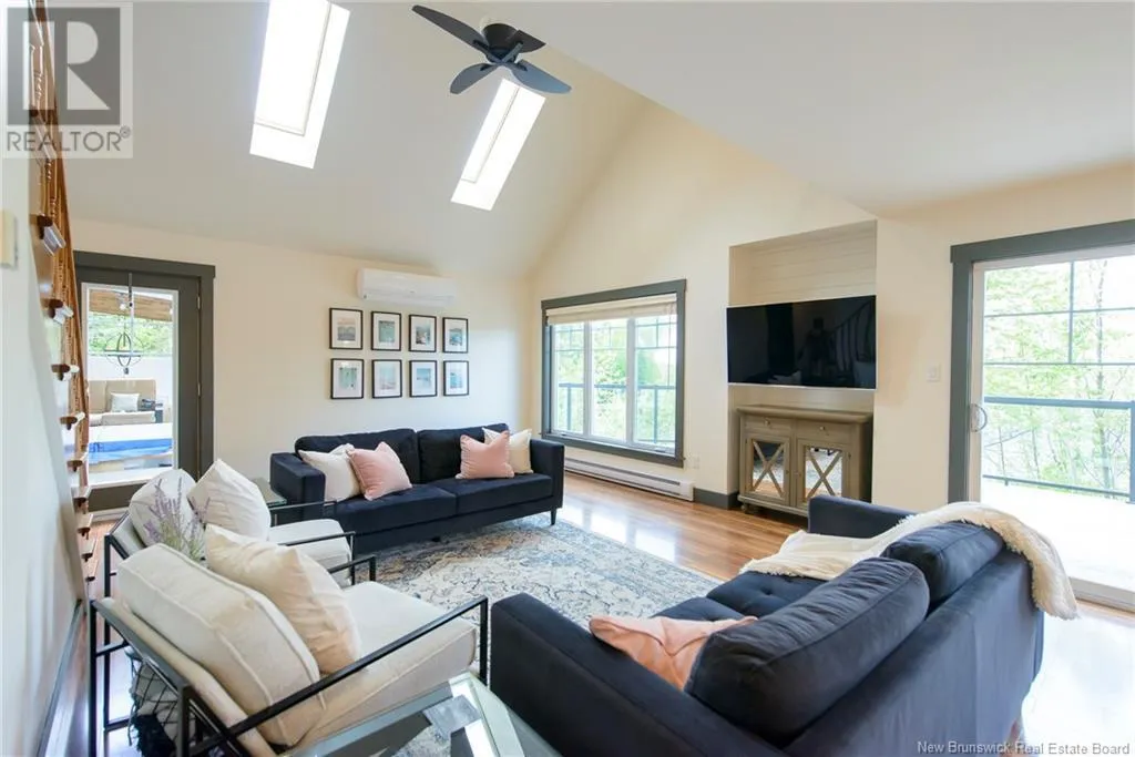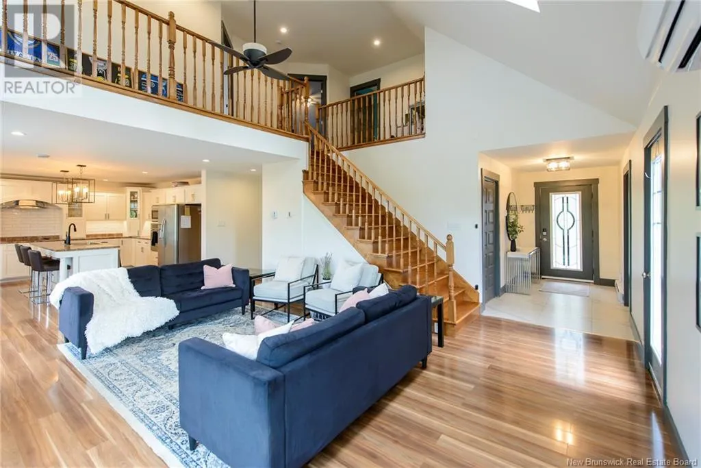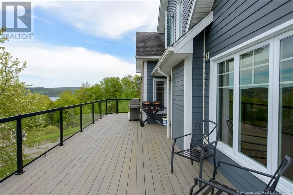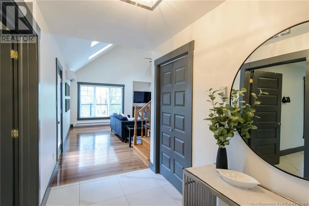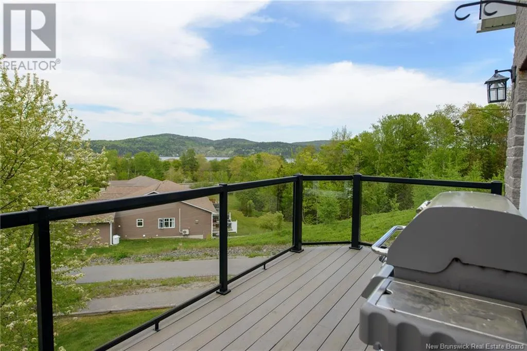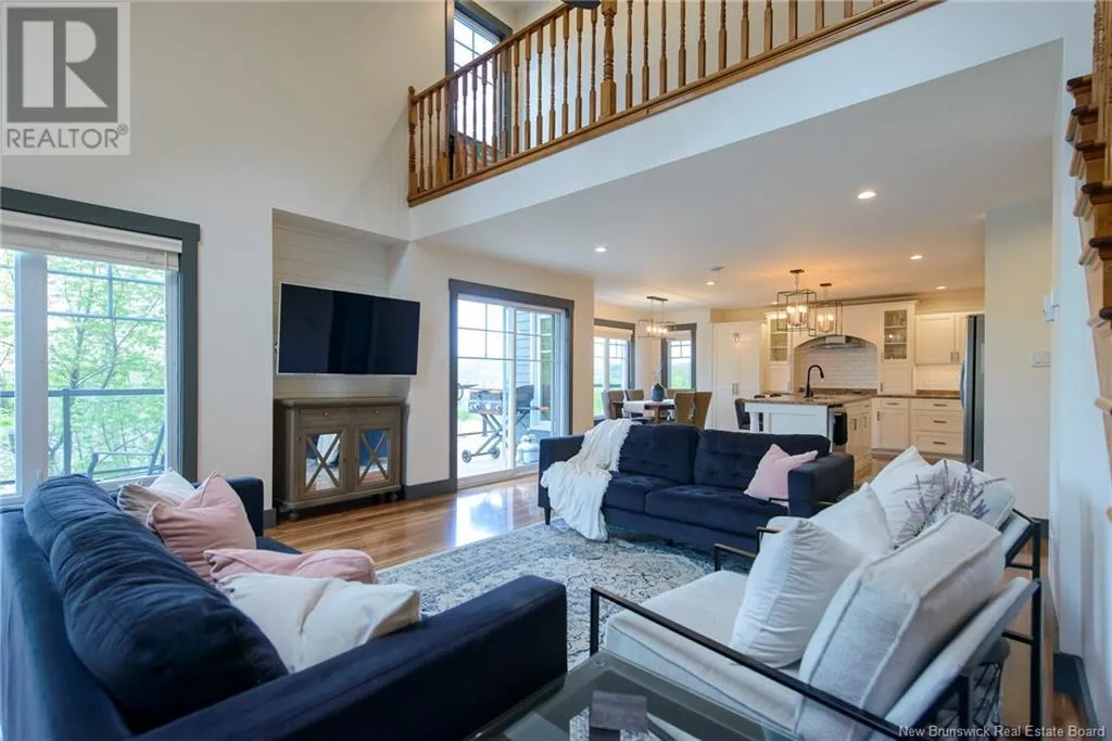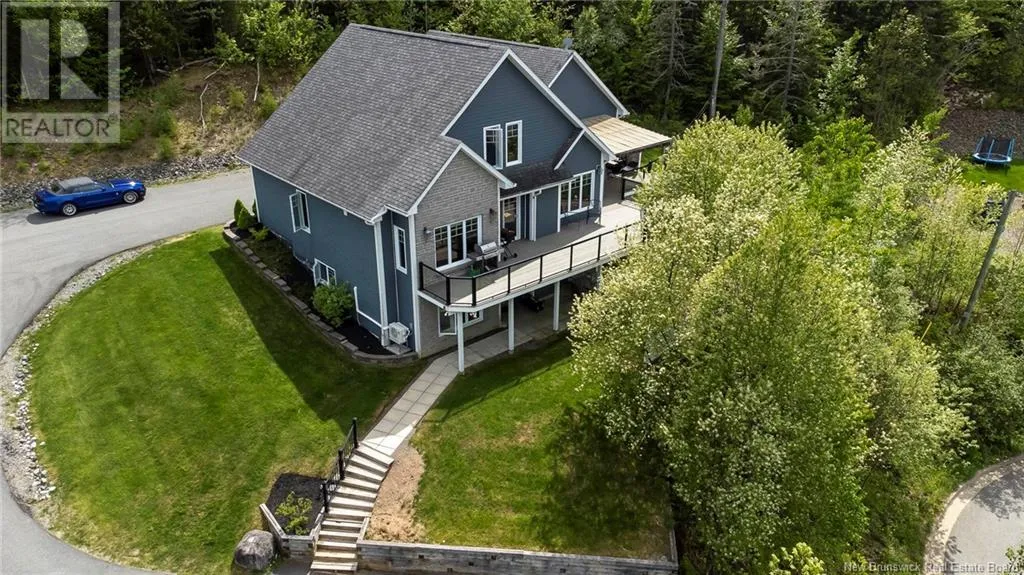 Perched on a hill at the end of a quiet cul-de-sac, this custom-built home offers stunning views of the Saint John River and sun-filled living spaces. Enter through the private back step into a welcoming foyer that opens to a spacious open-concept living area with soaring cathedral ceilings and a loft above. The kitchen features bright birch cabinets, a large island, and flows into the dining areaperfect for entertaining. The main floor includes a generous primary bedroom with walk-in closet and spa-like ensuite featuring a soaker tub, tiled shower, and brand-new double vanity. Also on this level: a large laundry room and a stylish half bath. Upstairs, youll find two additional bedrooms, an office area, and a full bath. The walk-out basement includes a self-contained 1-bedroom apartment with its own laundry, kitchen, walk-in closet, and private outdoor spaceideal for rental income. Complete with wraparound composite deck, covered 6 person hot tub, privacy fencing, and a 2-car garage. Close to walking trails and breathtaking river views. (id:27476)