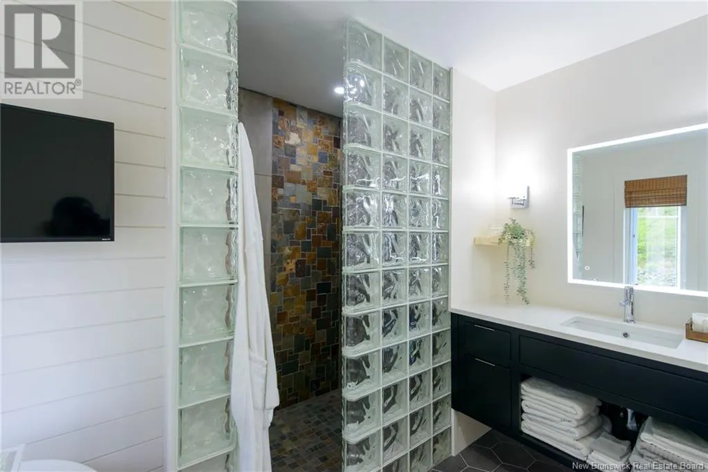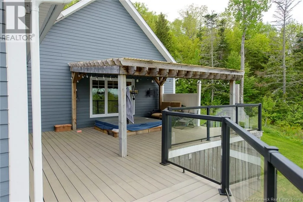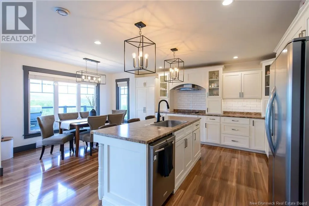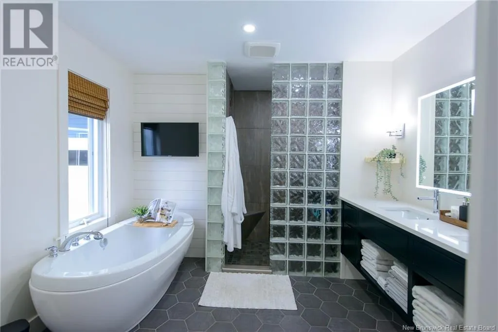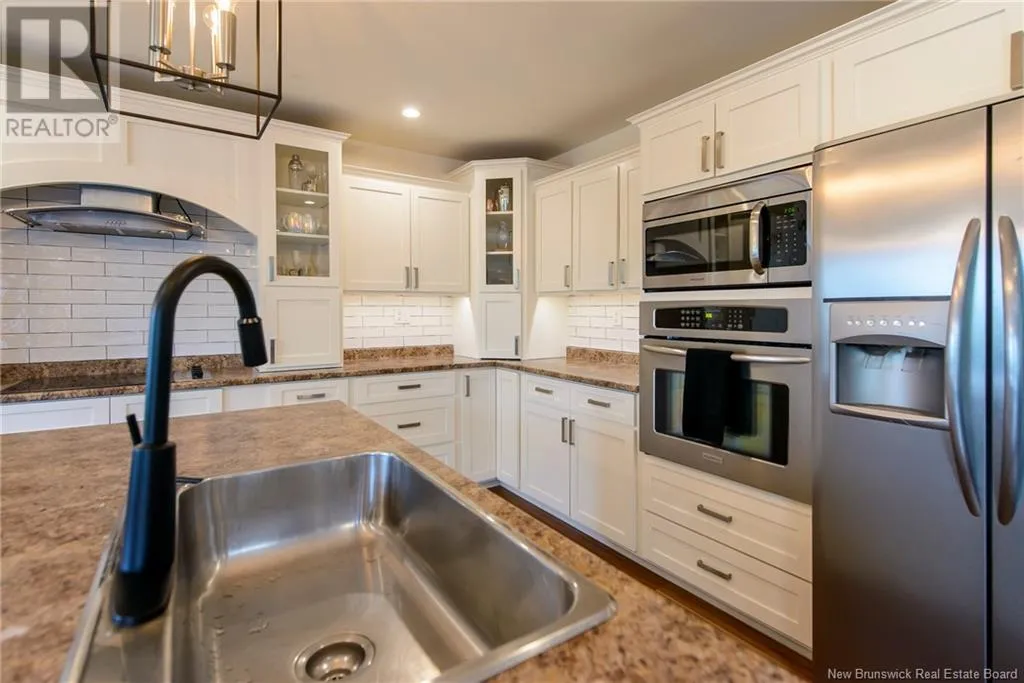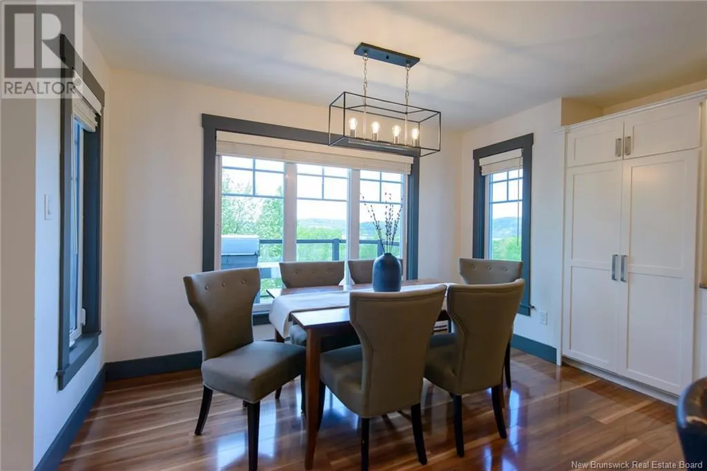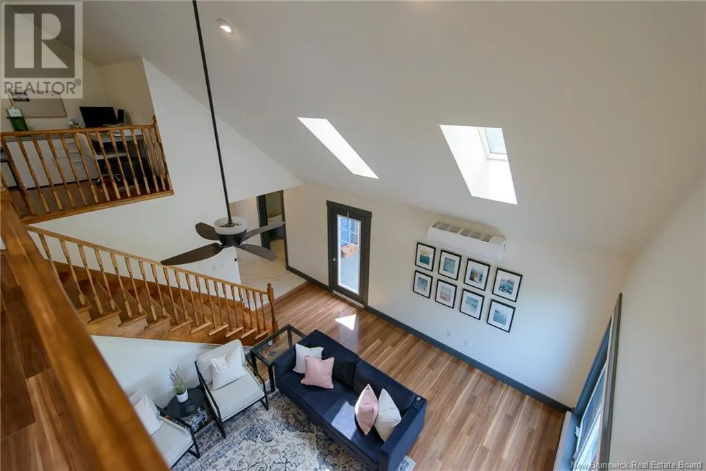 Perched on a hill at the end of a quiet cul-de-sac, this custom-built home offers stunning views of the Saint John River and sun-filled living spaces. Enter through the private back step into a welcoming foyer that opens to a spacious open-concept living area with soaring cathedral ceilings and a loft above. The kitchen features bright birch cabinets, a large island, and flows into the dining areaperfect for entertaining. The main floor includes a generous primary bedroom with walk-in closet and spa-like ensuite featuring a soaker tub, tiled shower, and brand-new double vanity. Also on this level: a large laundry room and a stylish half bath. Upstairs, youll find two additional bedrooms, an office area, and a full bath. The walk-out basement includes a self-contained 1-bedroom apartment with its own laundry, kitchen, walk-in closet, and private outdoor spaceideal for rental income. Complete with wraparound composite deck, covered 6 person hot tub, privacy fencing, and a 2-car garage. Close to walking trails and breathtaking river views. (id:27476)