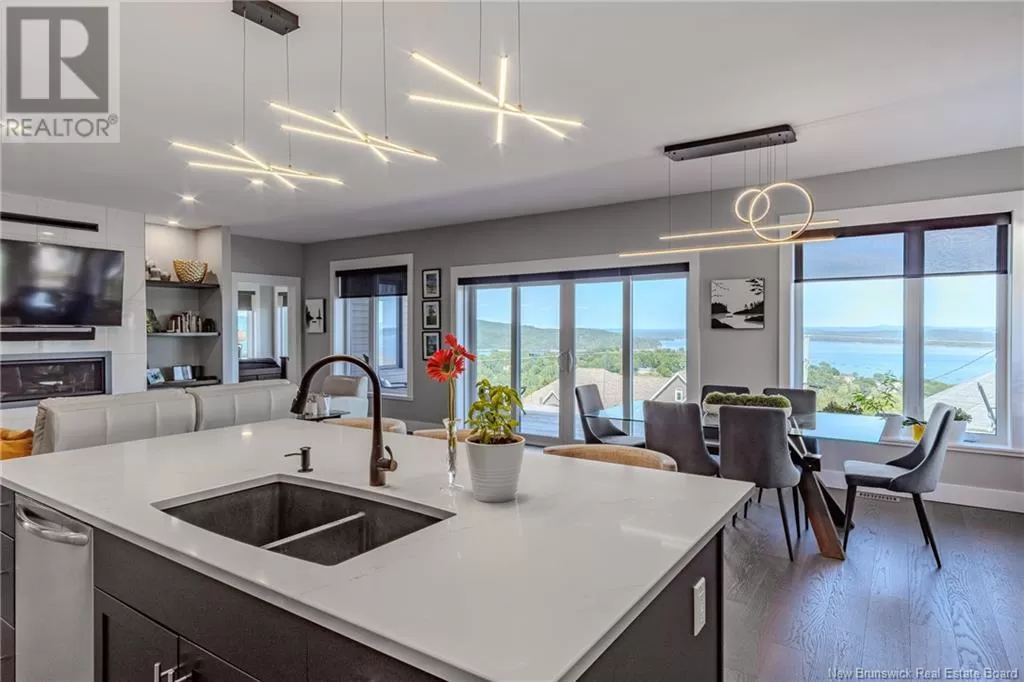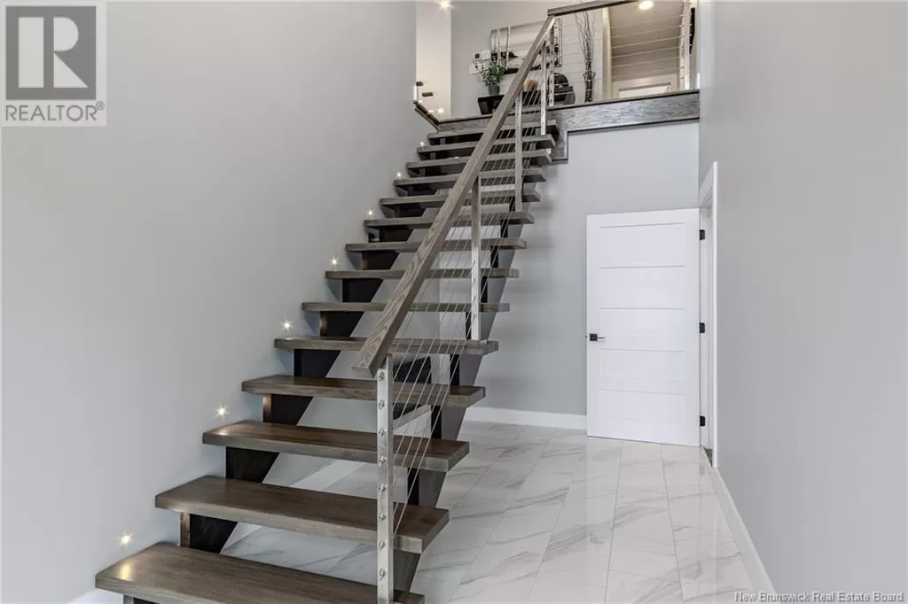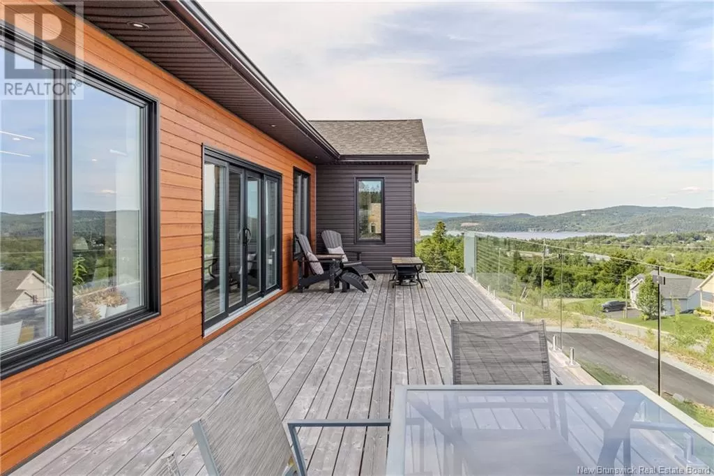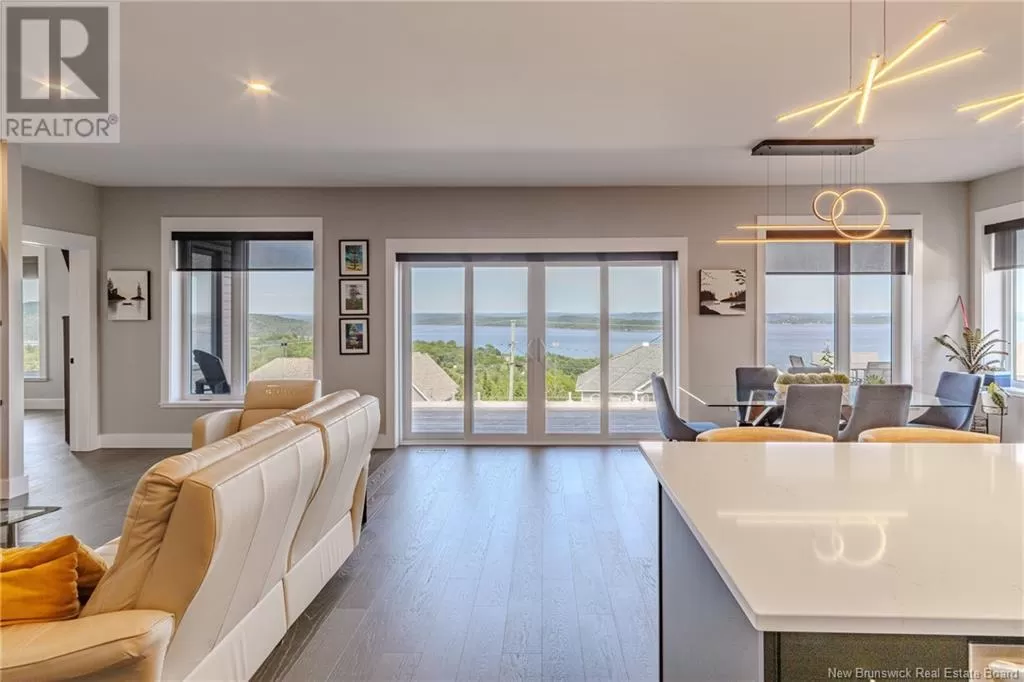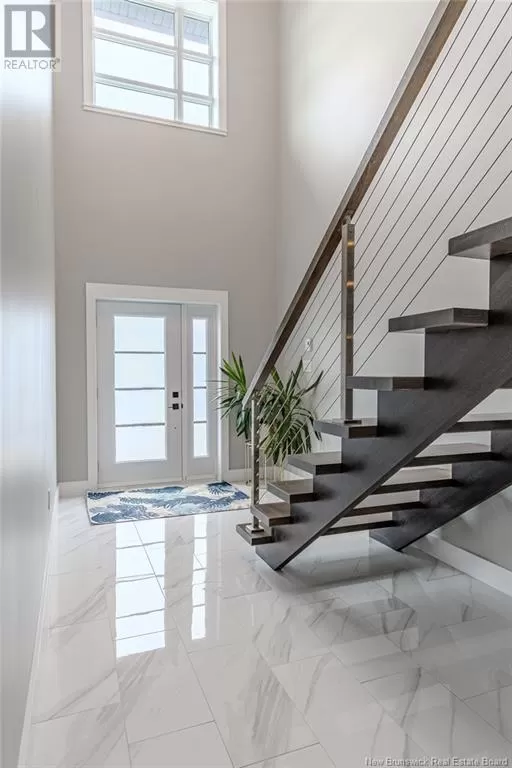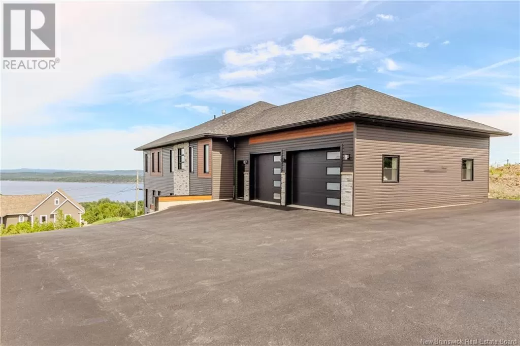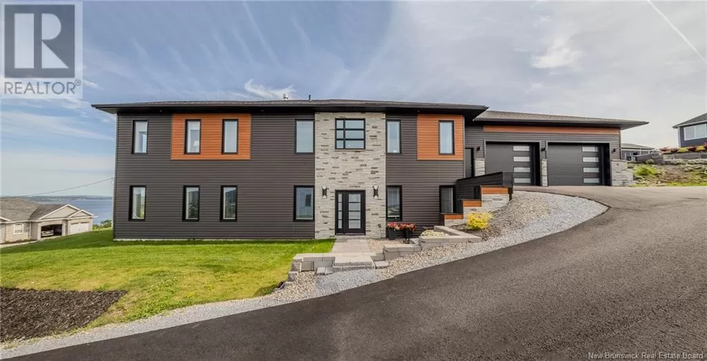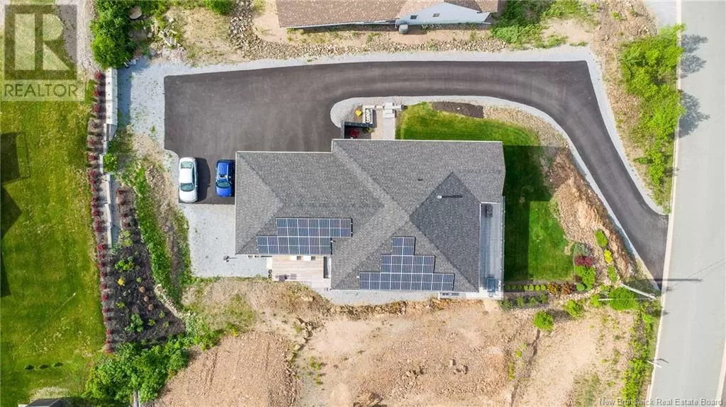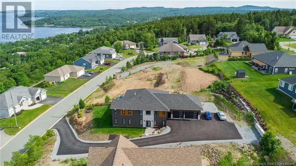 This custom-built, modern, executive-style home is constructed with ICF for maximum efficiency. This home features an amazing 270-degree view of the Saint John River, where watching weekend boaters, sailboat regattas, and even storms roll in is picturesque and relaxing. Large windows provide an unobstructed view of the river from almost every room in the house, including the living room, kitchen, primary bedroom, theater room, downstairs bedroom, and gym (or fifth bedroom). This home offers 4,000 sq. ft. of finished space, with five large bedrooms and three full bathrooms. The front entry is an impressive focal point in this house. The space features a 22-foot ceiling, a custom solid oak stair system, sleek cable-railing banisters, and built-in LED nightlights. The connected, 2-car garage is just under 1,000 sq. ft., wired for 100 amps, with an 11.5-foot ceiling for great overhead storage. Other features include a high-efficiency heat pump for maximum heating and air conditioning comfort, a nine-foot ceiling on both levels, an in-ground lawn watering system, blackout blinds, and custom window coverings, as well as an electrical hookup for a sauna or hot tub behind the garage. Live in a net-zero home! A 12.5 kW rooftop solar system was recently added to this house. Track energy consumption of appliances and fixtures through an energy monitoring system and view solar production through the SolarEdge app to see how much power is being generated. (id:27476)